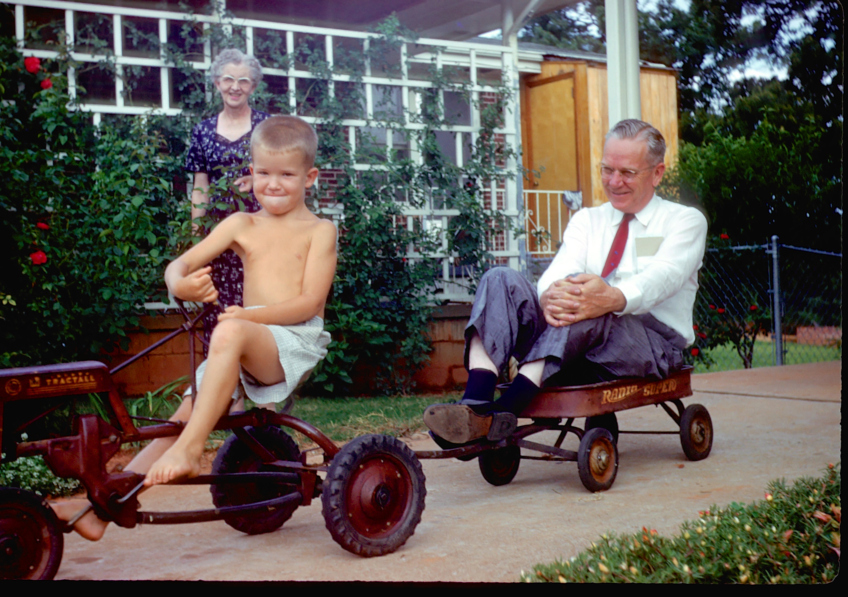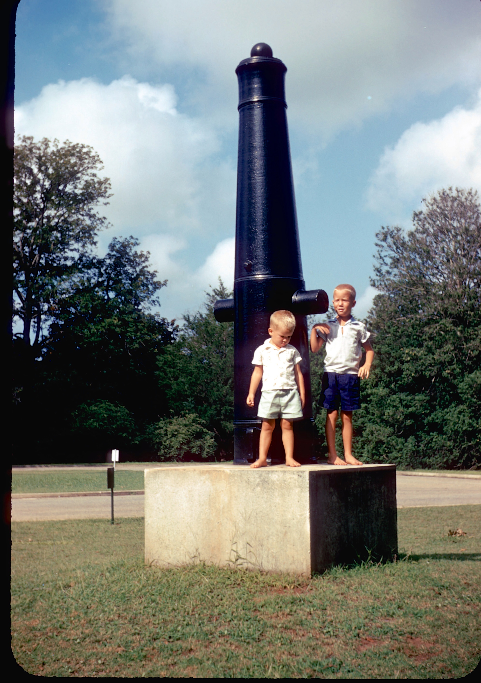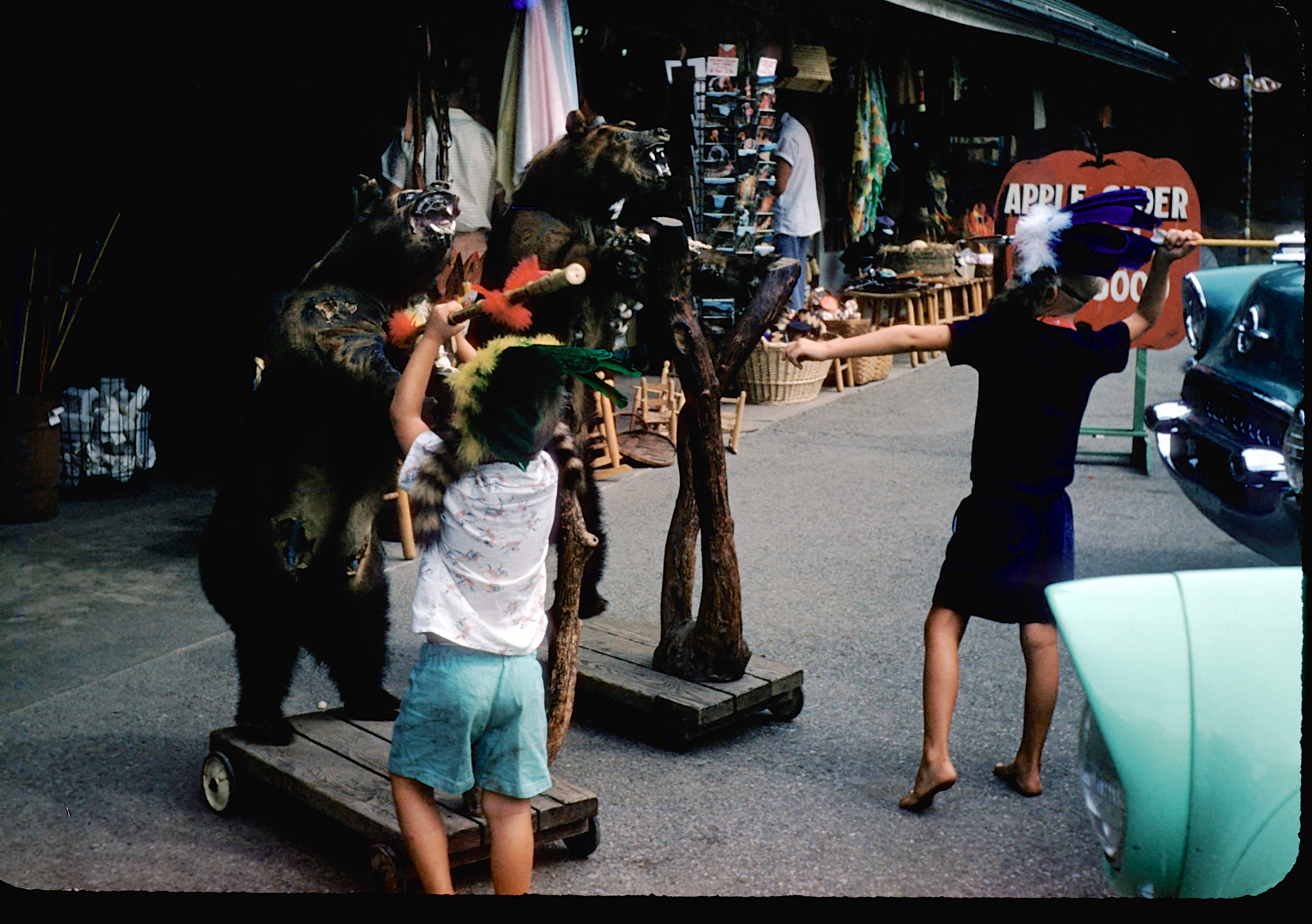We lived on Cherry Lane in Decatur, Georgia and visited Papa at his rock house in Bowdon, GA and rode his tractor. David and Ken visited. We vacationed in Cherokee, NC where we saw Johnny star in Unto These Hills. We vacationed in Panama City, Florida. Slide scans #411, Bonnie's carousel #2. /hughClick a photo to view or click first photo to see a slide show.