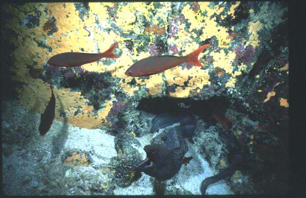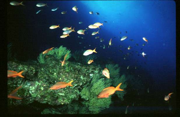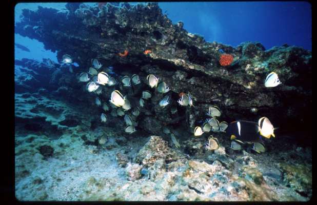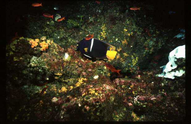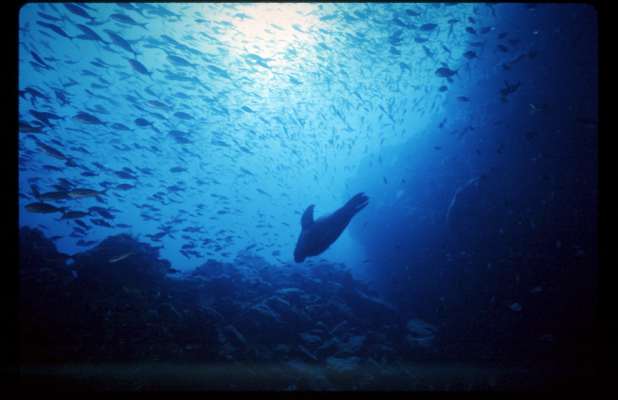 In 1998 I sailed aboard the Galapagos Agressor during El Nino for the dive week of a lifetime. I had been in freshwater Florida caves diving for 6 months and welcomed single tank salt water diving for a change. Although usually cold water dives in a 7 mm wetsuit or dry suit, I ended up diving in just my bathing suit because of the warm el nino water. The scenery and wildlife above water was just as interesting as below the surface. I hope to tell the whole story in the future but for now here are some of my slides. /hugh