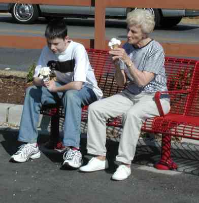 During spring holidays (AEA) Susan's brother Dennis's children Stephie and Adam went to Washington, DC with Susan and her mom, Susie. They had a great time. After they got back to Spartanburg we went to Brusters to eat ice cream. On Sat we met Dennis and Diana at the Mall of Gerogia. Adam & Stephie climbed the climbing wall at Gaylands. Come back next spring Stephie and Adam! /hugh