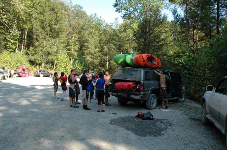 Dustin ran into Mike and Dewey at Gauleyfest and we decided to playboat the Upper Gauley with them on Sunday. Mike is sponsored & Dustin is pulling loops now. It was a great playboat day! It was my first time to paddle on down to the new takeout and do Wood's Ferry and Julie's Jucer. There were several rafts loosly in our group. It was the most kayak gear my truck had ever carried. A great end to a great 3-day weekend of paddling. Can't wait to get back to West Virginia! /hugh