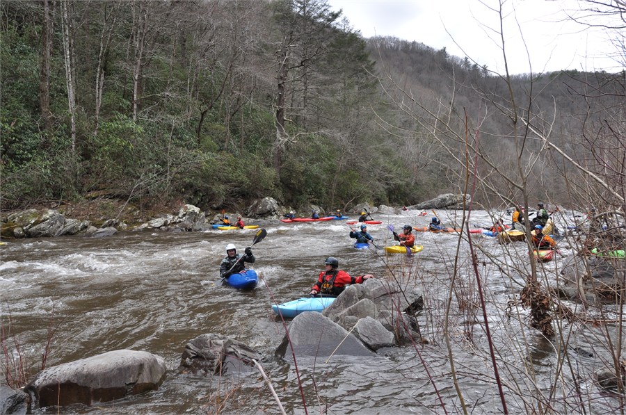 Today was the first scheduled Cheoah Release and people from many states traveled to the Robbinsville, NC area for the 1000cfs one day release. This was one of the most pleasant paddling days I can ever remember. So glad Chloe Indiac Gladys was on hand to take such great pictures! Great going Chloe! The group did very well and enjoyed the River's End for dinner. See you for the March 19th release!!! /hugh