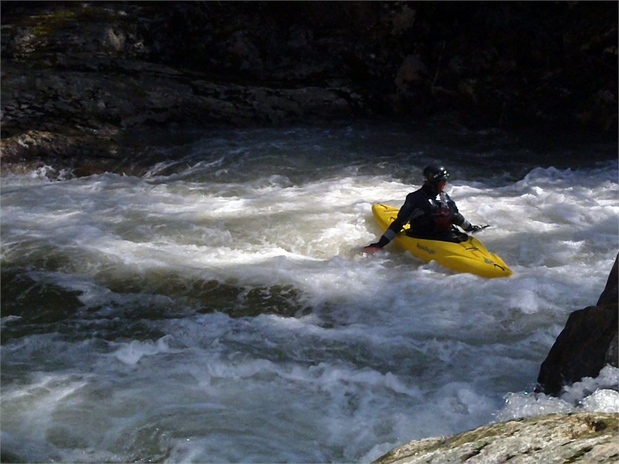 I had been wanting to paddle the Doe Gorge near Elizebethton, TN for a number of years. We went there after a big rain and ran 2 laps. It has perhaps the easiest shuttle of any creek we run. I joined Mike Simpson, Tim Gill, and Dan Thomas for a great afternoon. We scouted Body snatcher and I volunteered to try out the line we choose. We found a white goat along the river that Dan had seen years earlier. The level was 750to 800cfs and was a great level. Can't wait to come back guys! /hugh