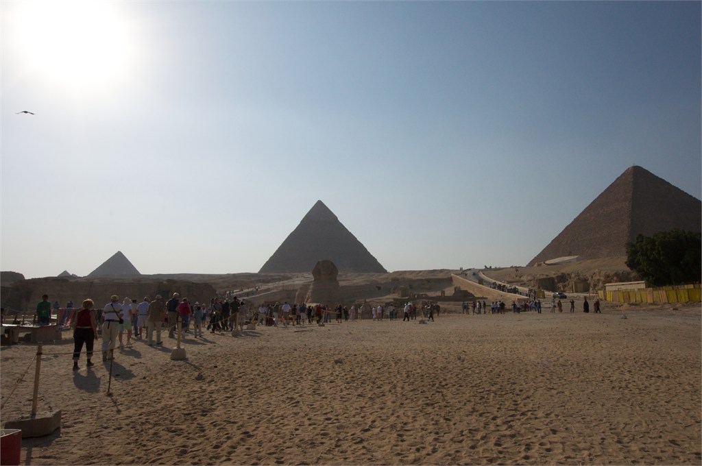 The Prinsendam docked in Alexandria and we boarded a bus for our 2-day Egyptian adventure. It was an interesting two hour drive to Giza and we saw plenty of desert. Our first stop was to the very first pyramid known as the Step Pyramid. Excavation continues here. After lunch we visit the 3 big pyramids located where the desert meets Giza. Here also is located the Sphinx. The entire city currently has no garbage pickup and the situation is severe. At night a light show here was beautiful & informative. We stayed at the Four Seasons Hotel on the Giza side of the Nile. /susan