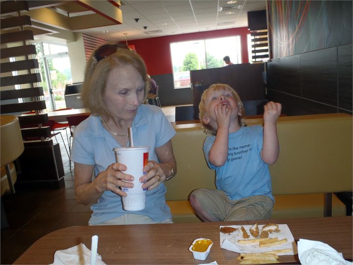 While Elyse is in the hospital Susan & I are keeping Hudson. Today we went to school, threw rocks, and played in the creek. We ate at McDonalds. What a wonderful day!!! /hugh