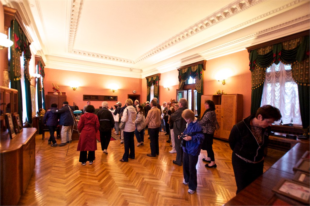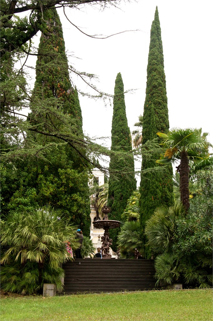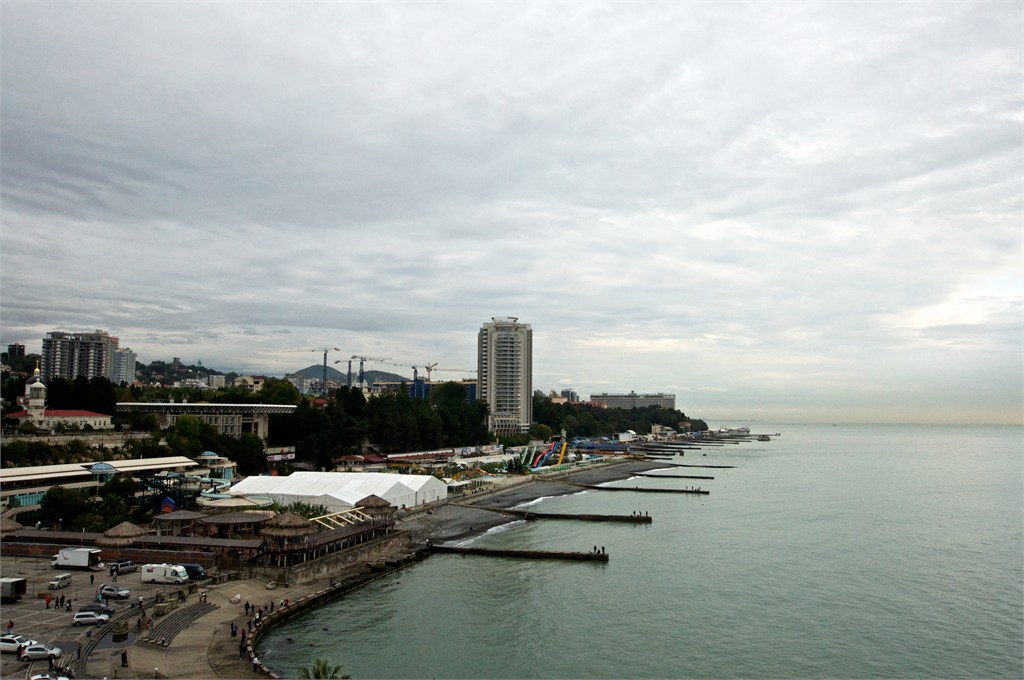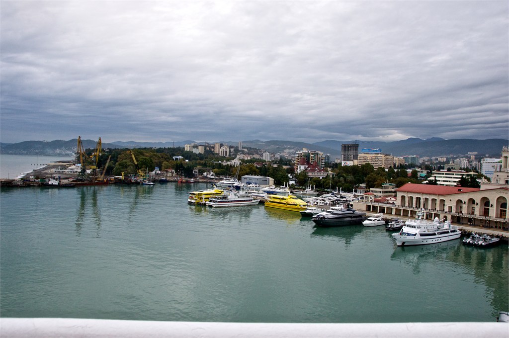 We were excited to get back to Russia again. Sochi will be the venue of the next Winter Olympic Games. In the period of the Tsars, the Russian gentry had their grand Black Sea palaces on the Crimea but Stalin had his main one here in Sochi. We first visited Stalin’s dacha with it’s odd green color and within it his study with it’s pink color. The desk & most of the furniture were gifts of Chairman Mao. Then we went to an observation point to look over the palm lined beaches on the sea coast and the snow covered mountains inland. This is clearly a big tourist destination and construction is evident everywhere. /susan