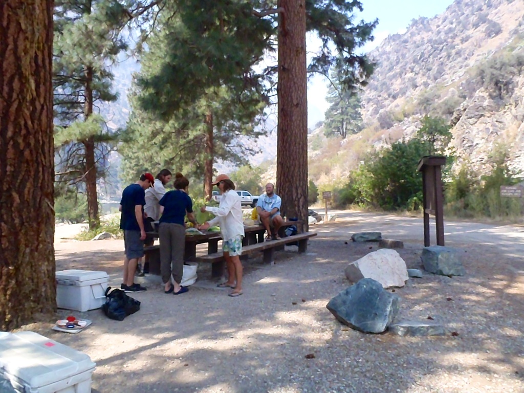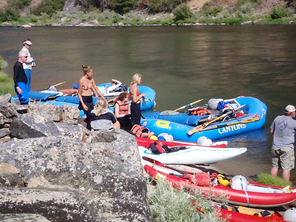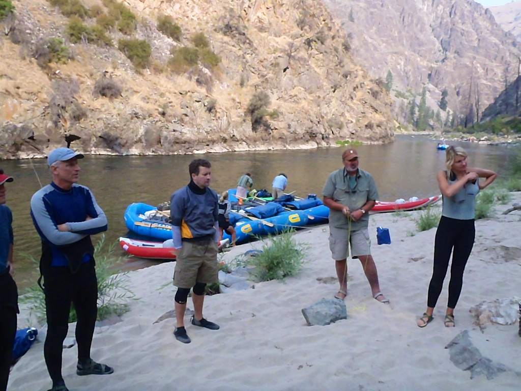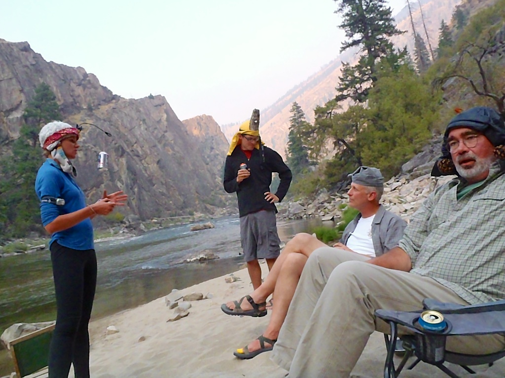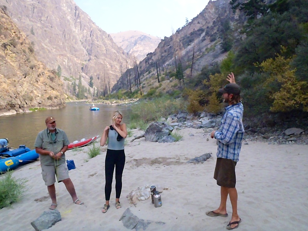 Today is the big day. I awoke early, cooked breakfast, and broke camp. I drove to McCall Air to meet some of my fellow adventures with Canyons Inc . We were met by our friend Sue Bechdel and boarded a small prop plane. There have been a lot of forrest fires in the Sawtooth Mountains that we could see as we flew to Indian Creek where we landed. We were soon joined by an even smaller plane from Boise carring Trey. We geared up and packed our boats. What a great group of river-loving campers!! Our group included Greg, Trey, Christy, Matteo, Julie, Giulia, Sam, Bill, and myself. Our guides were Helen, Ariana, Serena, Neal, and Josh. We have been on this itinery previously but in early June and late July so the river level was different and the weather was cooler. We enjoyed good food, played games, conquered rapids, took hikes, saw historic sites, and slept out under the stars. The weather couldn't have been more perfect. Several of the guests would be starting new paths along lifes journeys after the trip. What wonderful companionship and a great adventure! When will we all adventure together again!!! /hugh