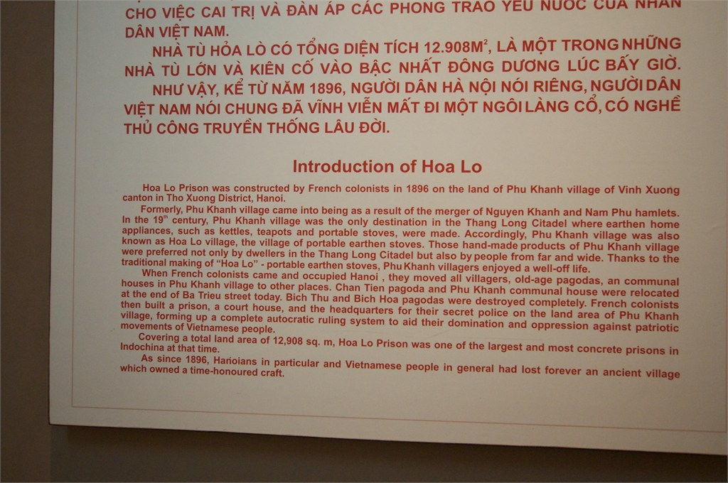 The notorious Hoa Lo prison was built by the French to house rebels fighting against colonial rule. During the Viet Nam war it housed American pilots and was known as the Hanoi Hilton. The prison has been turned into a museum and is very interesting. /susanClick a photo to view or click first photo to see a slide show.