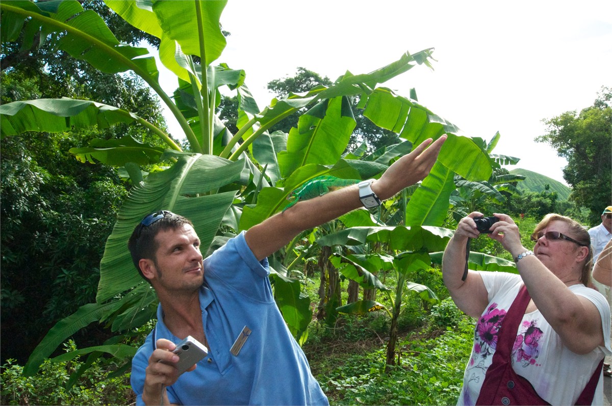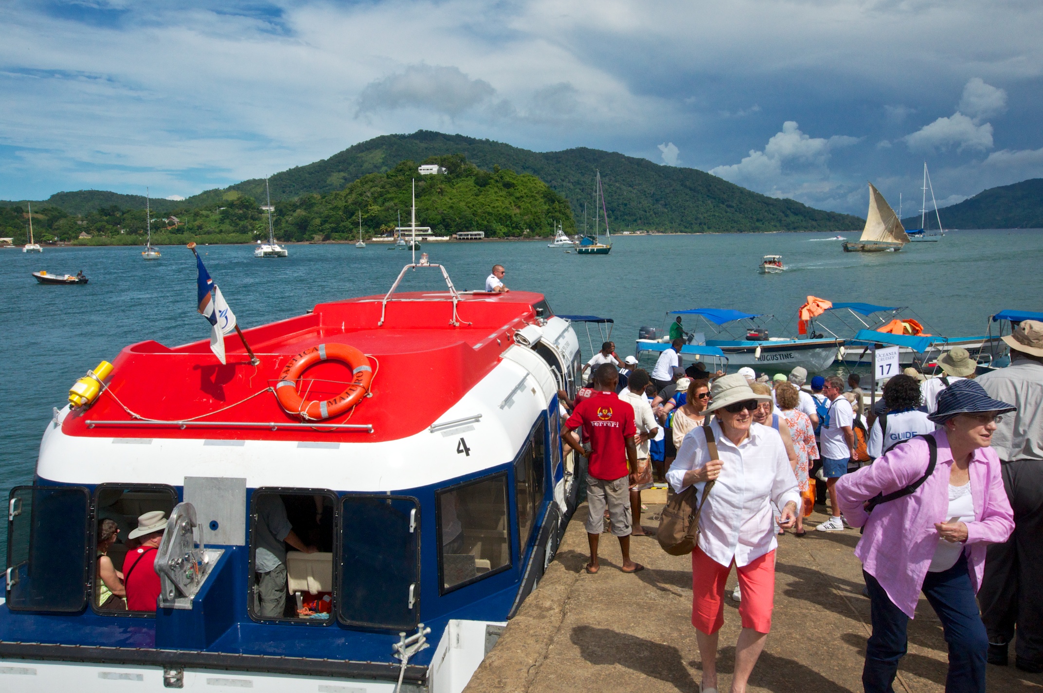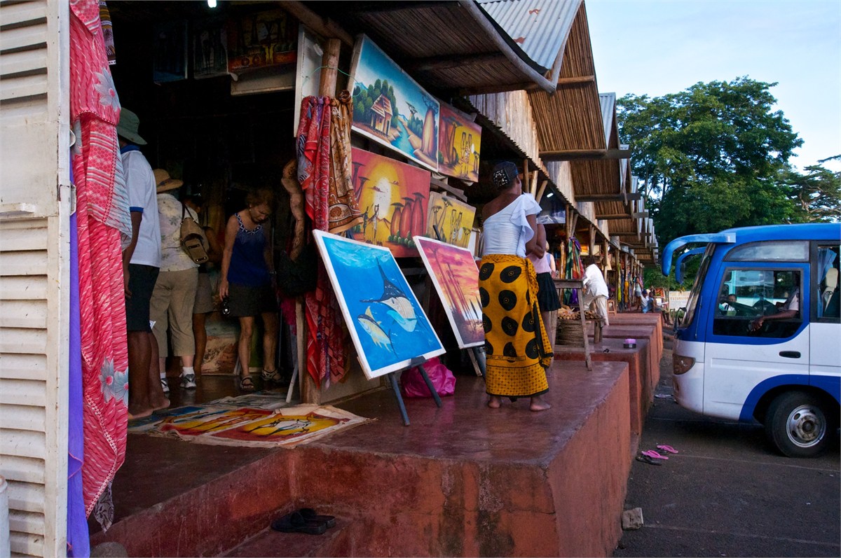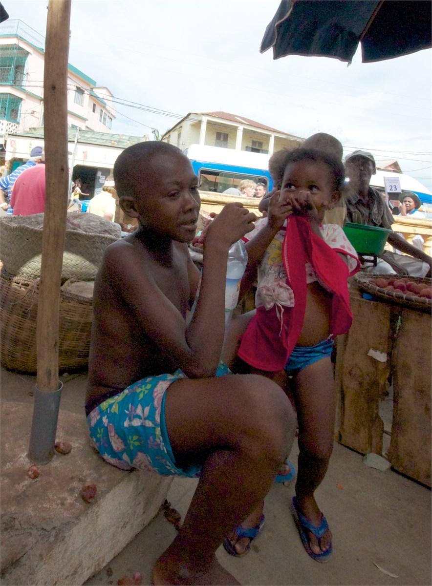 Our first visit to Madagascar. We came in by tender and had a local guide. We toured Hell-Ville, the provencial capital. The weather was very hot and the bus nonairconditioned and not working well. Hugh caught a chameleon and everyone had a good time with it. The markets were fun and the poor were well-fed. An experience we will never forget! /susanClick a photo to view or click first photo to see a slide show.