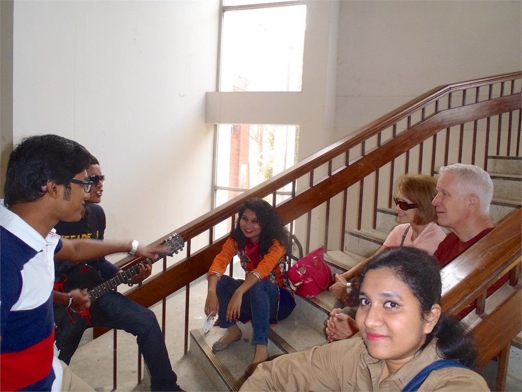On every monetary note in Bangladesh is the likeness of the National Martyr’s Memorial in Savar. This was moving as we were reminded of the many lives lost in the civil war with Pakistan in 1973. Then we went to spend the rest of the day at the largest university in Bangladesh and hang out with Salman’s college friends. That night we ate dinner at Salman’s father’s home. /susanClick a photo to view or click first photo to see a slide show.