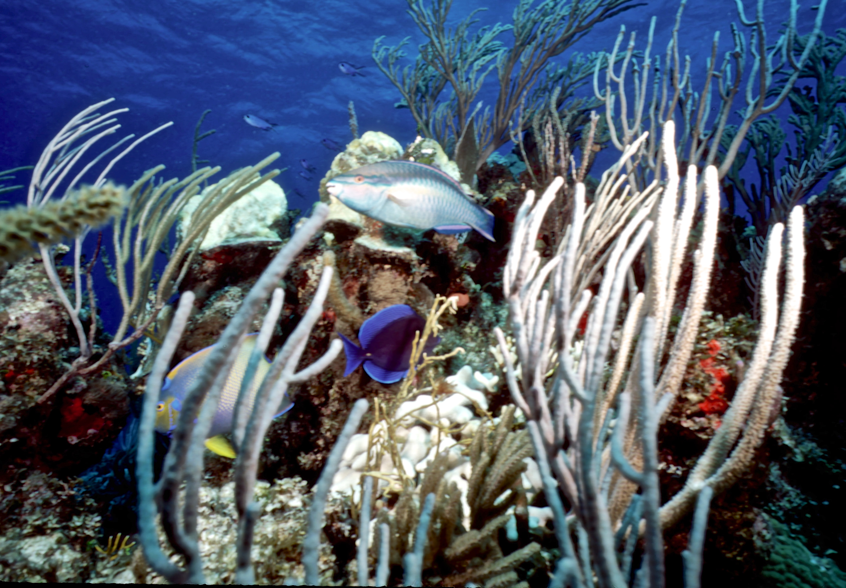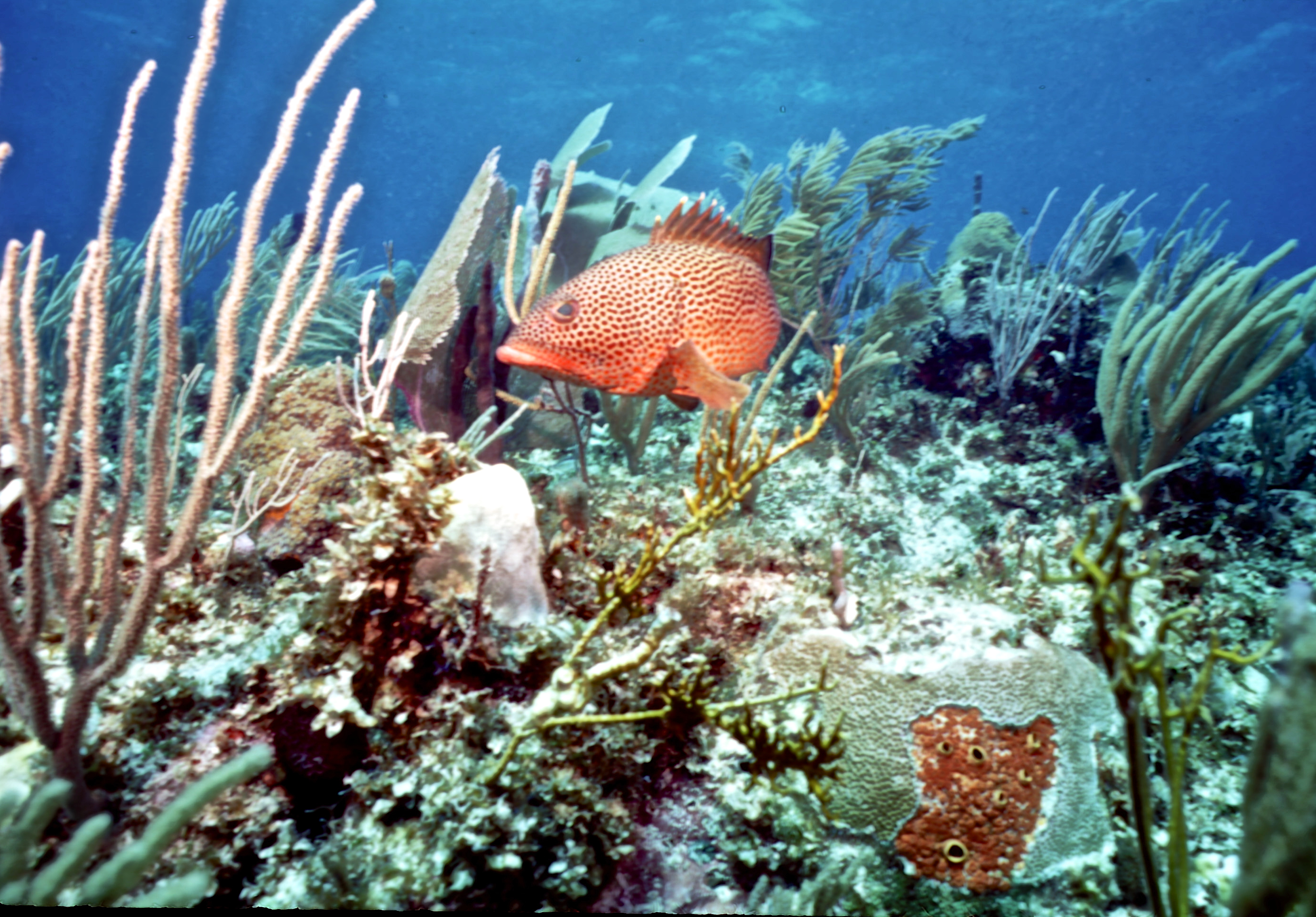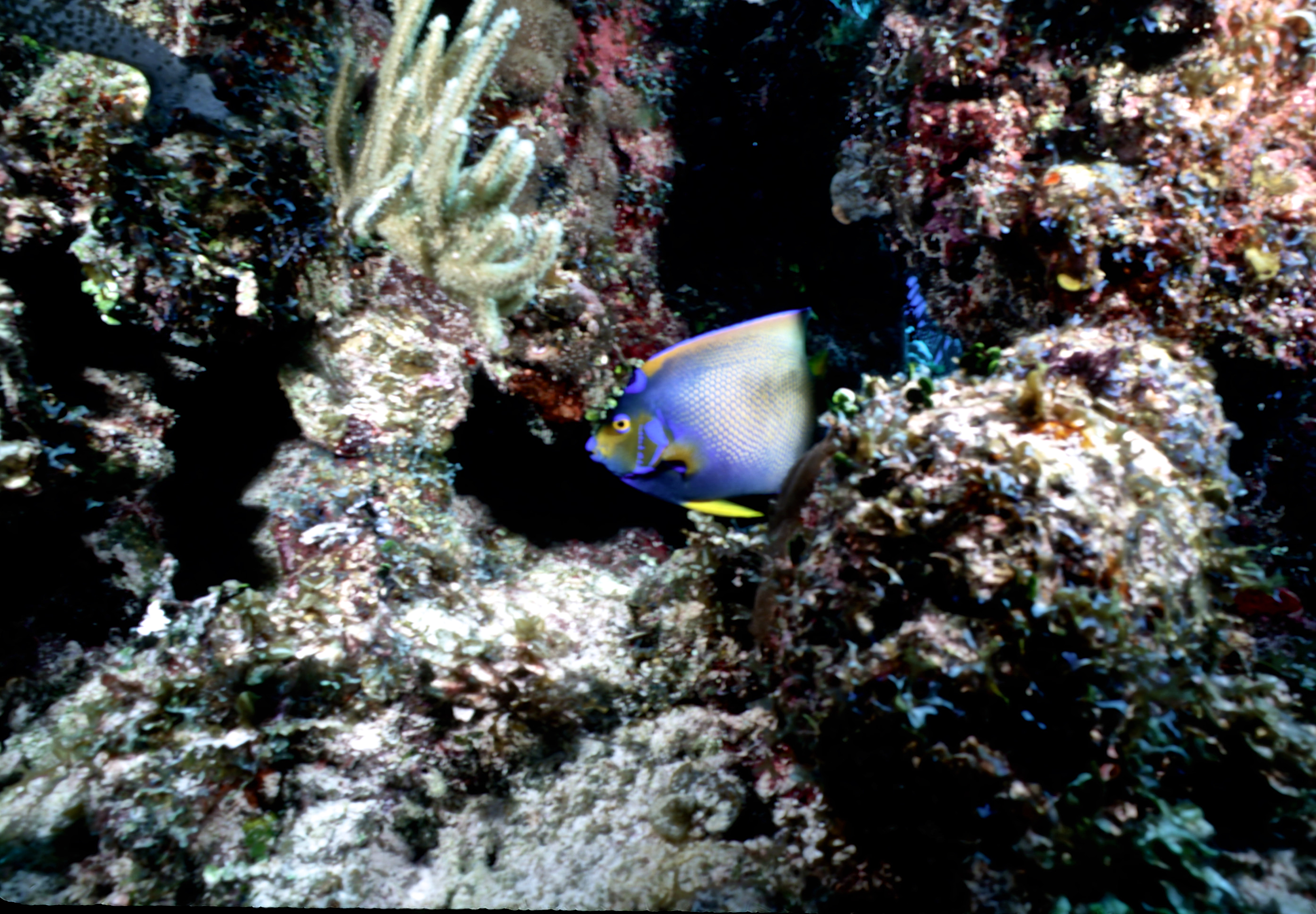 Dive # , Nikon N70 in Ikelite housing, Nikon 105mm 2.8D lens, Fujichrome Sensia 100 slide film, Ilelite Ai strobe, dive buddies, Susan, Trey, and Lori. It is difficult to shoot 105mm macro underwater. On this dive we saw a nurse shark, an eel, and a turtle. /hughClick a photo to view or click first photo to see a slide show.
