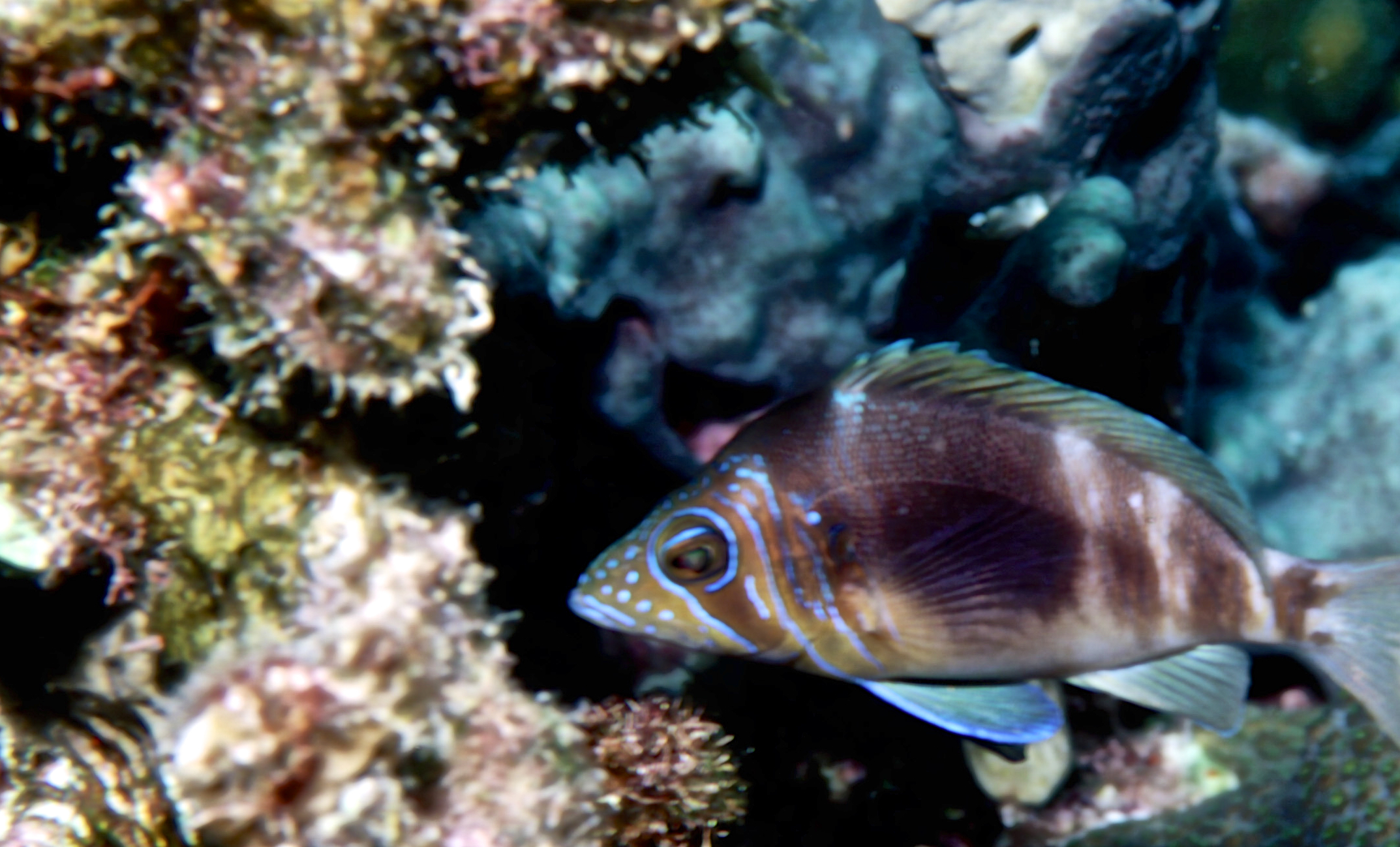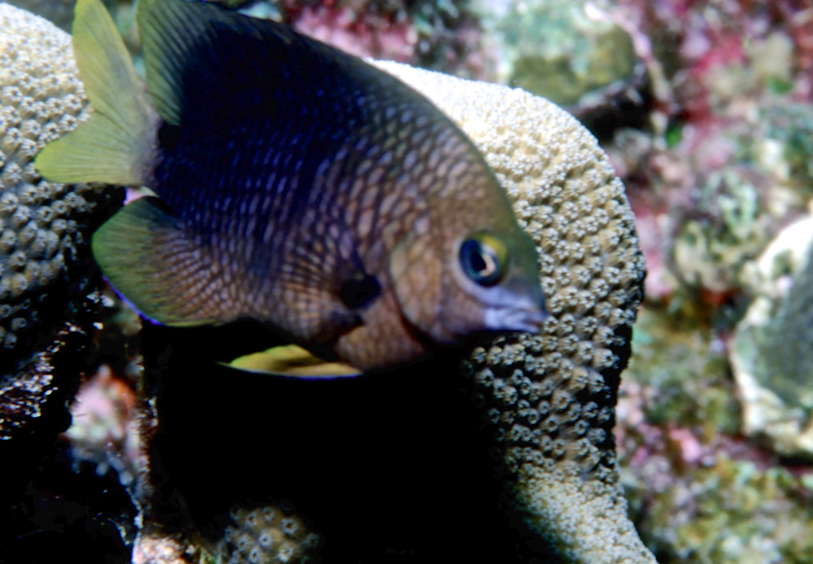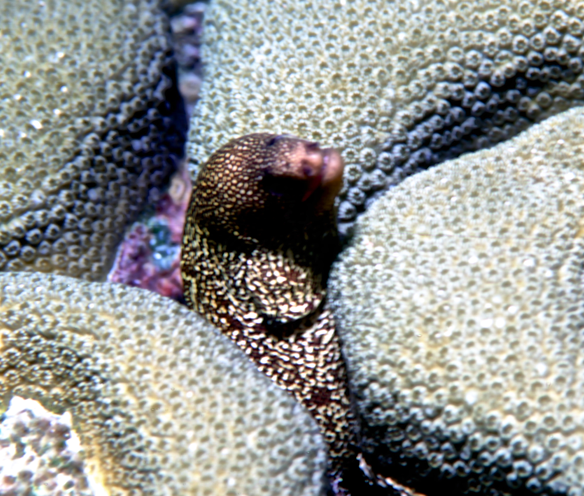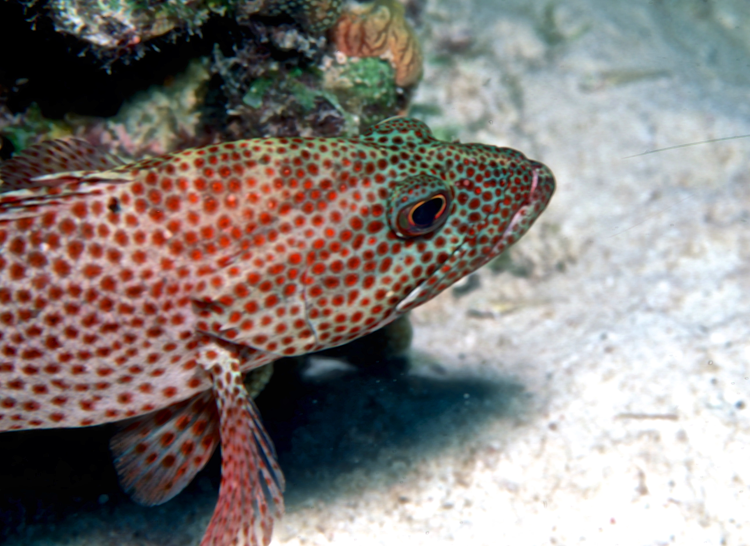 Dive # , Nikon N70 in Ikelite housing, Nikon 105mm 2.8D lens, Fujichrome Sensia 100 slide film, Ilelite Ai strobe, dive buddies, Susan, Trey, and Lori. It is difficult to shoot 105mm macro underwater. On this dive we saw a nurse shark, an eel, and a turtle. /hughClick a photo to view or click first photo to see a slide show.