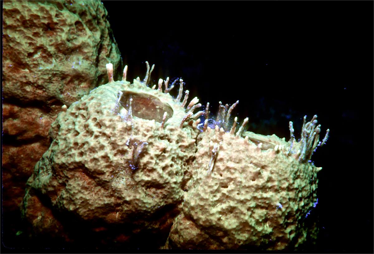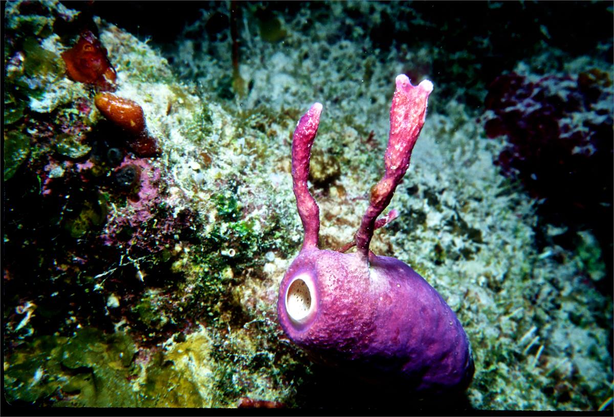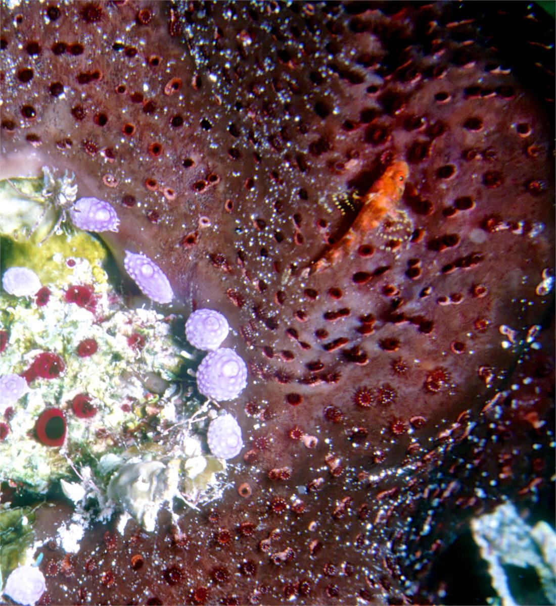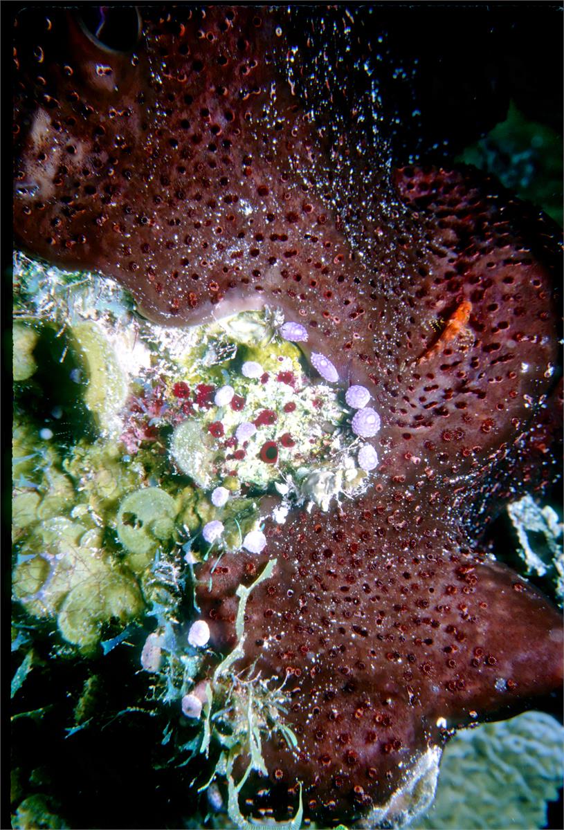 Dive # 98, Nikonos V, 35mm lens as closeup, Ikelite Ai strobe, Fujichrome Velvia 50 slide film, dive buddy Lori. A fun dive. I have always liked full doing strobed 35mm Nikonos V closeup shooting. I got the strangest orange creature swimming in the water table. This yielded great color shots today. My camera flooded on the next dive and that was it for the trip. 100ft, 37min. /hughClick a photo to view or click first photo to see a slide show.
