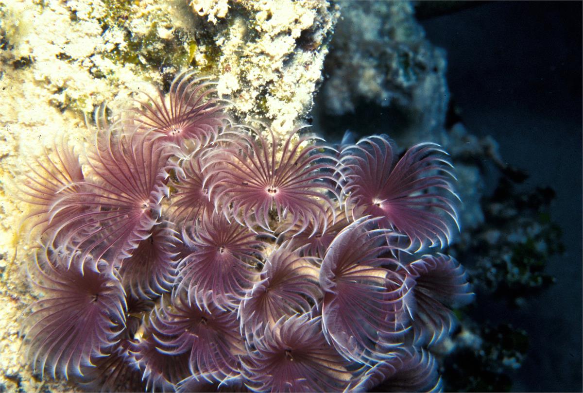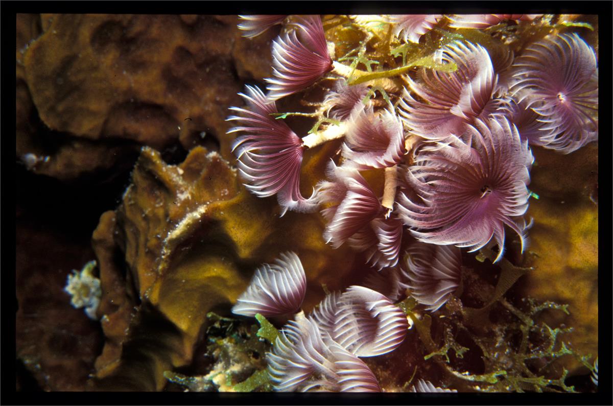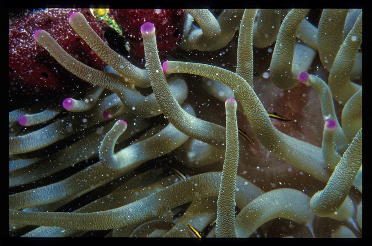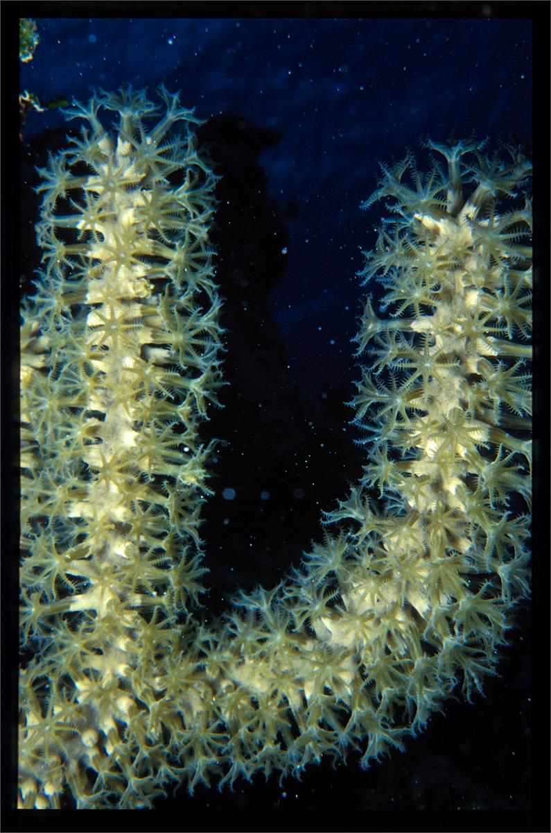 Dive 82. Nikonos V camera, Velvia 50 slide film, 35mm lens with some use of Nikonos close up kit, single Ikelite Ai strobe, dive buddy Lori. There were some deeply shadowed areas that already had coral polyps extended. We saw some very healthy anemonae and a conch. We did 3 dives here. 43ft, 55min. 39ft, 102min. 42ft, 56min. /hughClick a photo to view or click first photo to see a slide show.