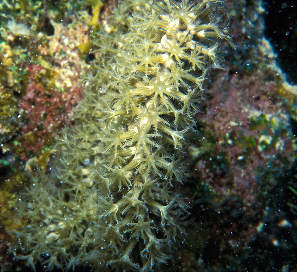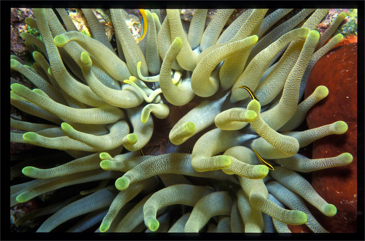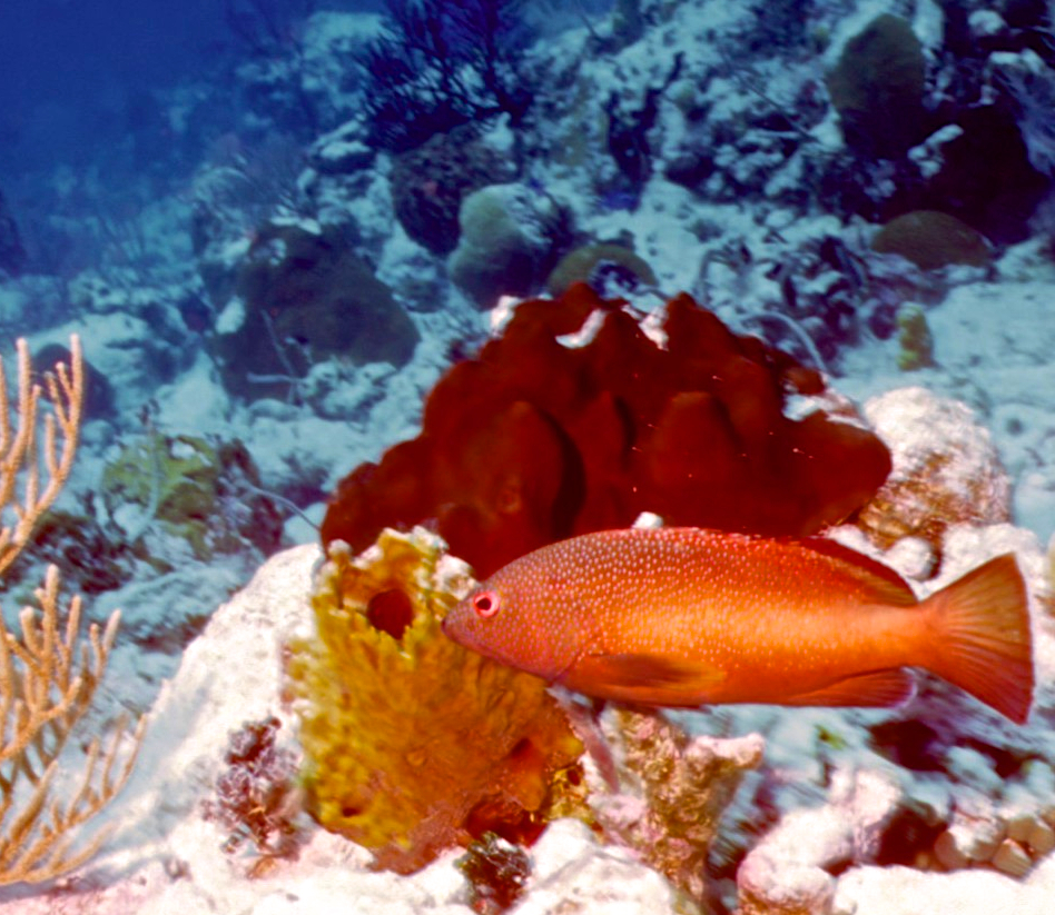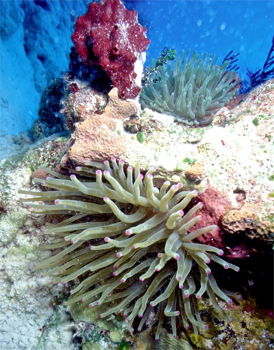 Dive 82. Nikonos V camera, Velvia 50 slide film, 35mm lens with some use of Nikonos close up kit, single Ikelite Ai strobe, dive buddy Lori. There were some deeply shadowed areas that already had coral polyps extended. We saw some very healthy anemonae and a conch. We did 3 dives here. 43ft, 55min. 39ft, 102min. 42ft, 56min. /hughClick a photo to view or click first photo to see a slide show.
