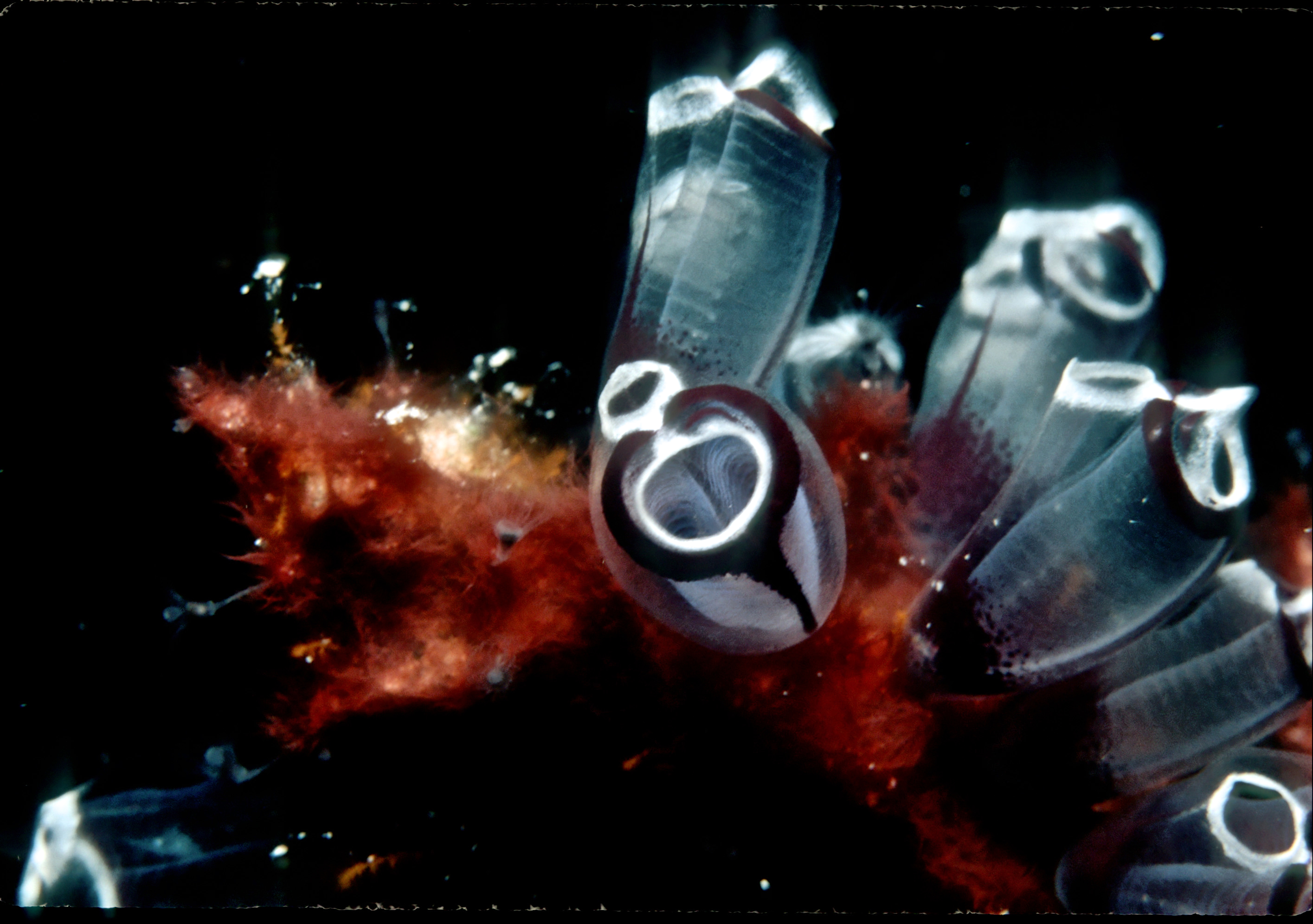 Nikonos V camera, velvia 50 slide film, 1:3 macro, single Ikelite Ai strobe, solo. I got some good shots of tunicates and algae cups /hughClick a photo to view or click first photo to see a slide show.