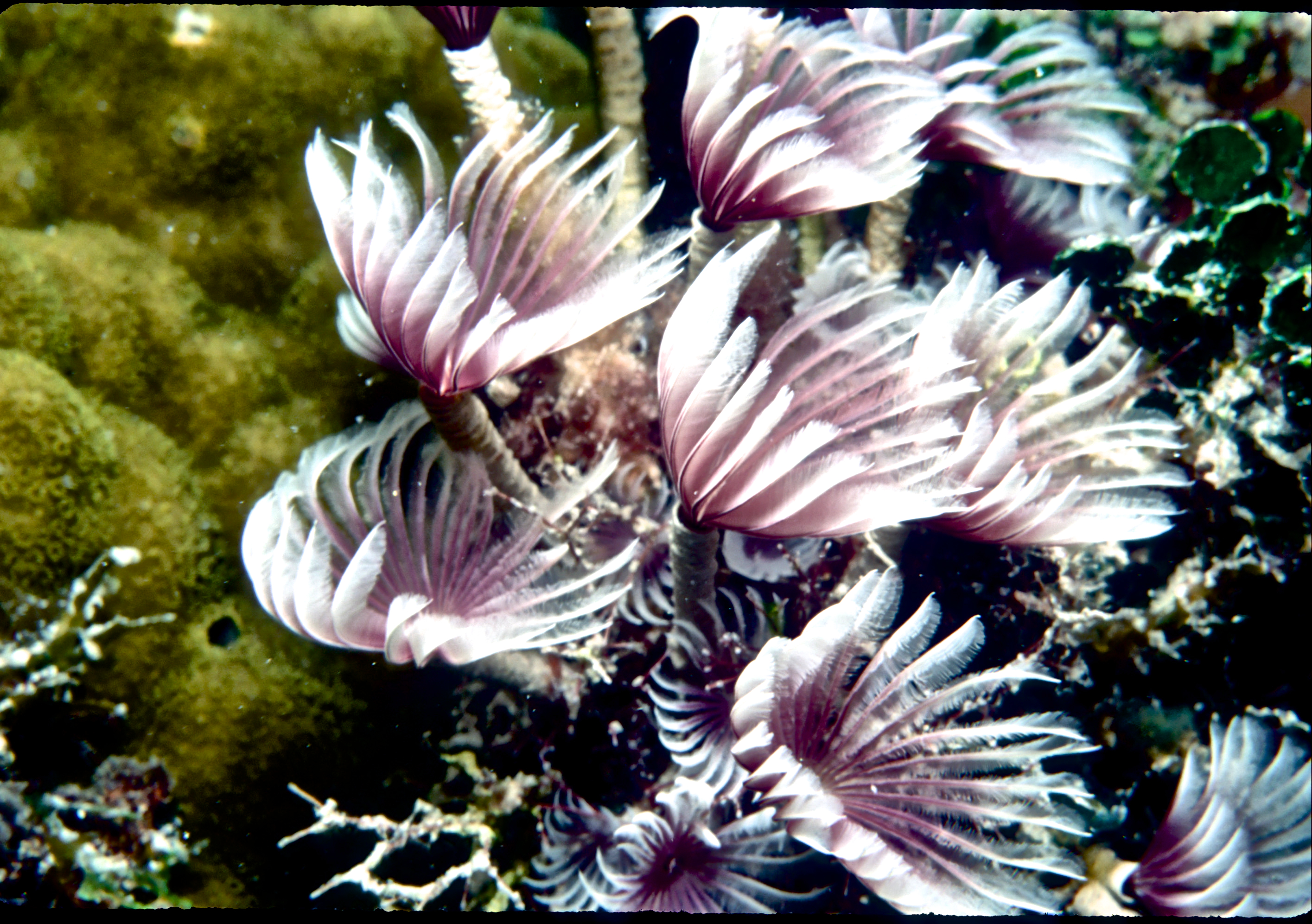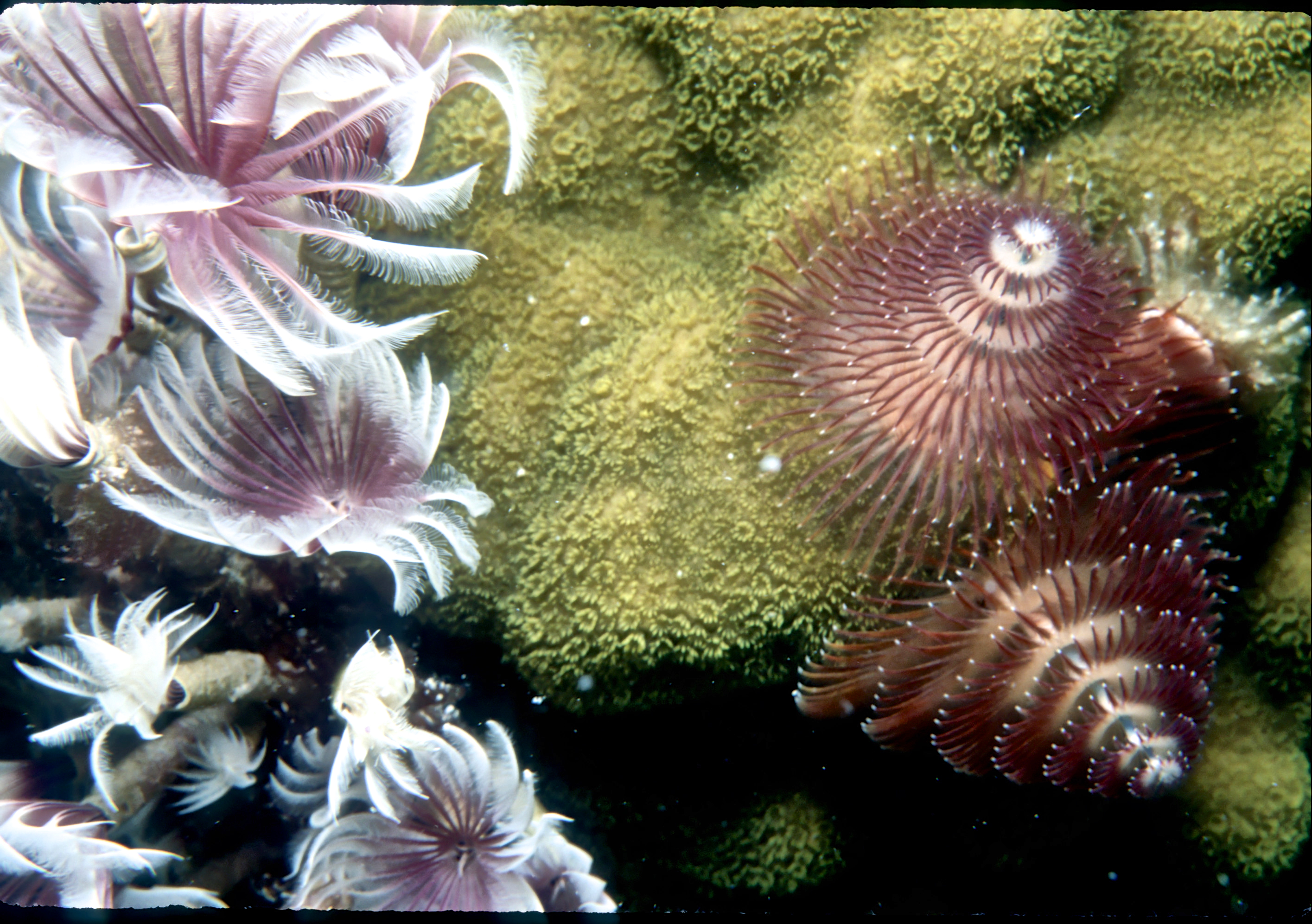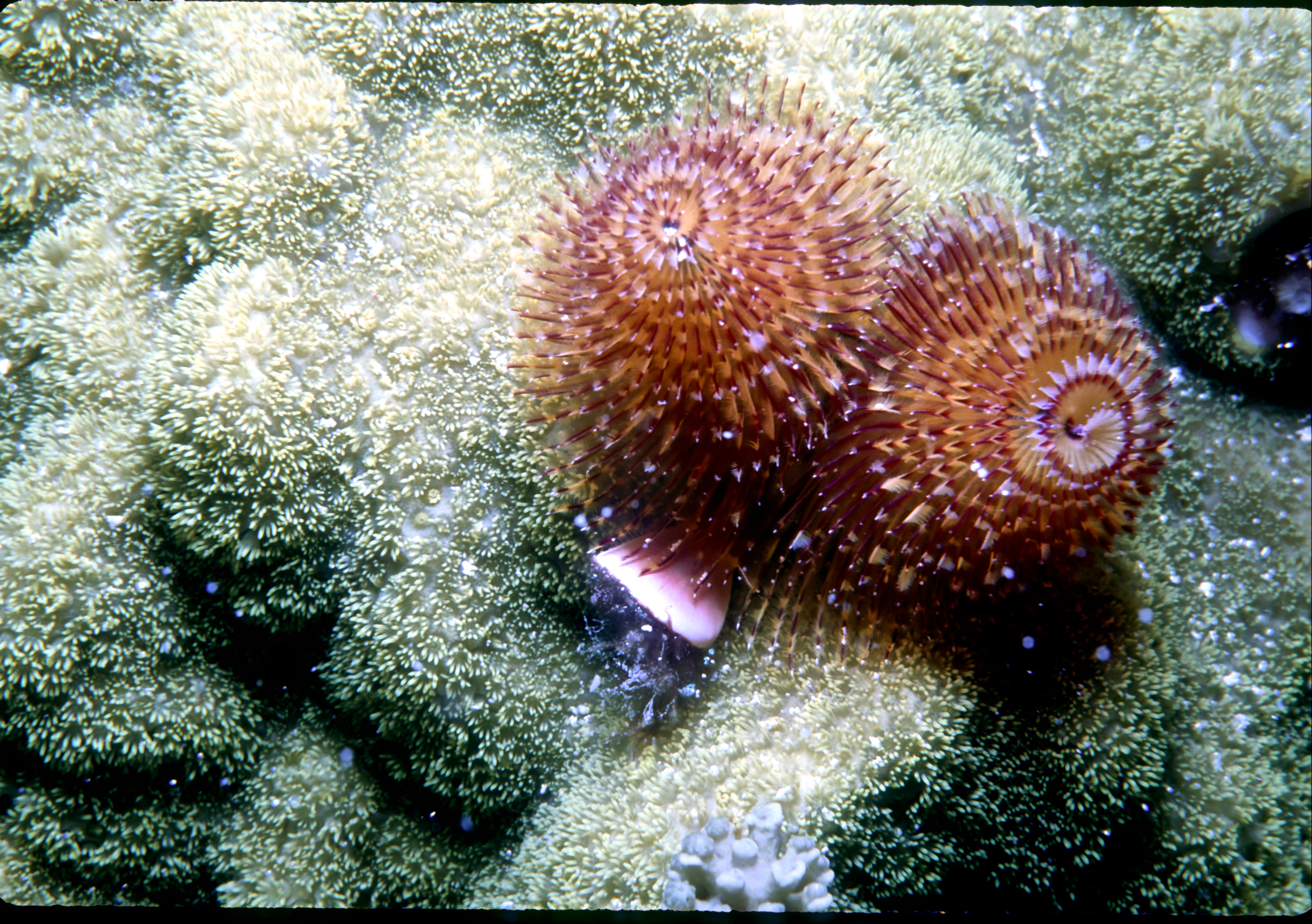 Dives around 190 ,Nikonos V camera, macro framers and 15mm lens, Ikelite Ai strobe, solo. Also took a second camera. For some reason I mixed the slides from these 5 dives long ago. The 15mm lens was only used at Big Hole. I got some good shots of two types of small shrimp and an octopus. /hughClick a photo to view or click first photo to see a slide show.