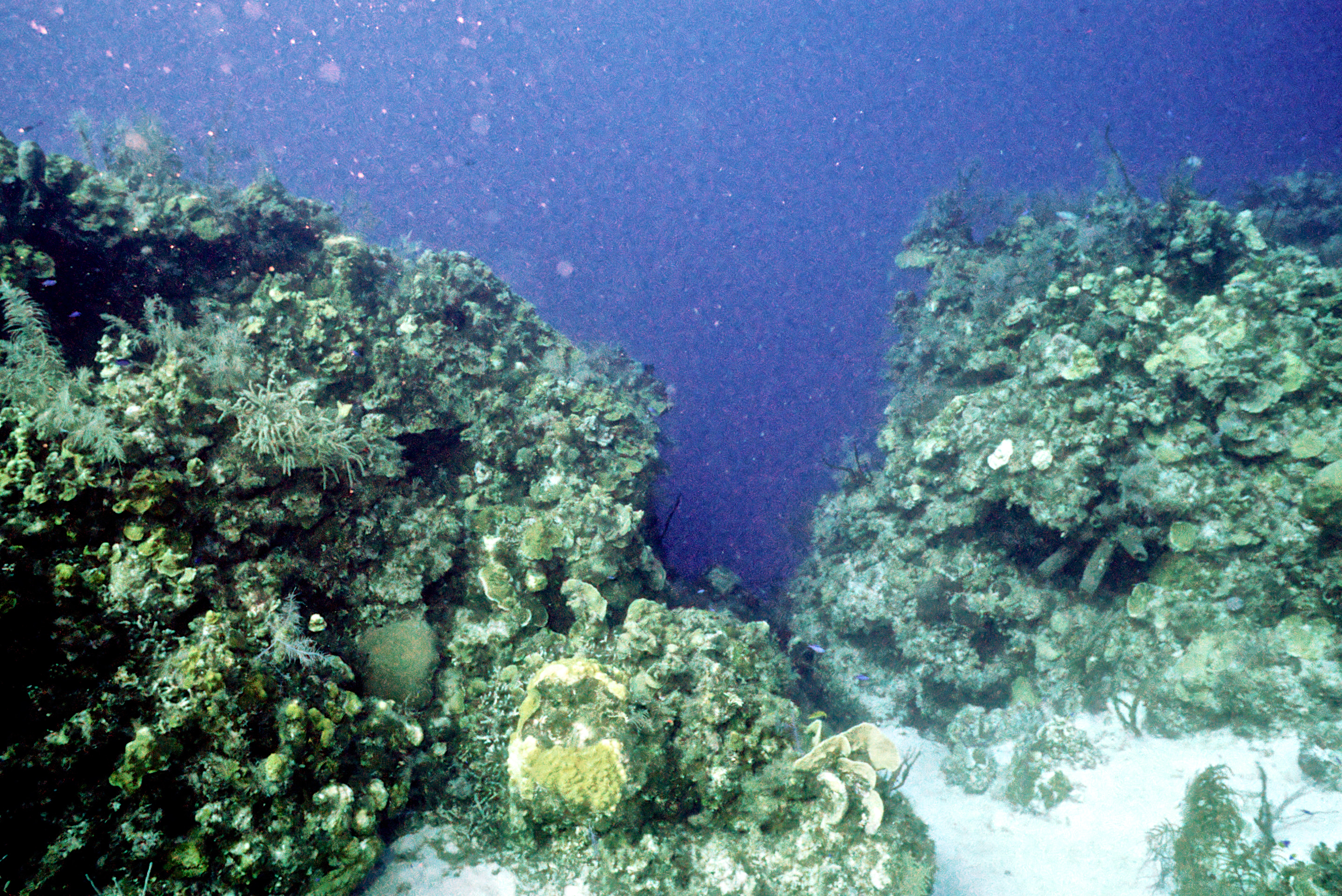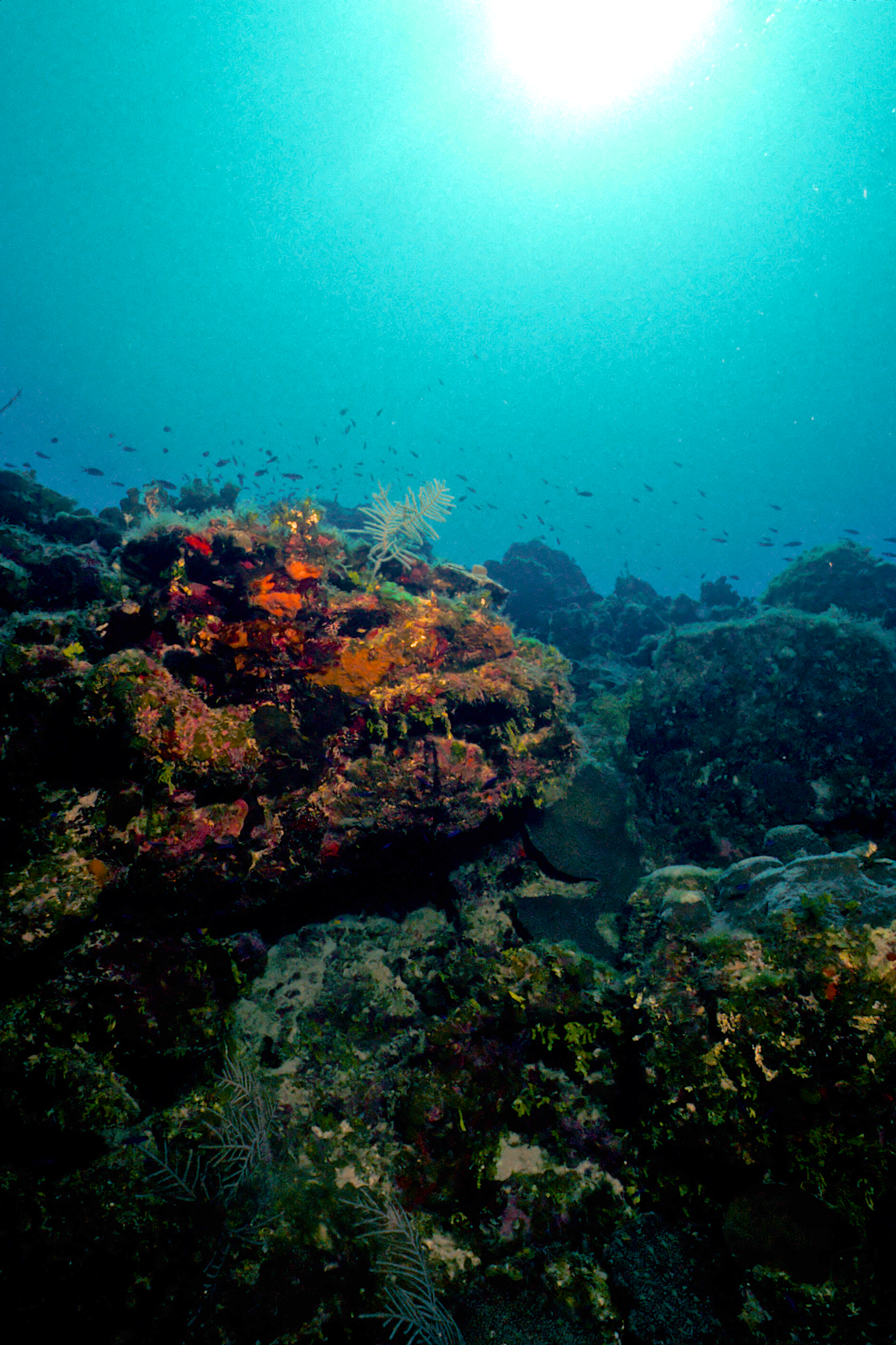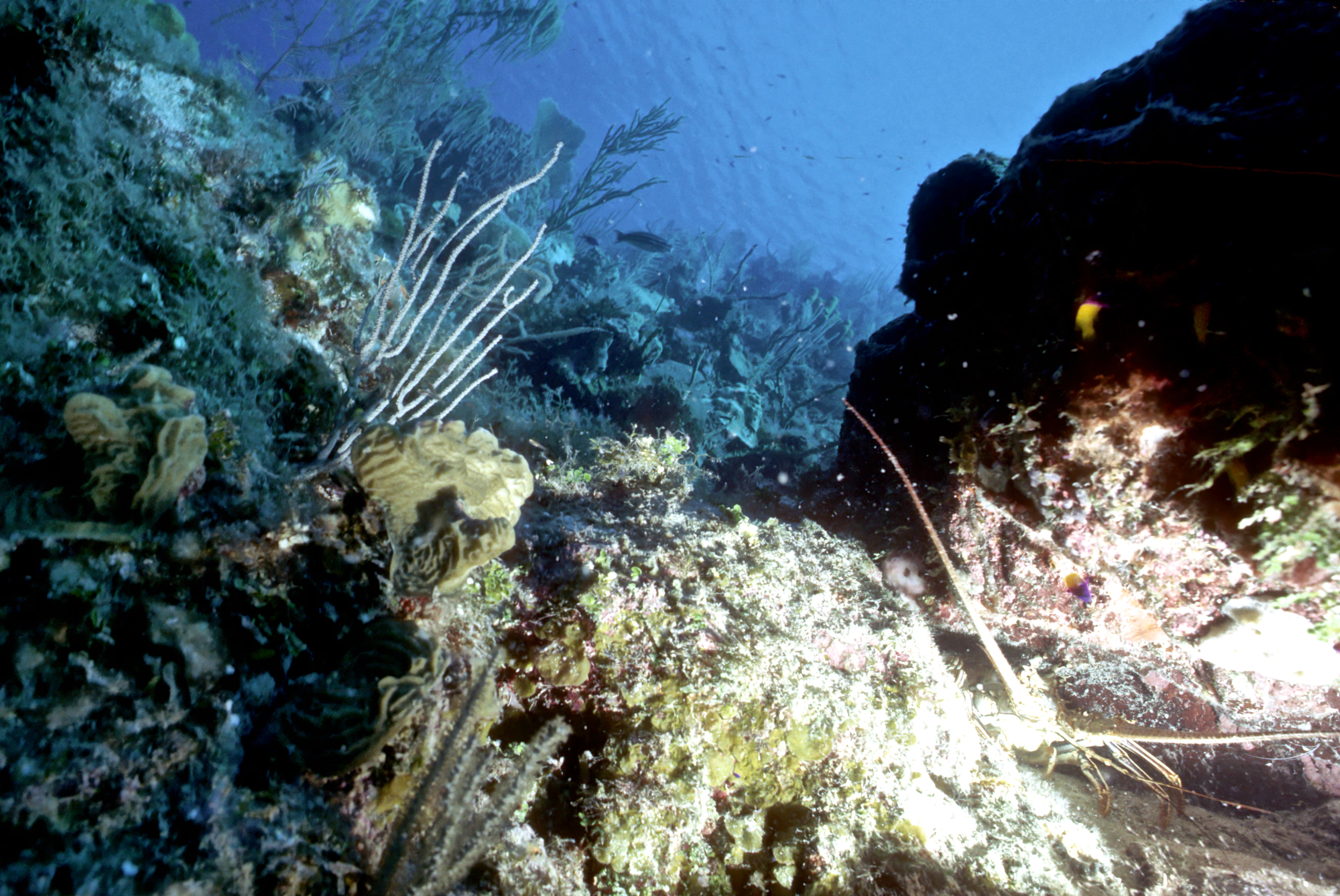 Dive 205. Dive buddy Rob Schlamowitz. Nikonos V, 15mm lens, Sensia 200 slide film. I was on a dive medicine course and dived with the participants. /hughClick a photo to view or click first photo to see a slide show.