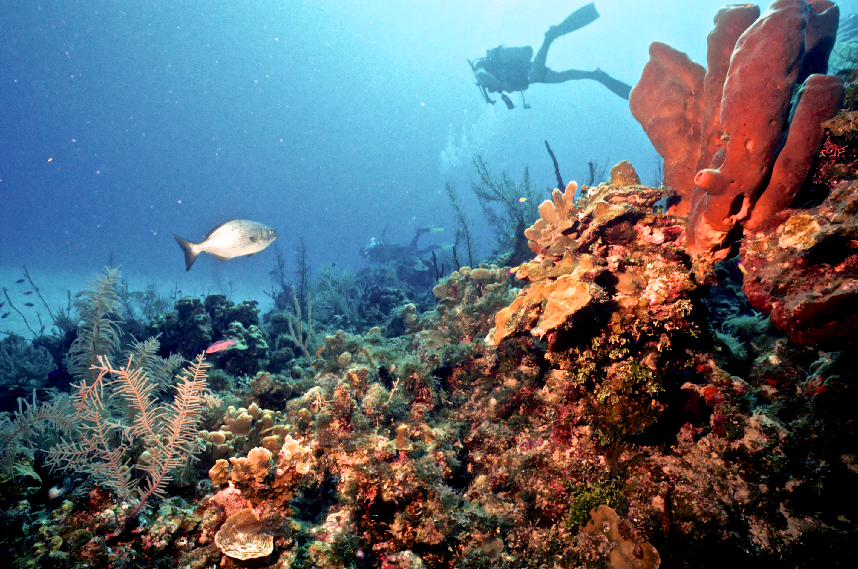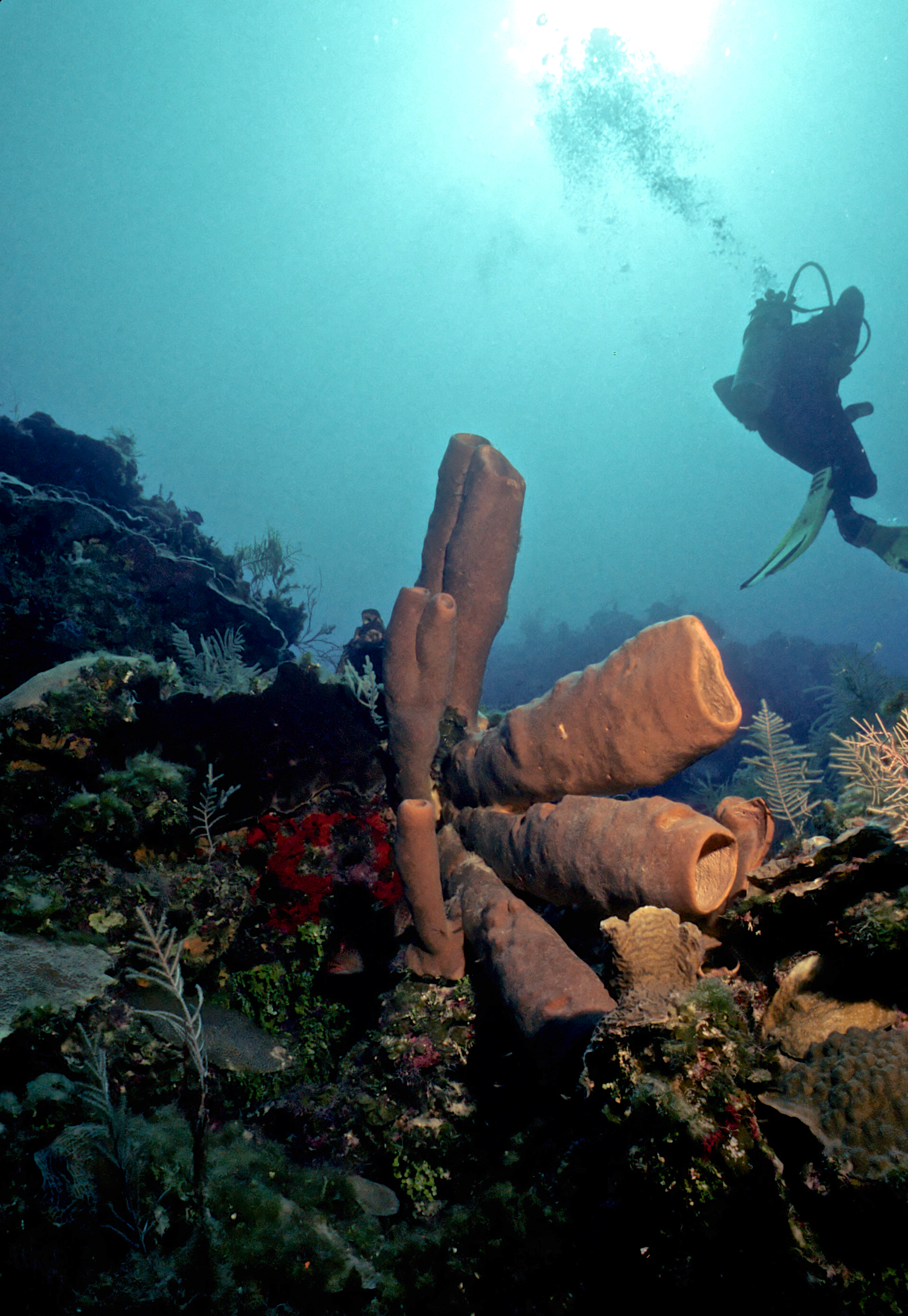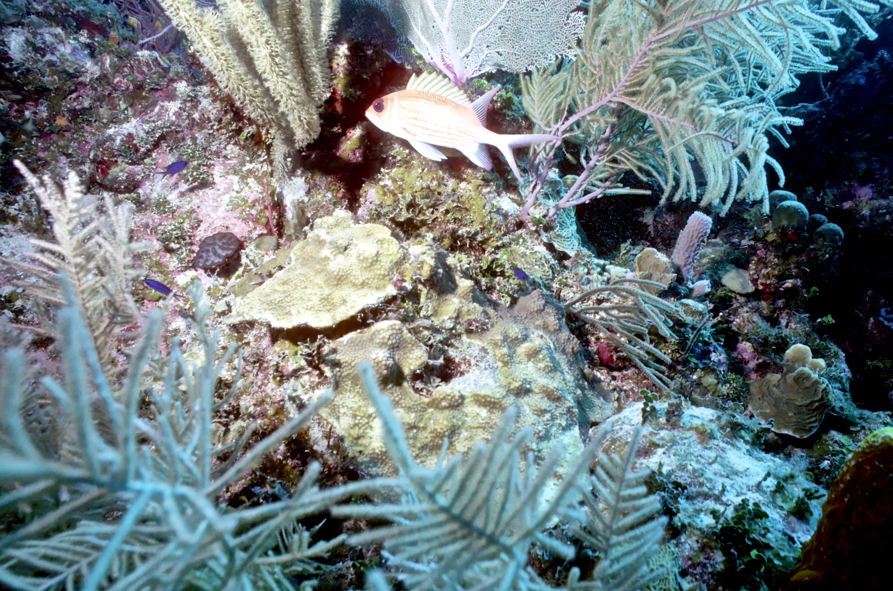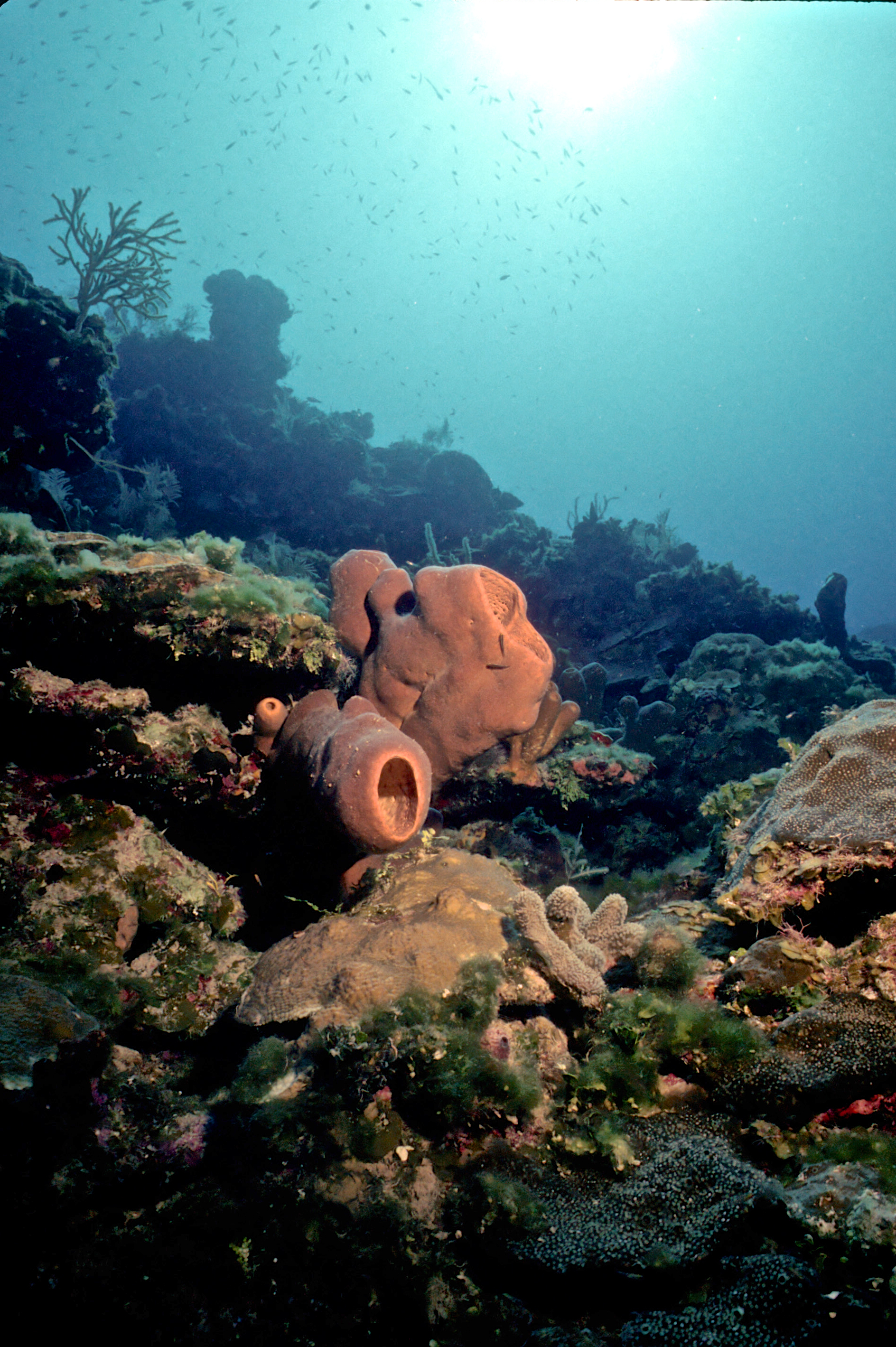 Dive 205. Dive buddy Rob Schlamowitz. Nikonos V, 15mm lens, Sensia 200 slide film. I was on a dive medicine course and dived with the participants. /hughClick a photo to view or click first photo to see a slide show.