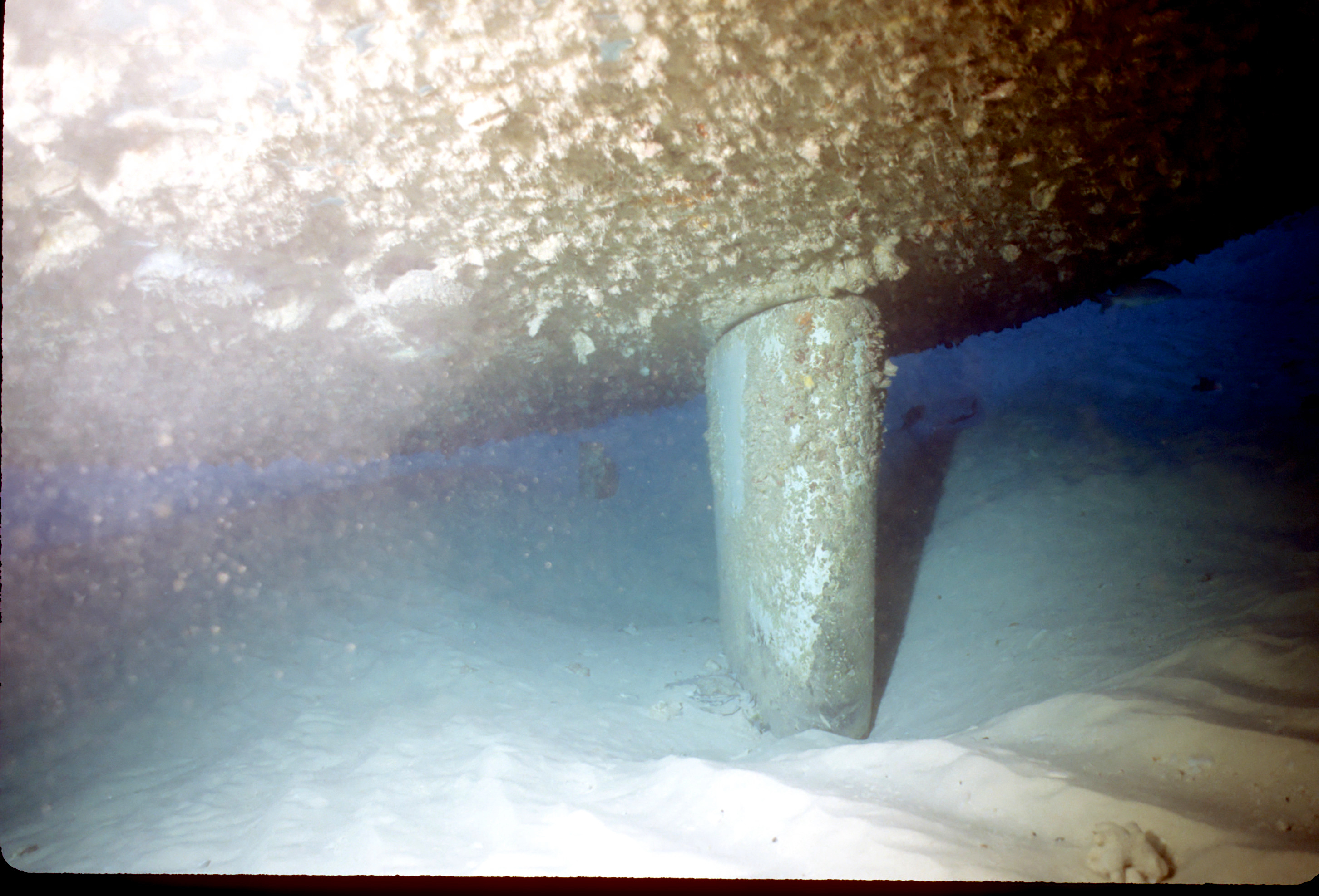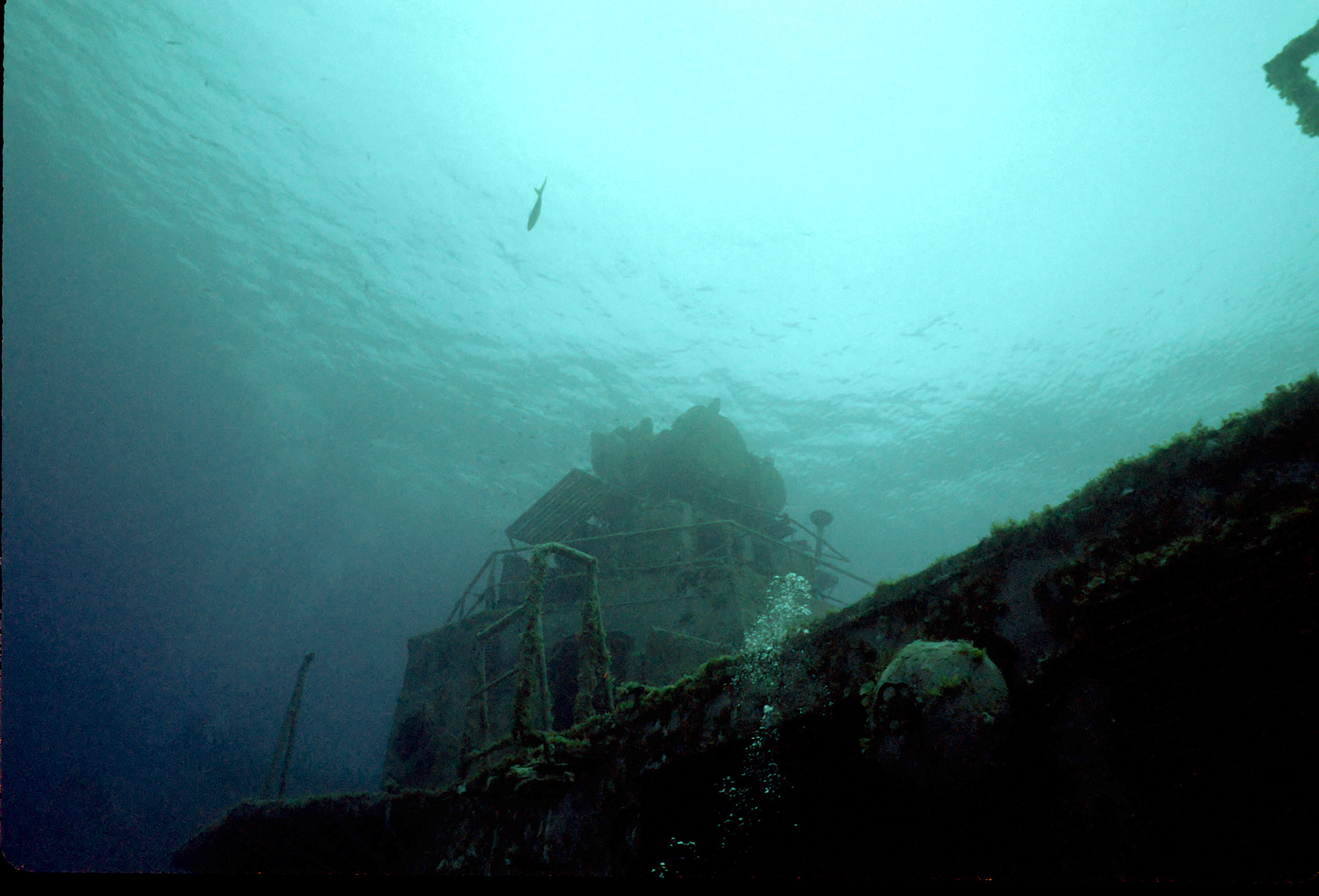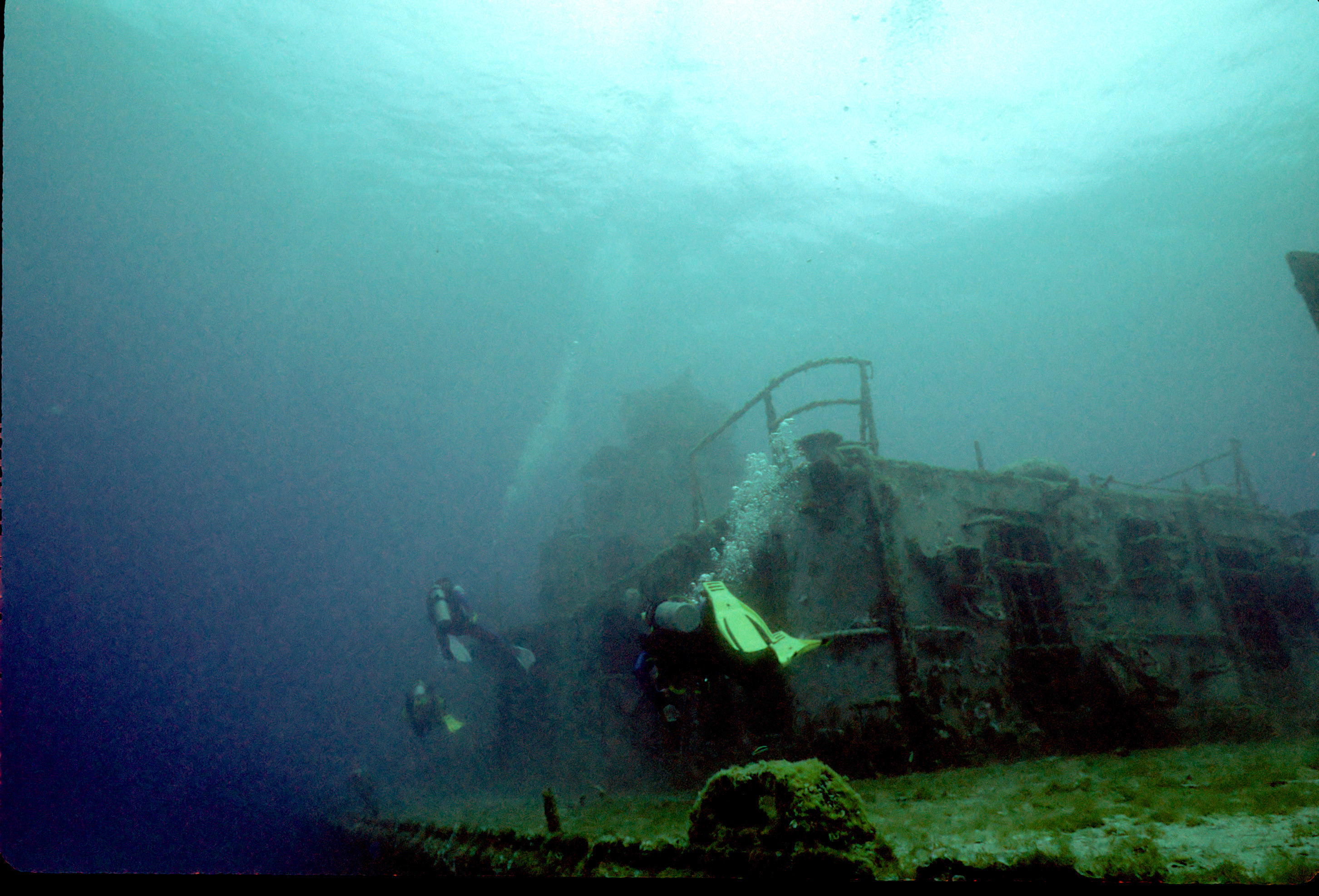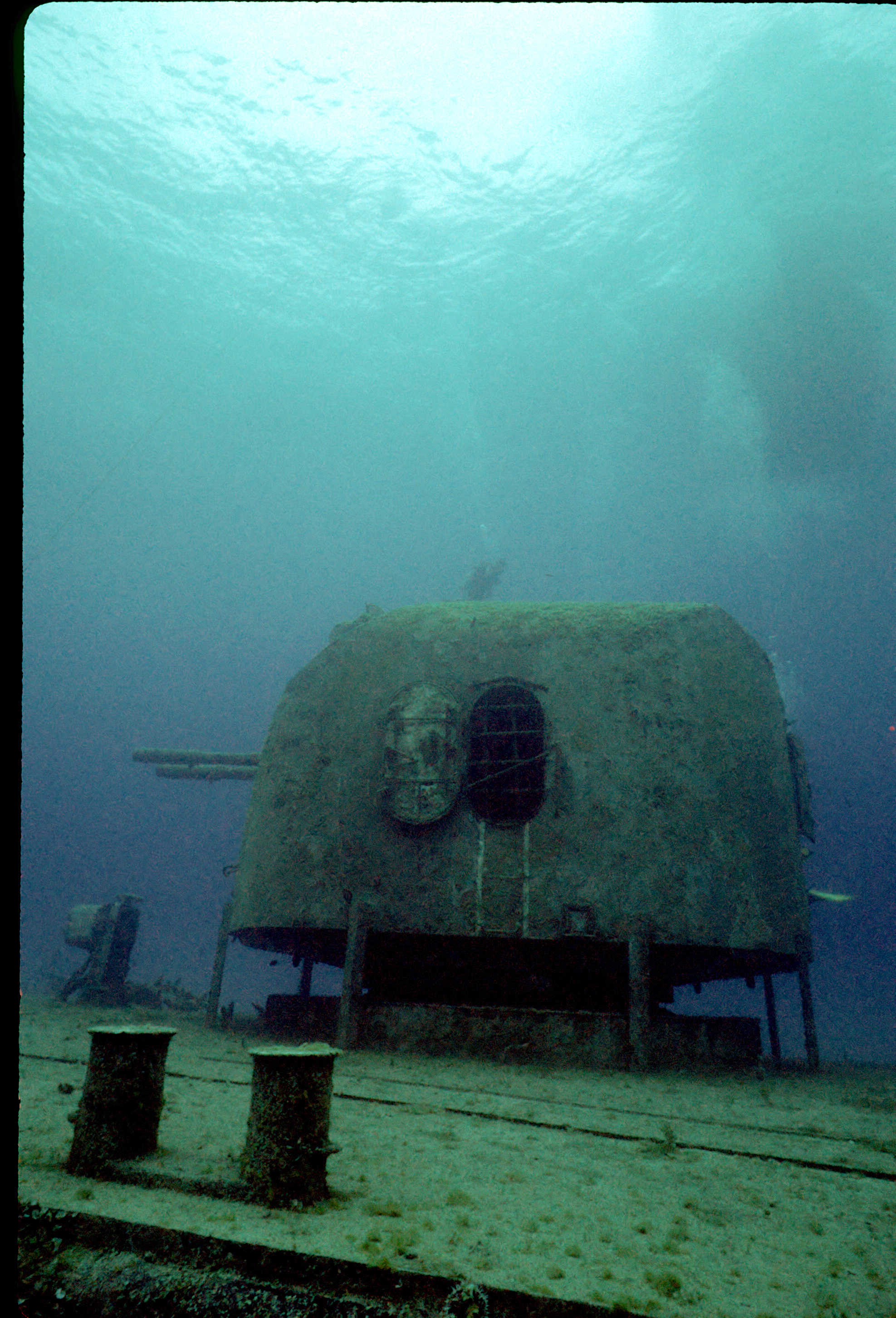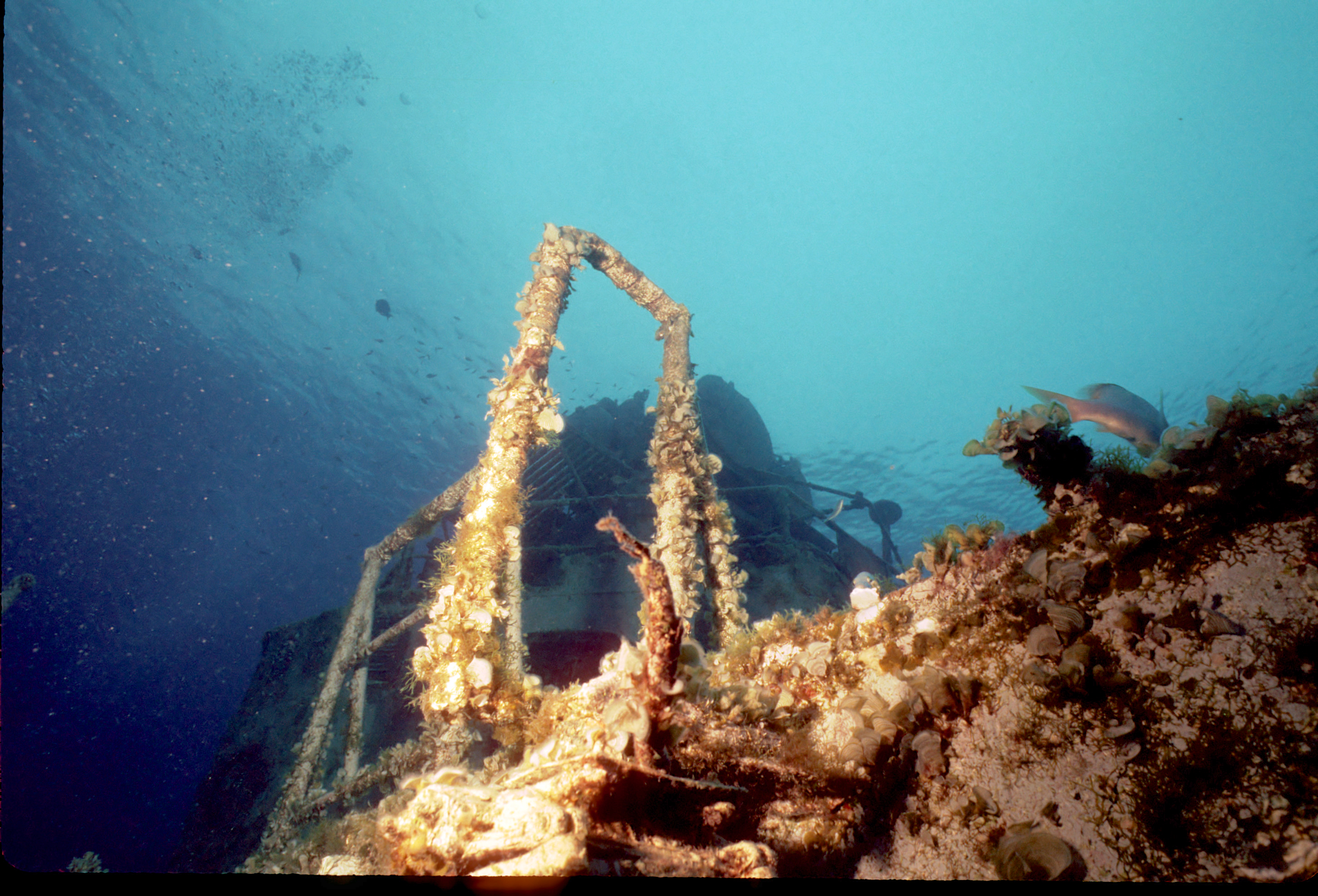Dive buddy Rob Schlamowitz. Nikonos V, 15 mm lens, single Ikelite Ai storbe. Sensia 200 film. This had recently been sunk as a dive site. Very interesting. /hughClick a photo to view or click first photo to see a slide show.