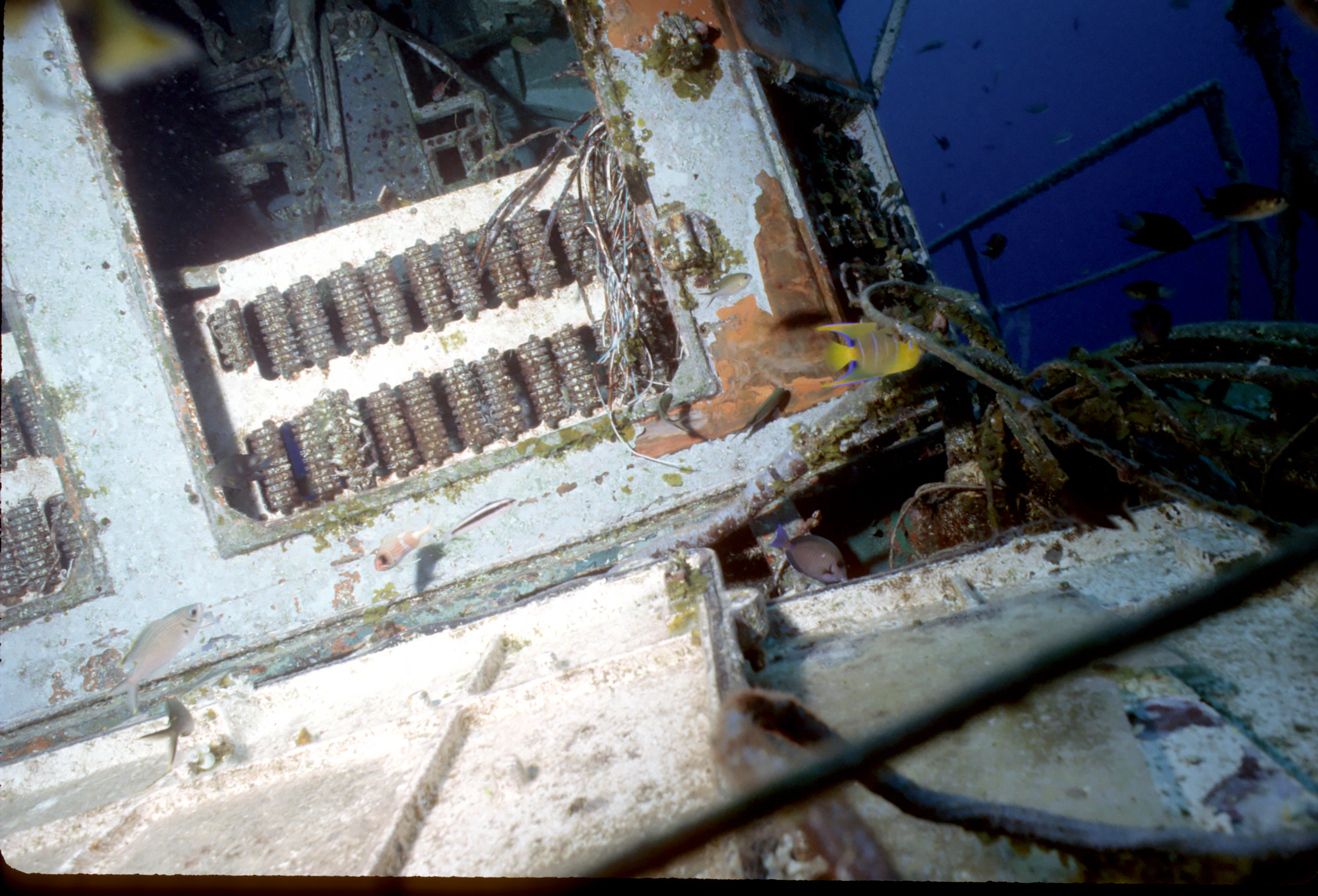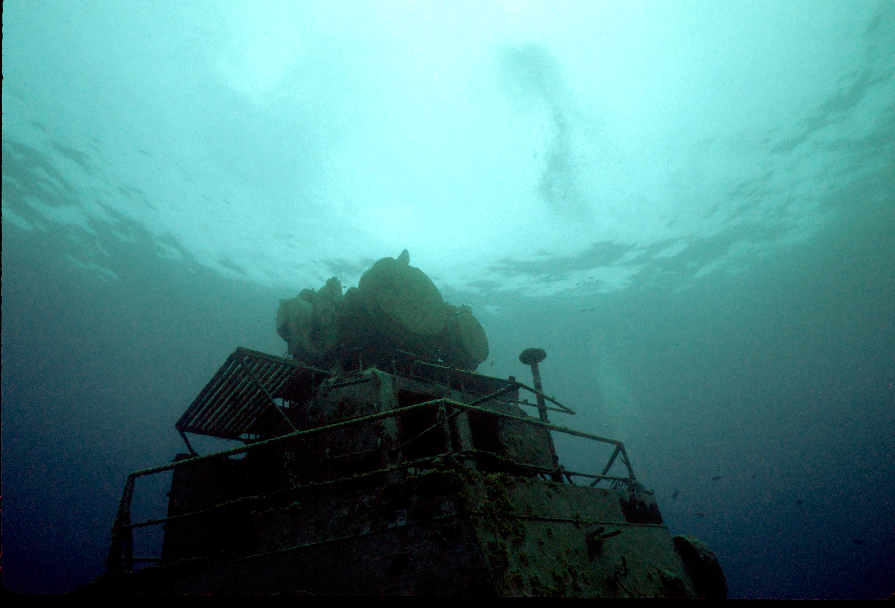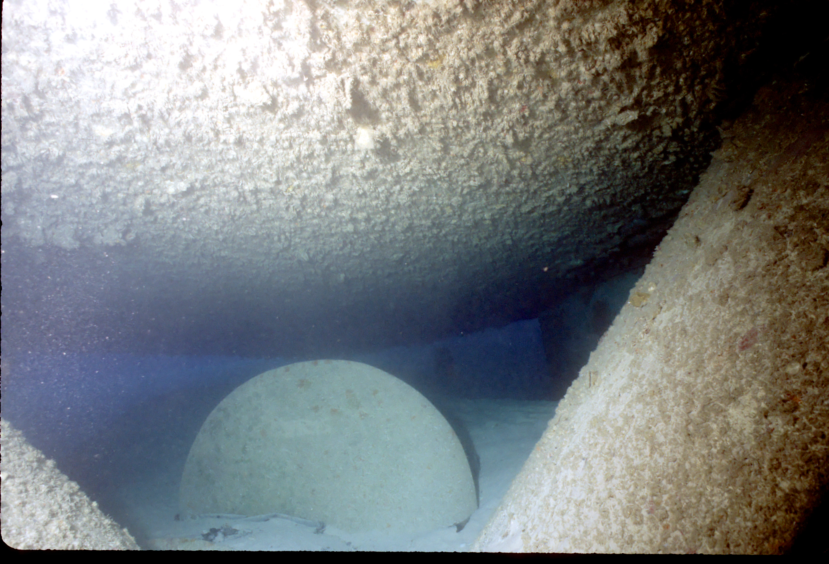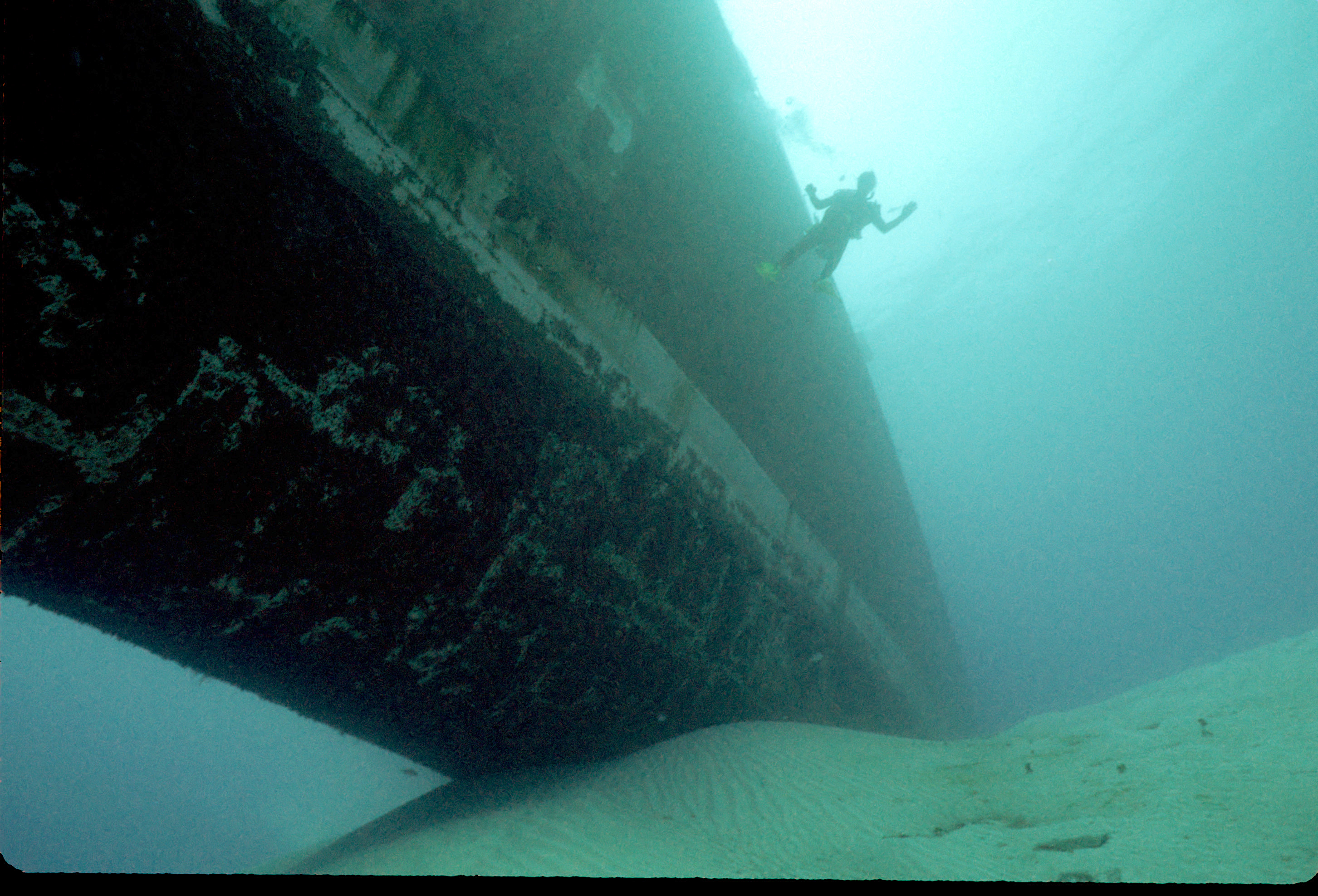 Dive buddy Rob Schlamowitz. Nikonos V, 15 mm lens, single Ikelite Ai storbe. Sensia 200 film. This had recently been sunk as a dive site. Very interesting. /hughClick a photo to view or click first photo to see a slide show.