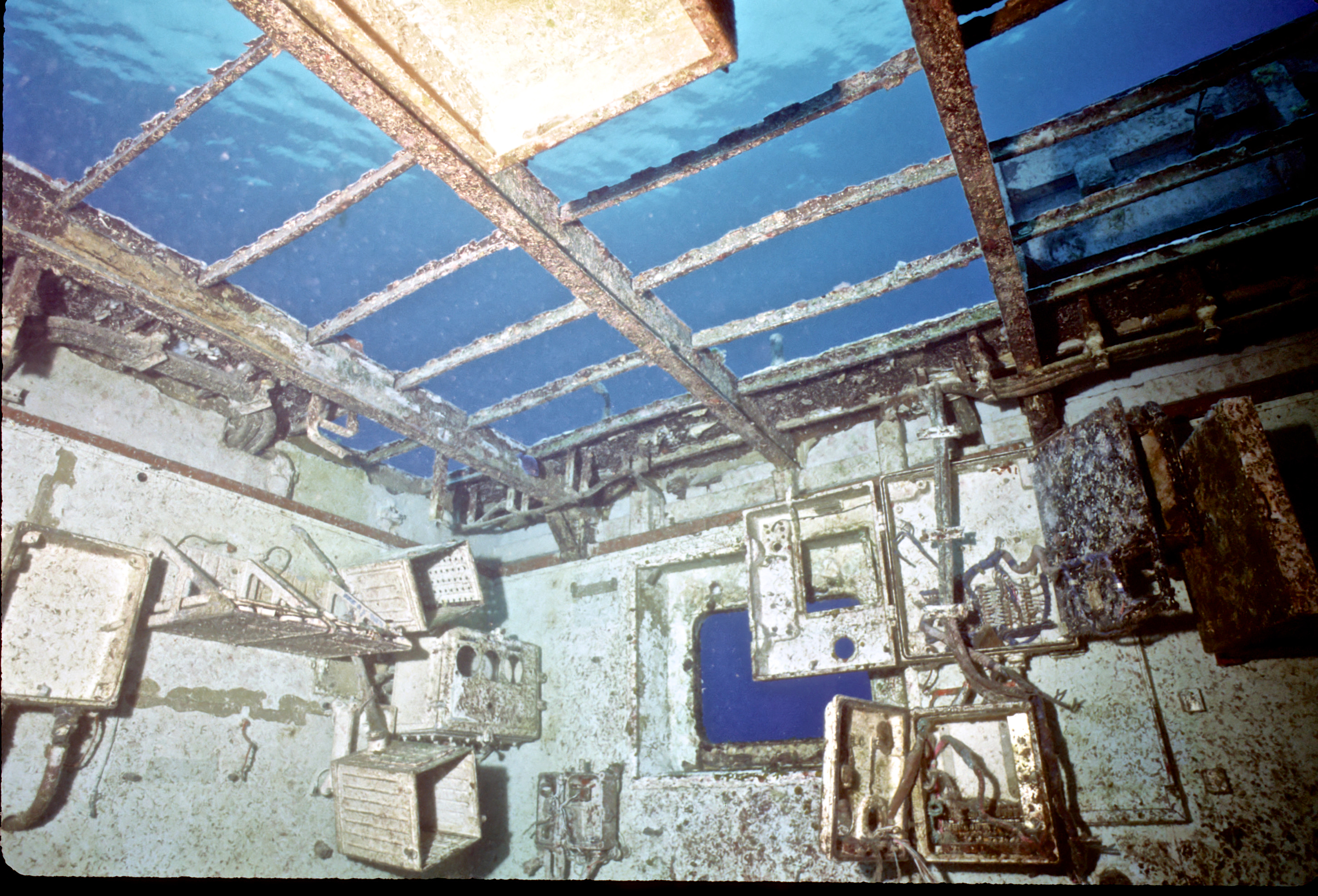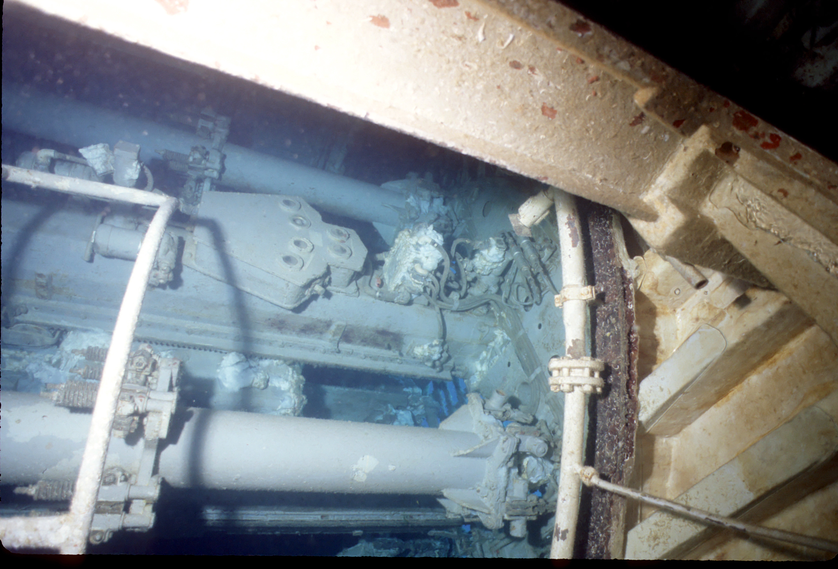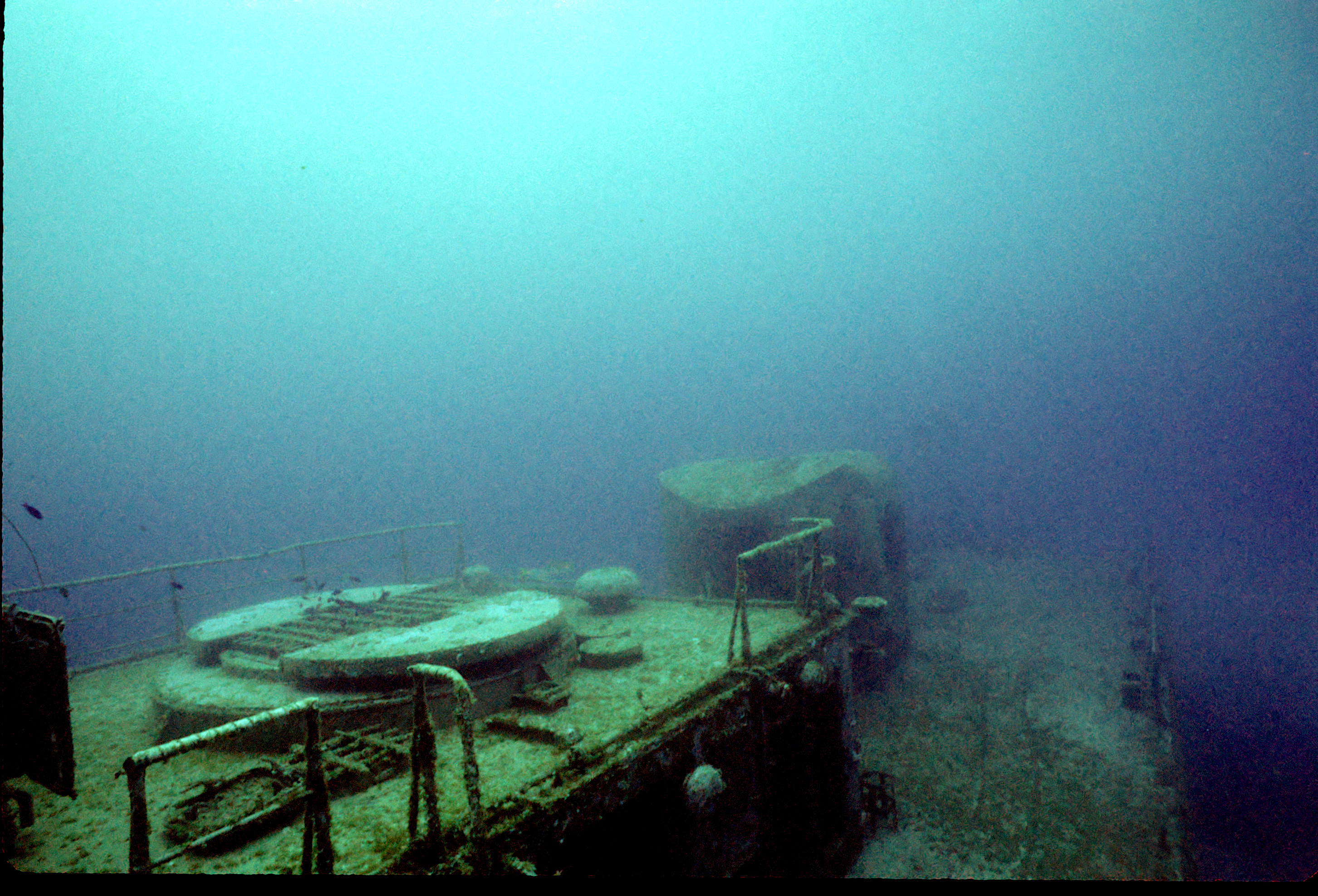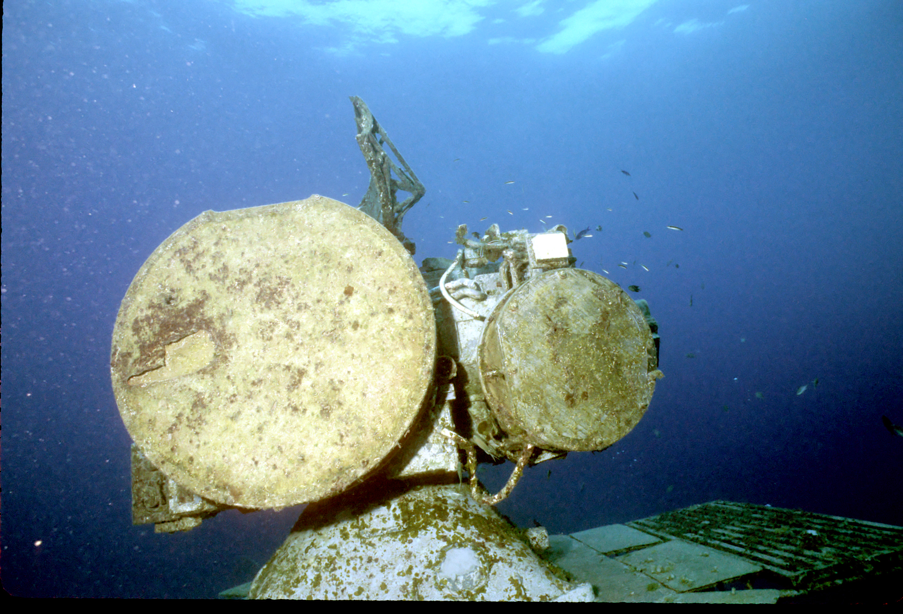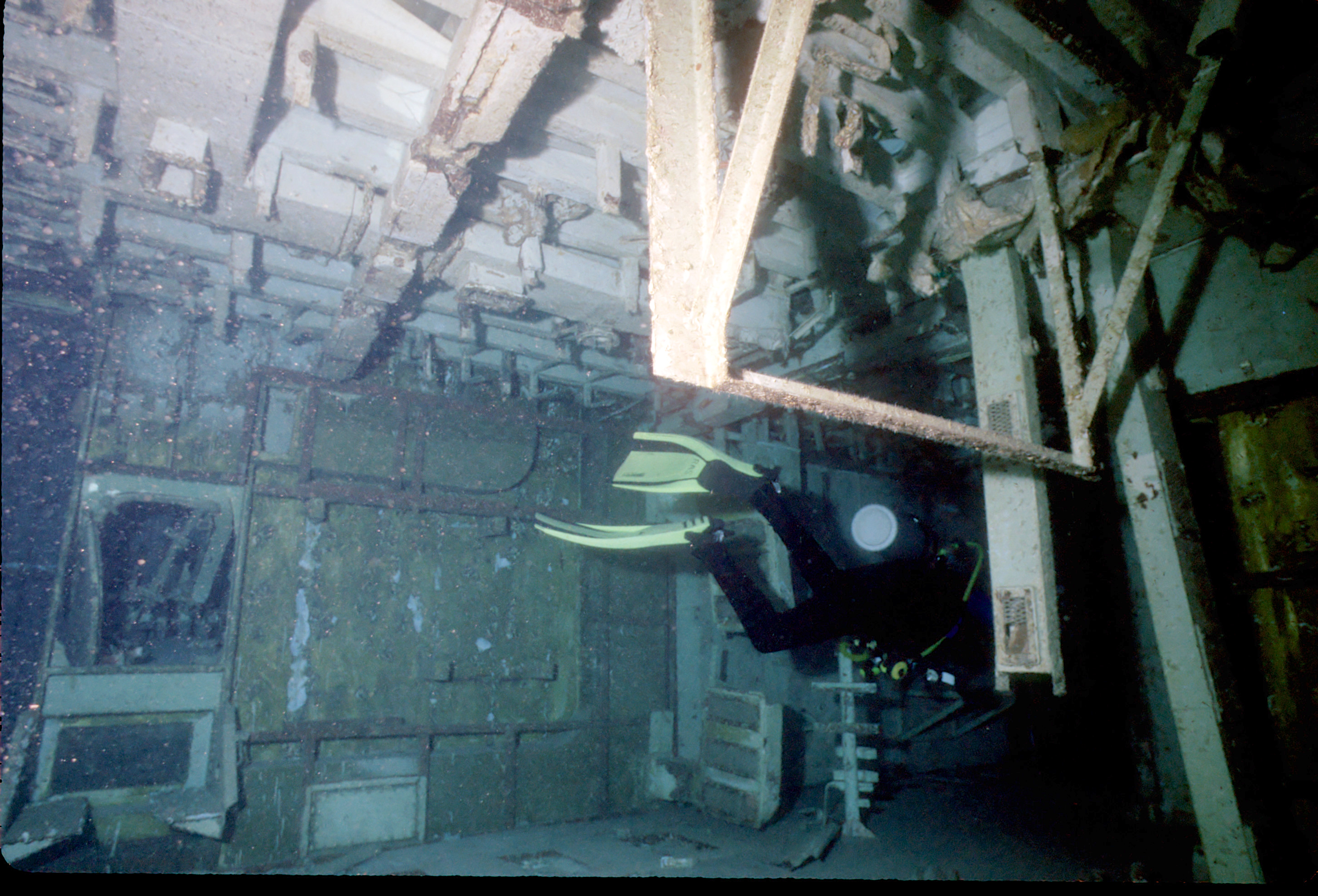 Dive buddy Rob Schlamowitz. Nikonos V, 15 mm lens, single Ikelite Ai storbe. Sensia 200 film. This had recently been sunk as a dive site. Very interesting. /hughClick a photo to view or click first photo to see a slide show.