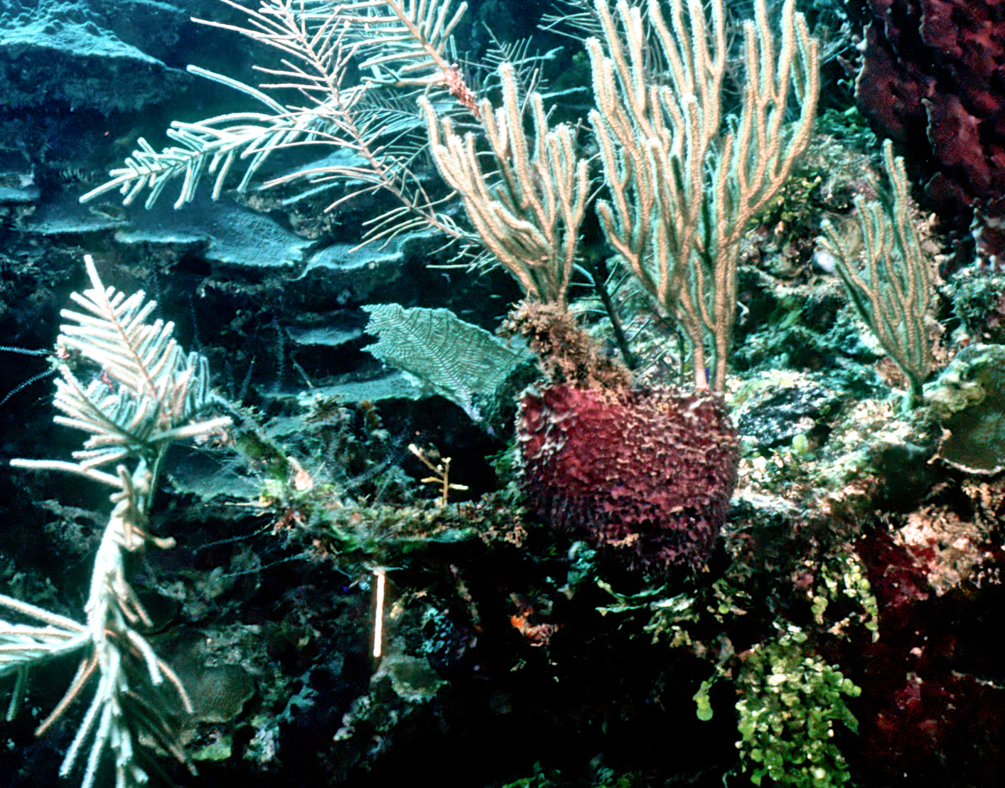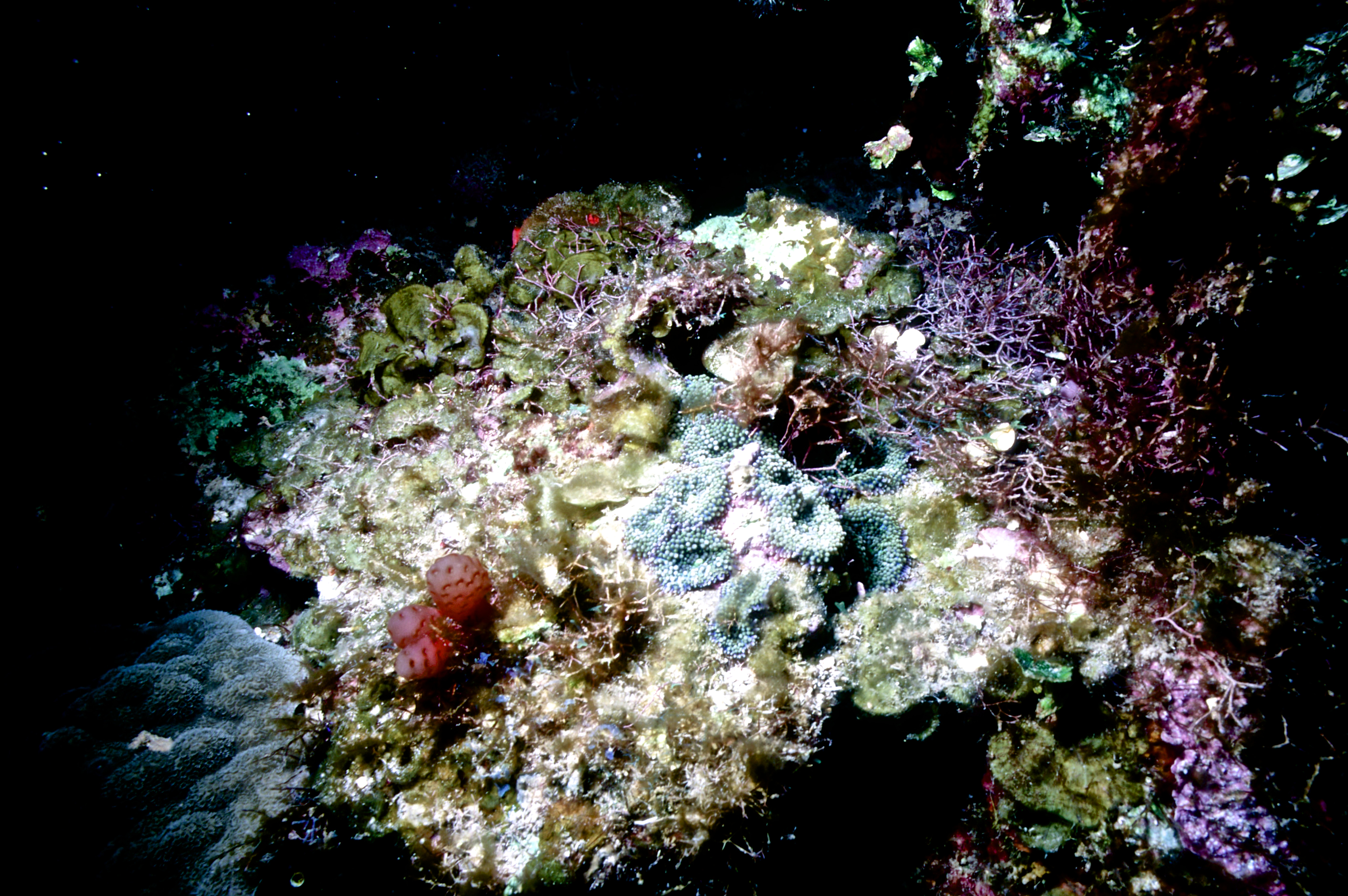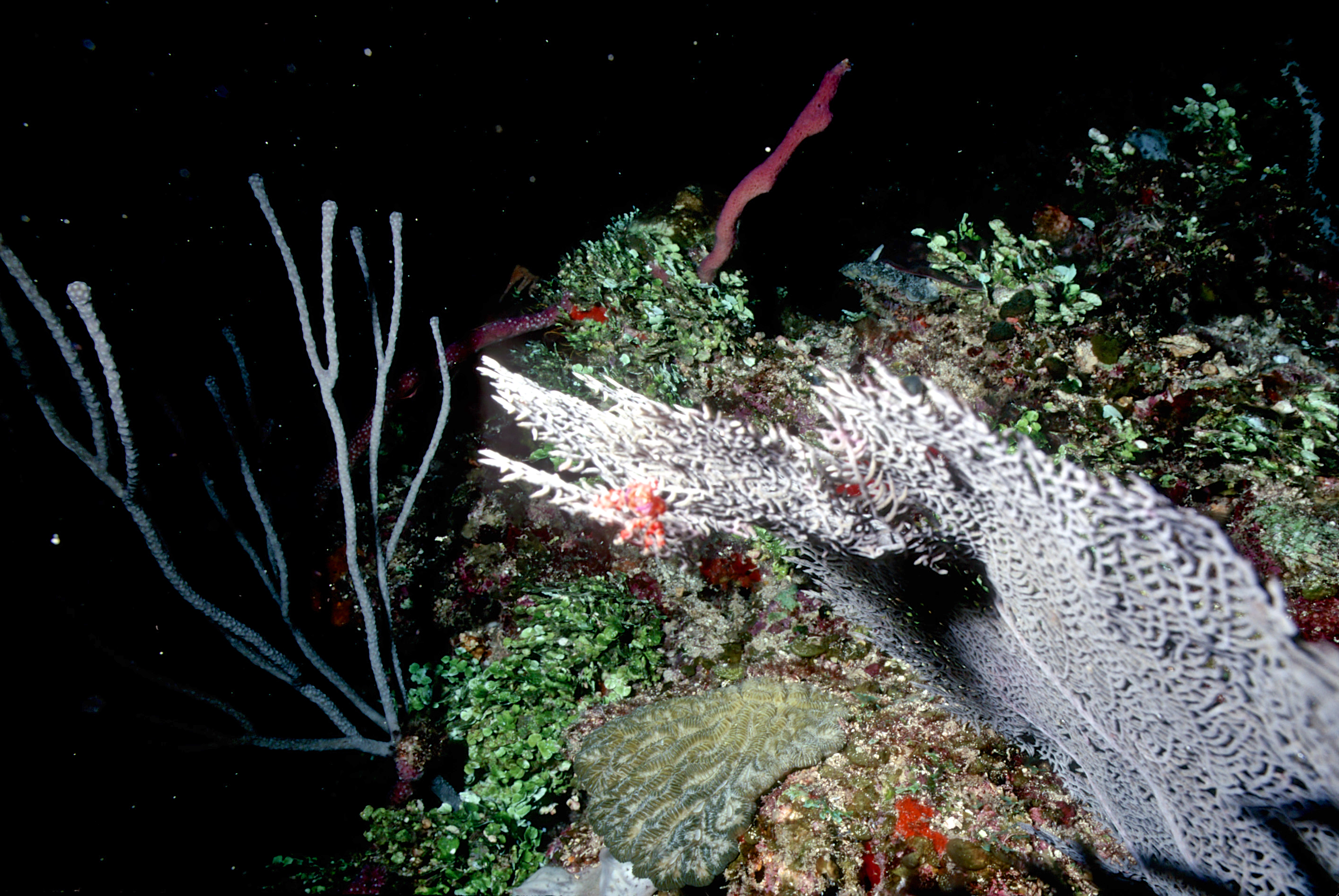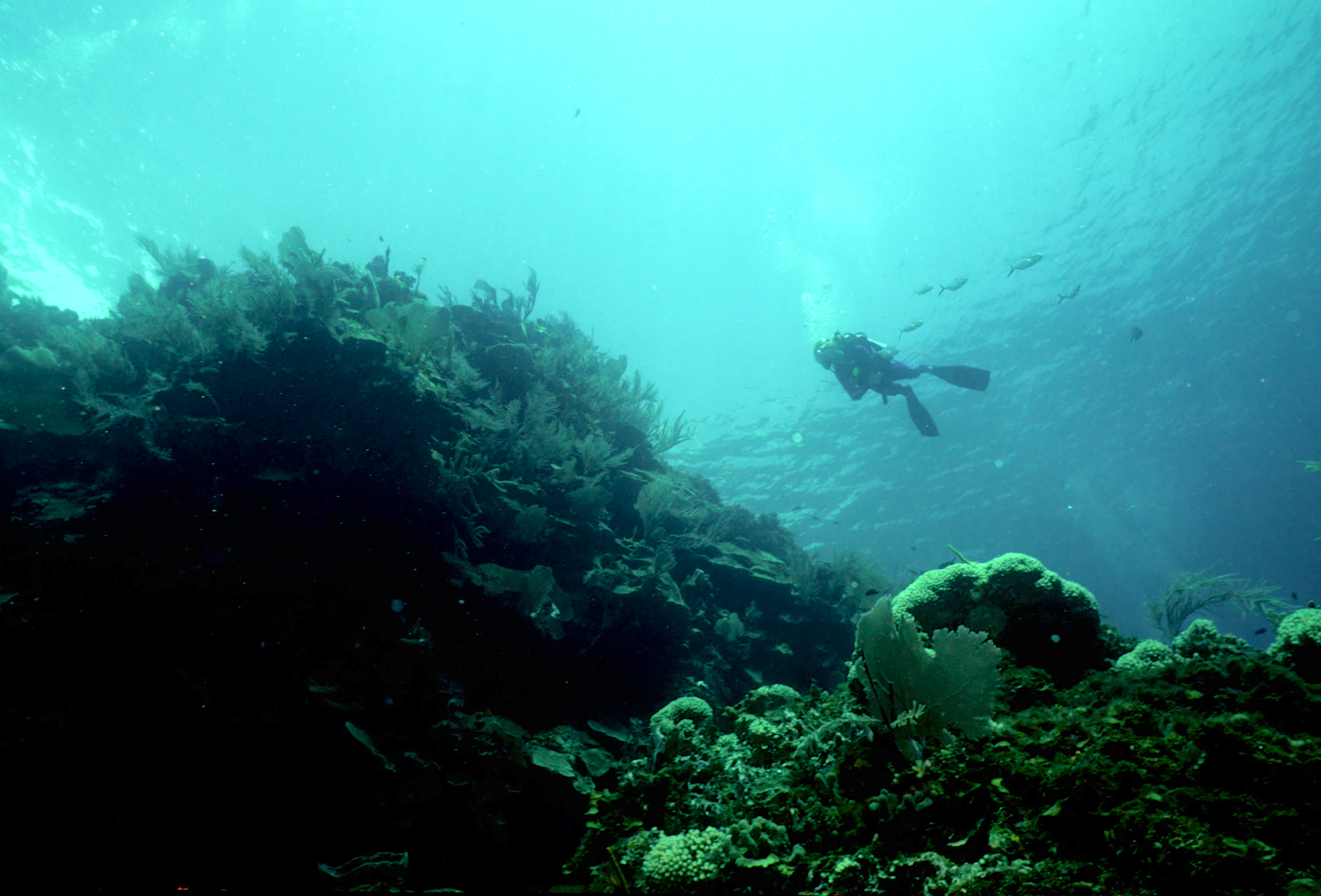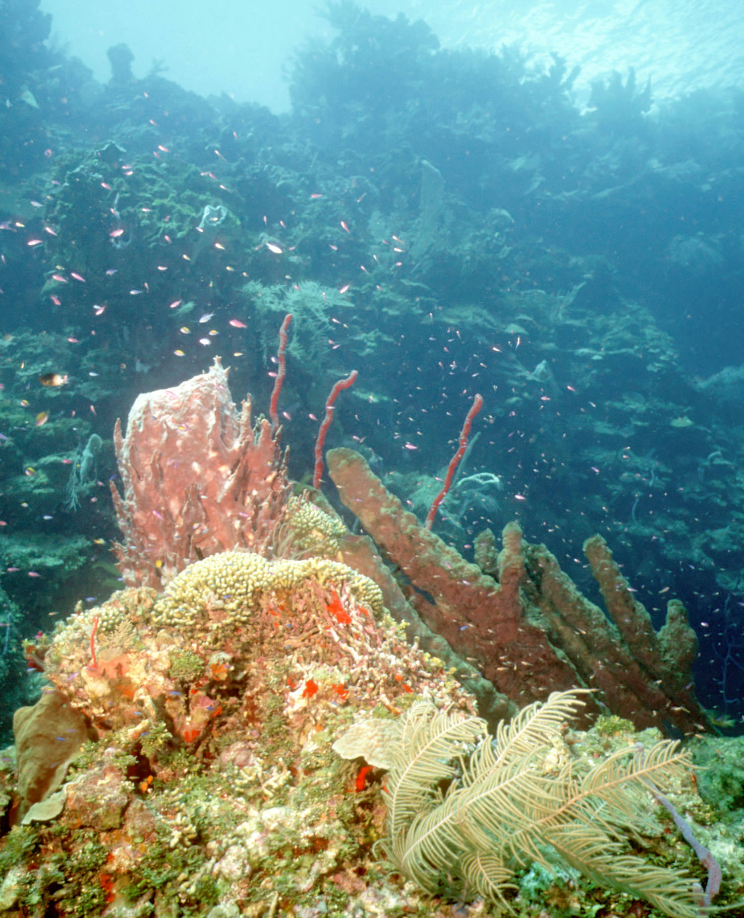 Dive buddies Lori and Trey. Nikonos V, 15 mm lens, single Ikelite Ai storbe. Velvia 50 film. Two dives at this site. We saw a corallimorph and a cleaner shrimp on a vase sponge. A beautiful day! /hugh