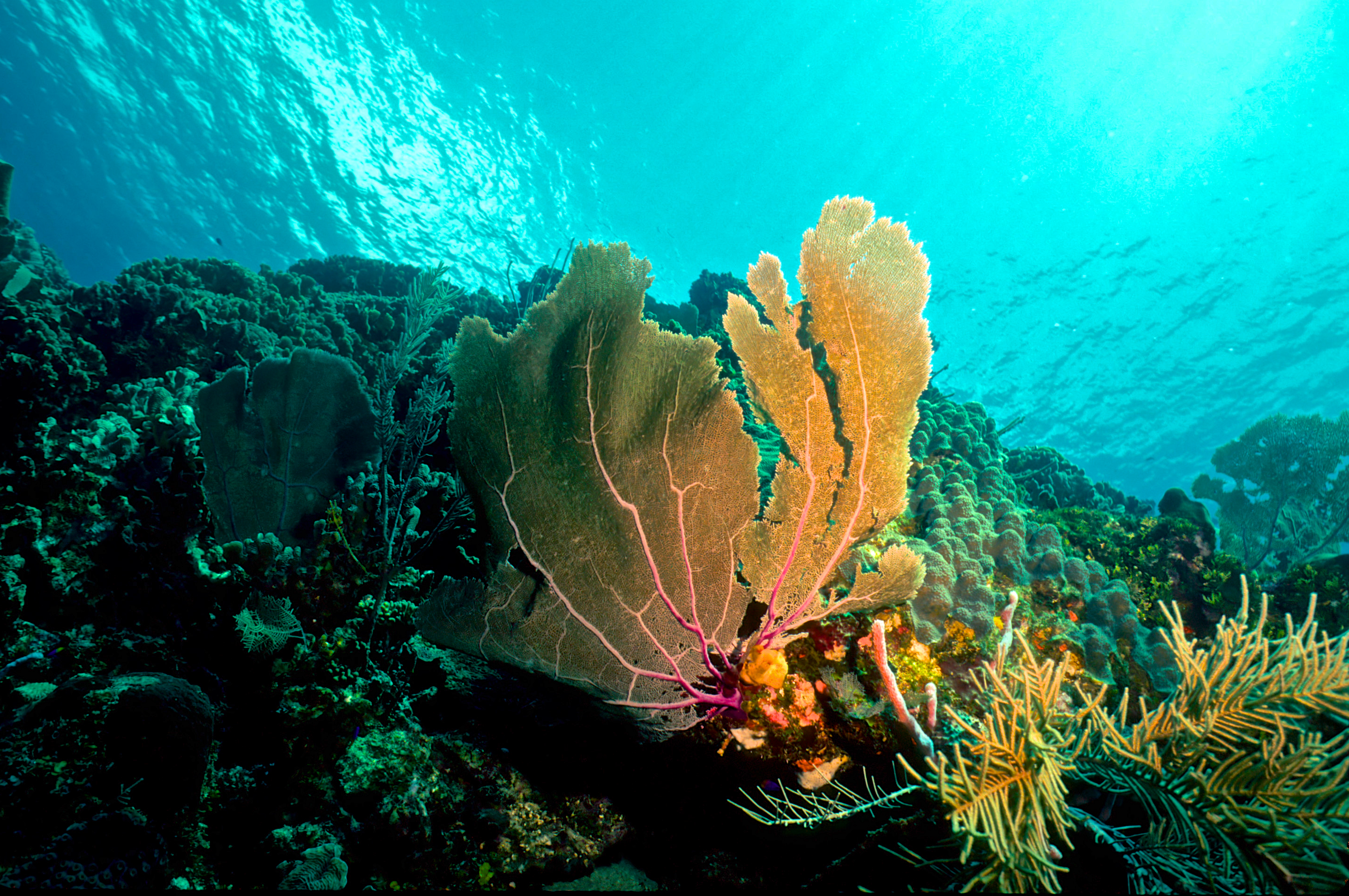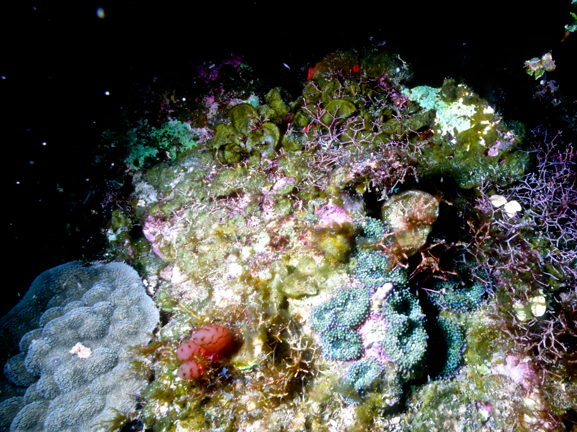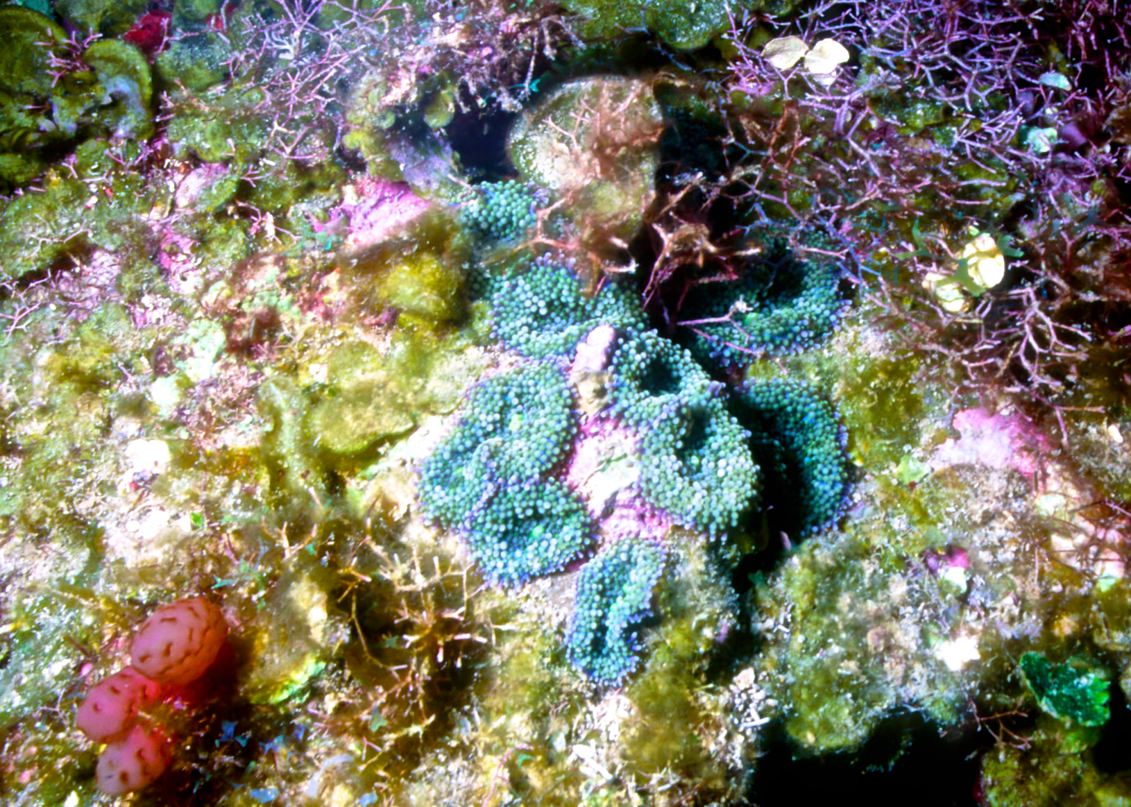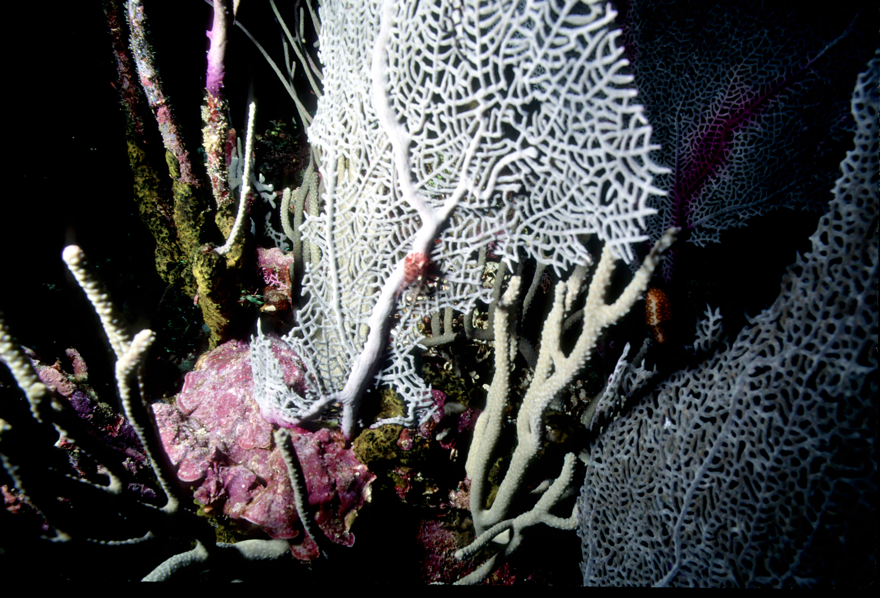 Dive buddies Lori and Trey. Nikonos V, 15 mm lens, single Ikelite Ai storbe. Velvia 50 film. Two dives at this site. We saw a corallimorph and a cleaner shrimp on a vase sponge. A beautiful day! /hugh