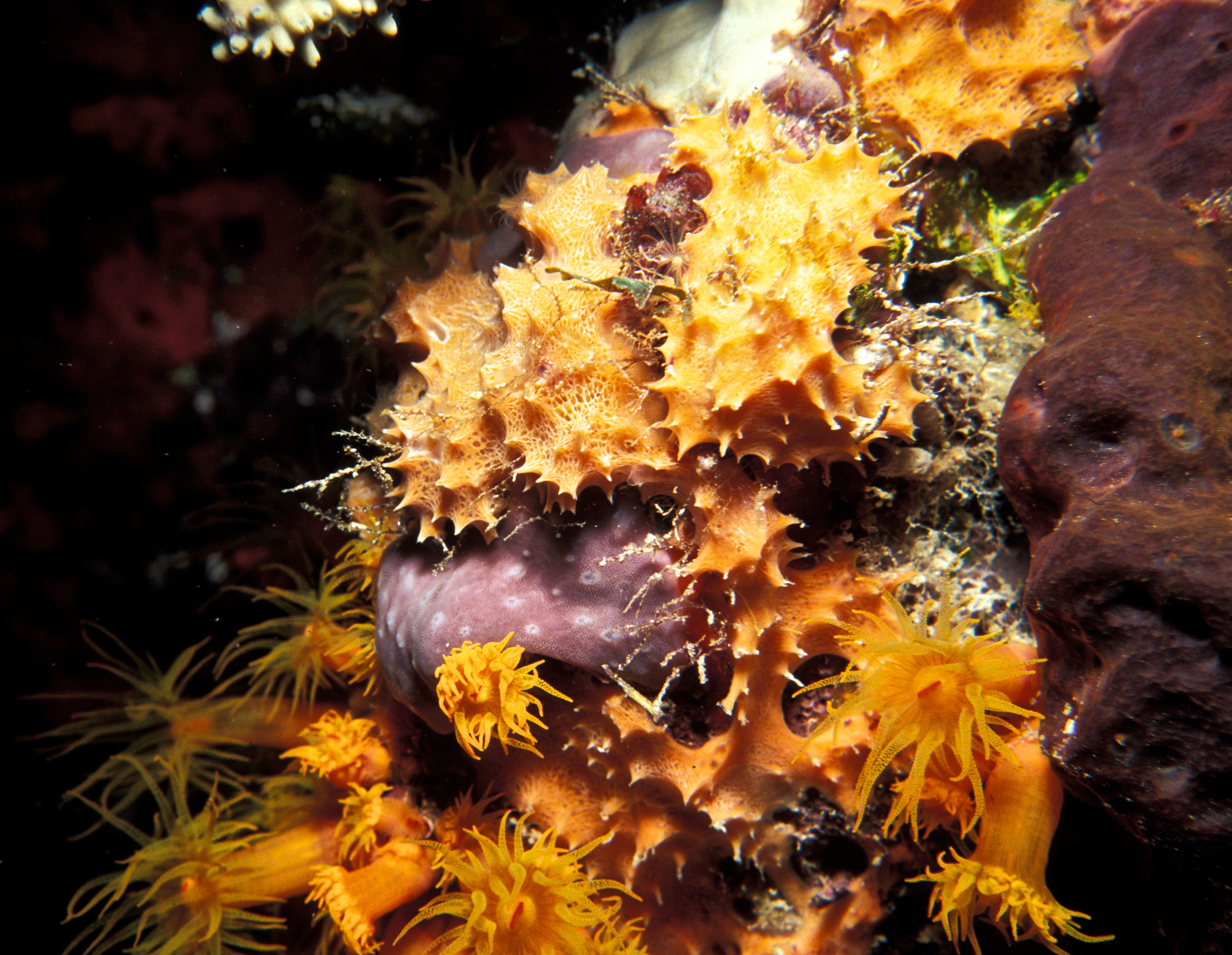 Dive # , Nikonos V closeup framer, Ikelite Ai strobe, dive buddies, Susan, Trey, and Lori. This may have been Trey’s first night dive. We saw tubestra coral polyps extended and basket stars. Lori used the Nikonos V with framer and I used Nikon N70 with 105mm 2.8D macro lens but couldn't autofocus well. 37ft, 104min. /hughClick a photo to view or click first photo to see a slide show.
