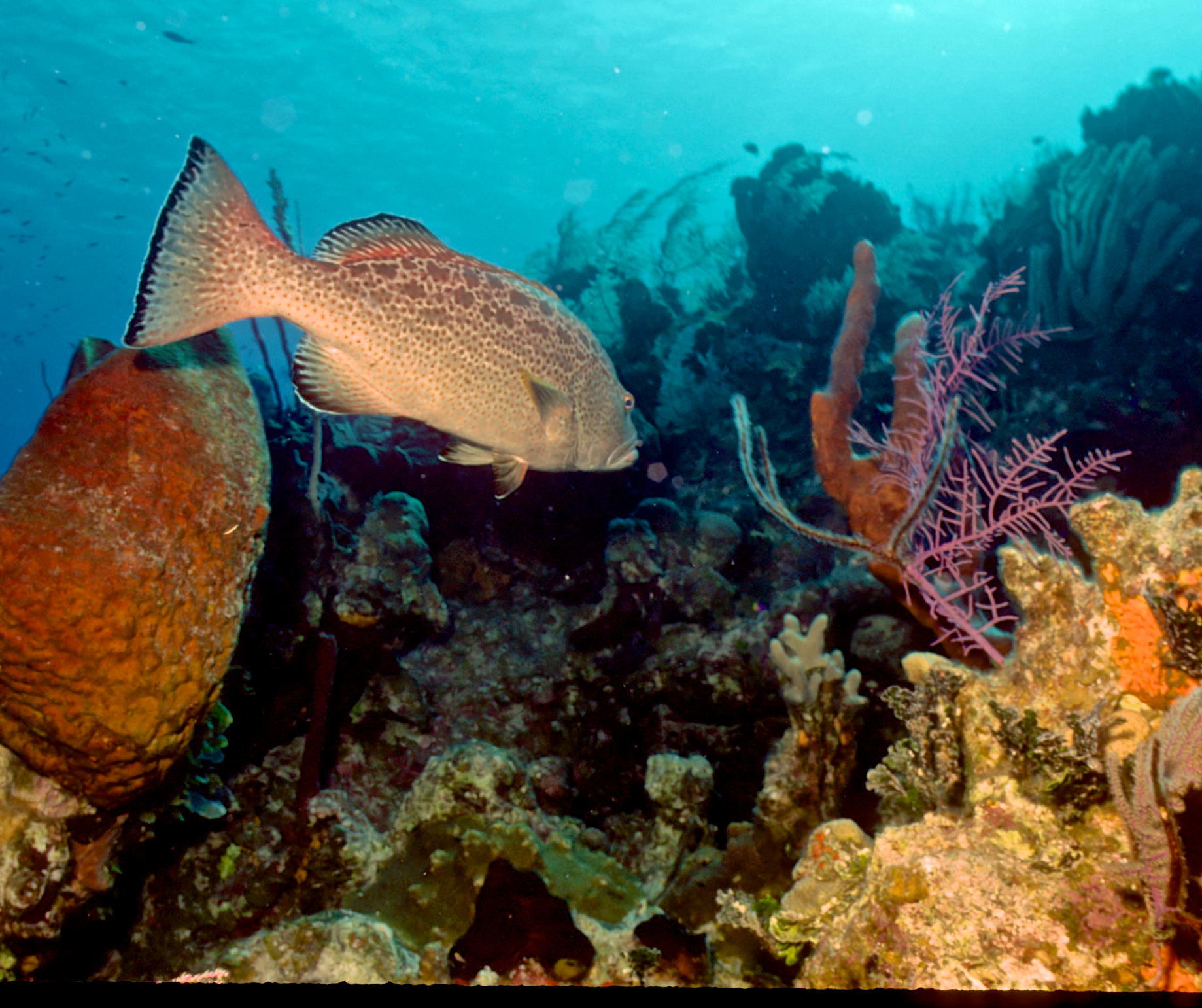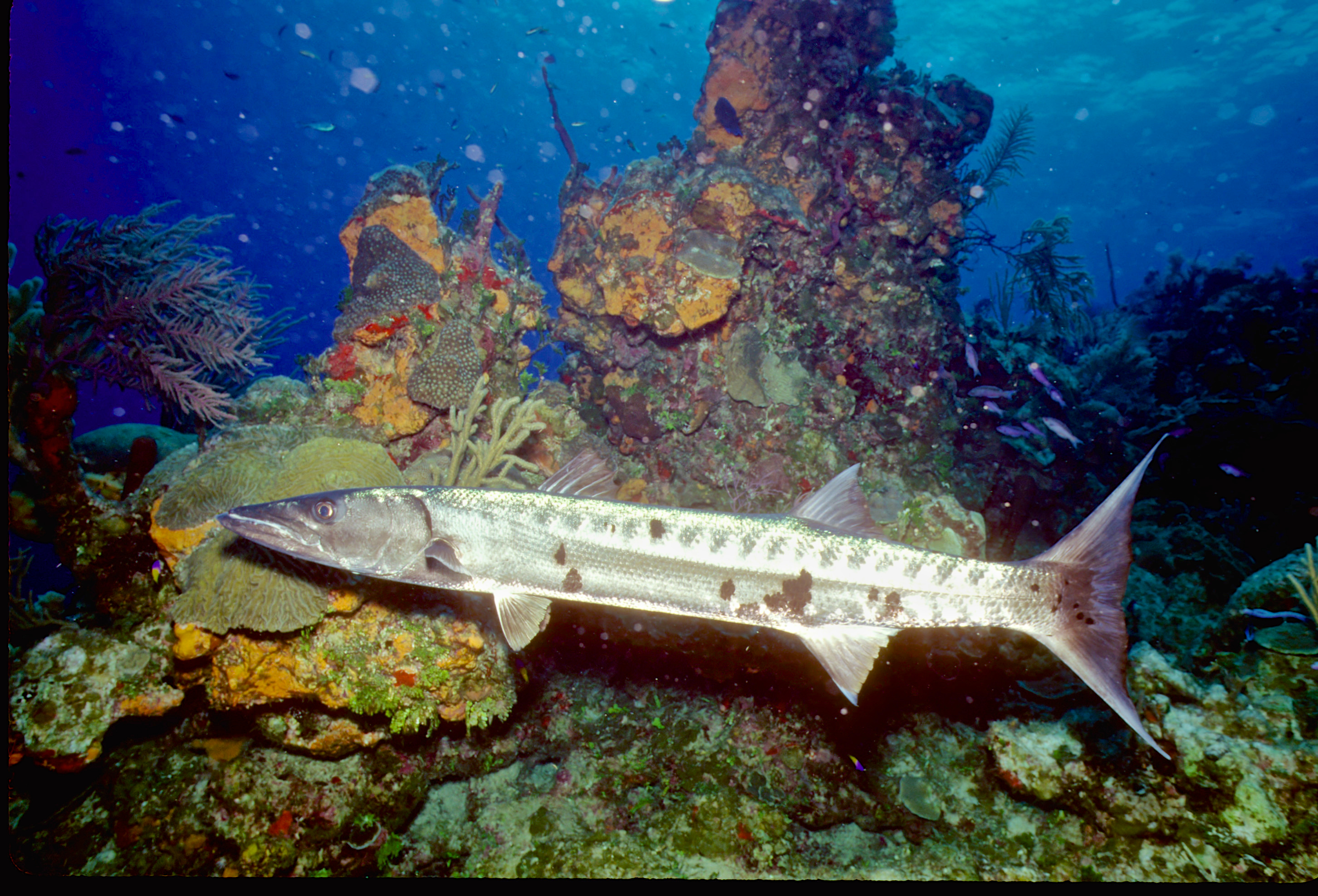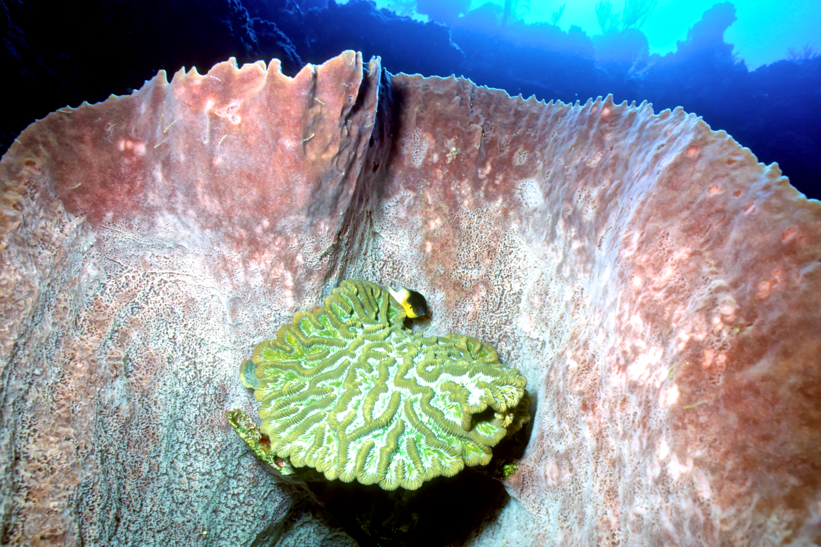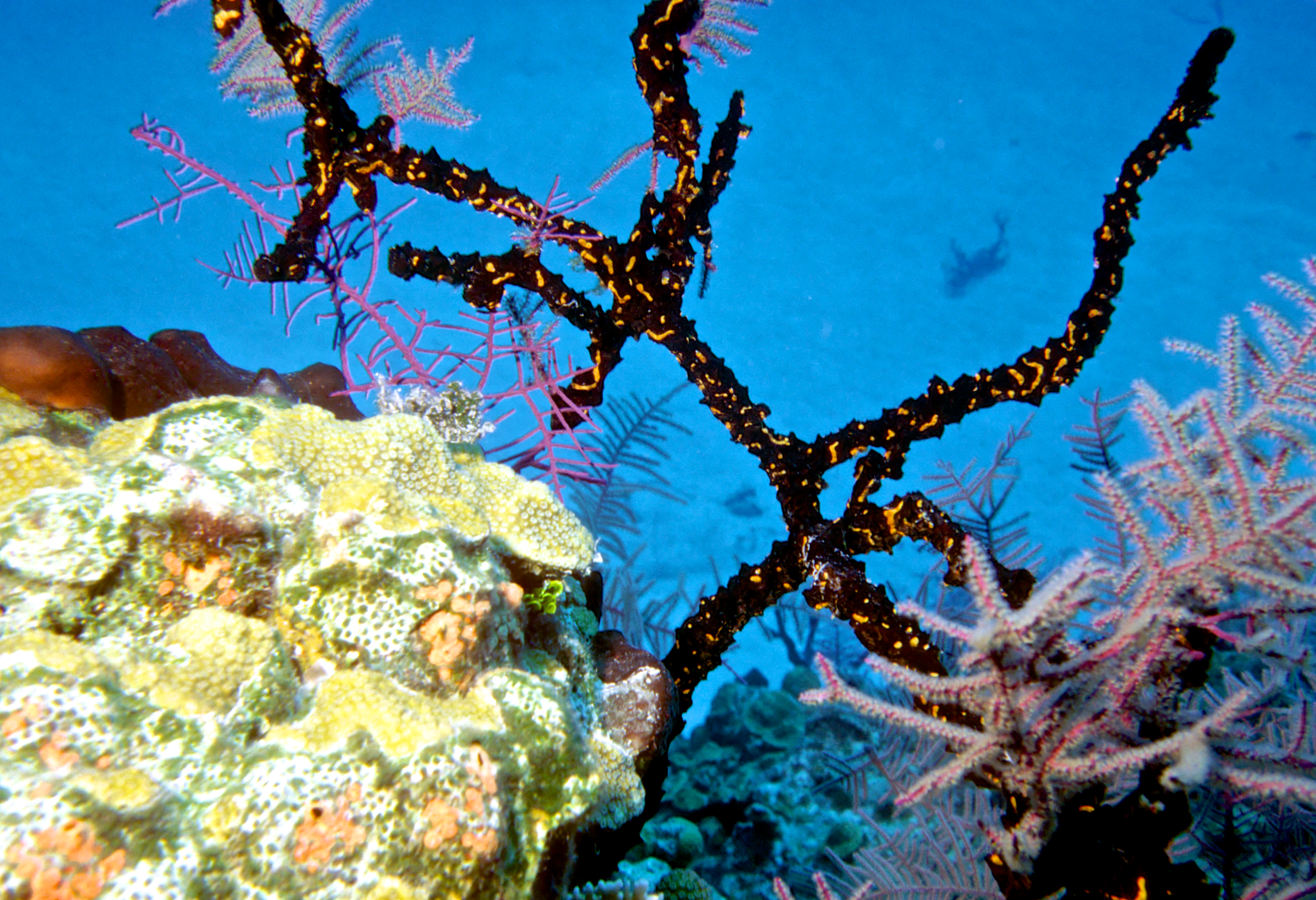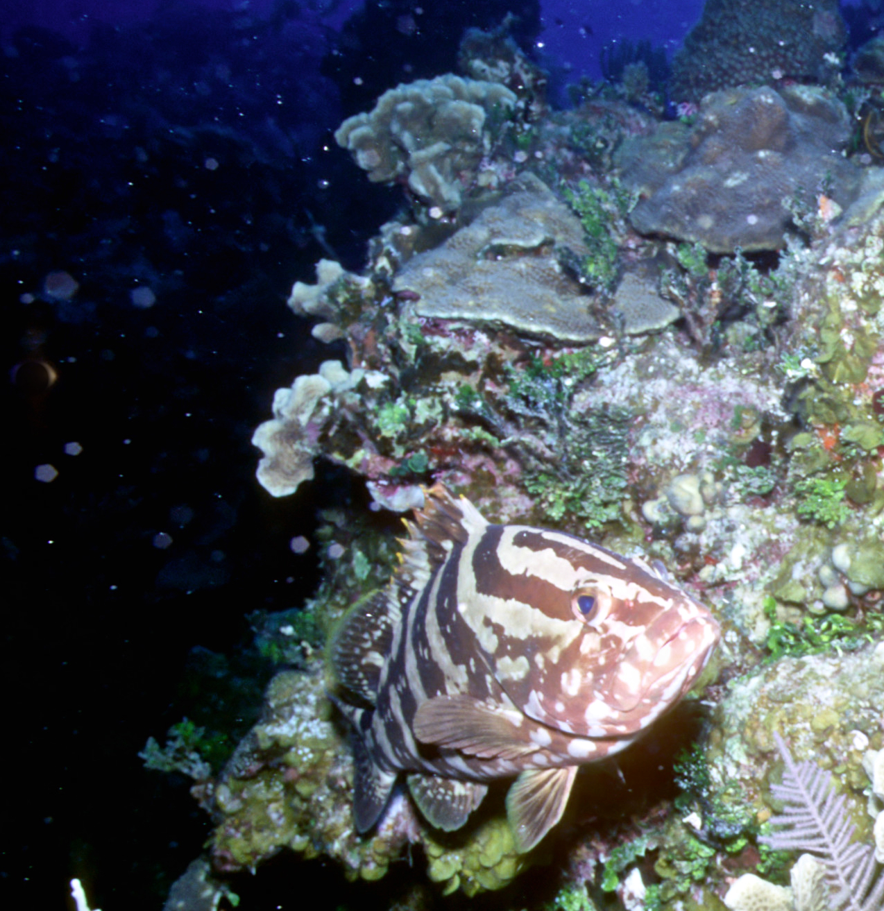 Dive # 93, Nikonos V, 15mm lens closeup, Fujichrome Sensia 100 slide film, dive buddies Herb Seegers and Lori. We saw a lot of garden eels in the sand and found a large vase sponge with coral growing on the inside. 89ft, 40min. Pinnacle and wall dive. /hughClick a photo to view or click first photo to see a slide show.