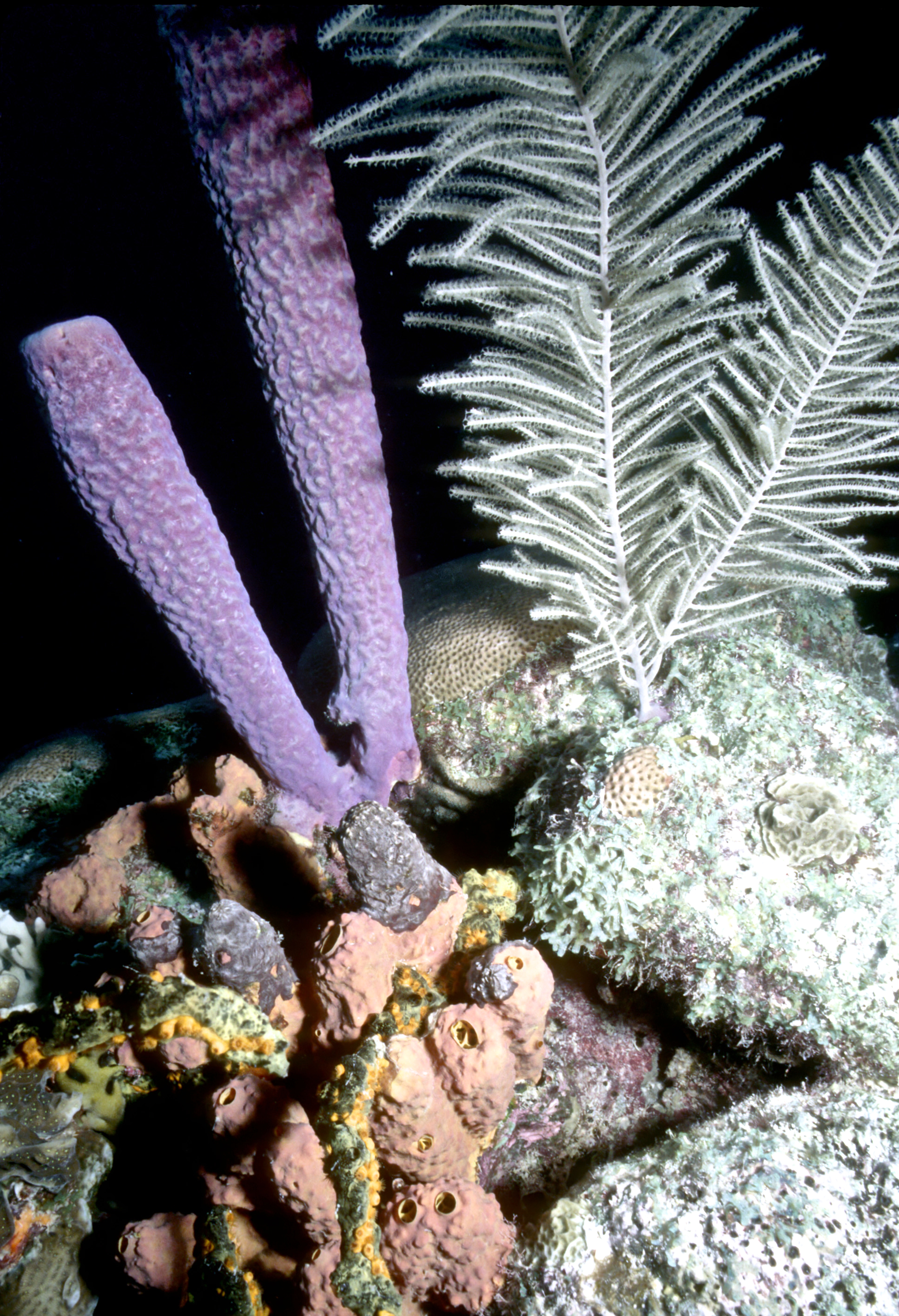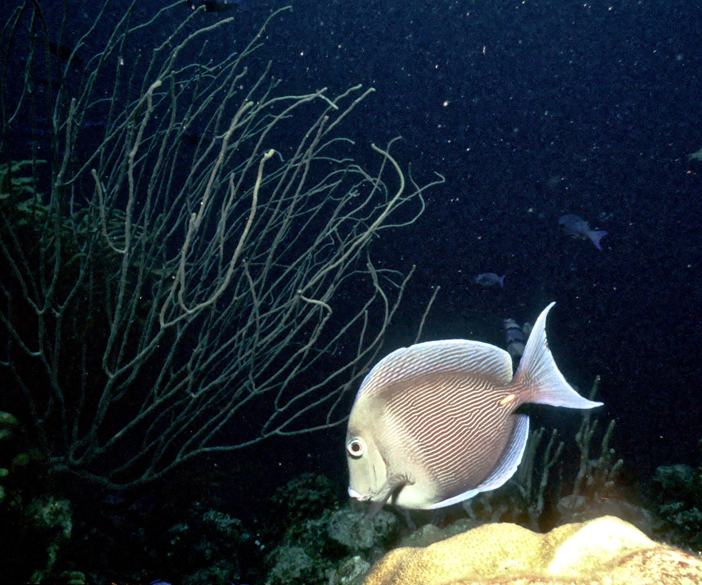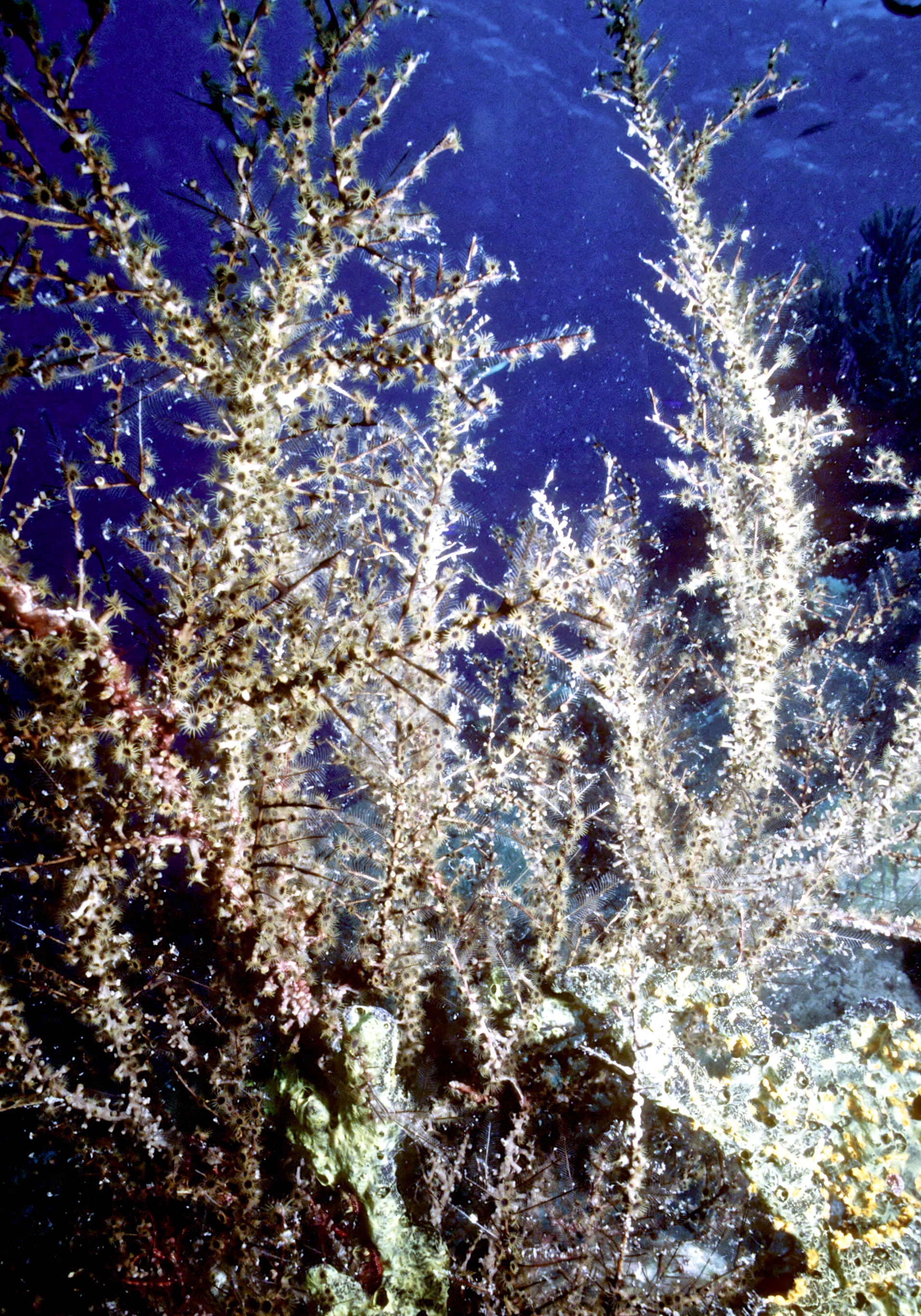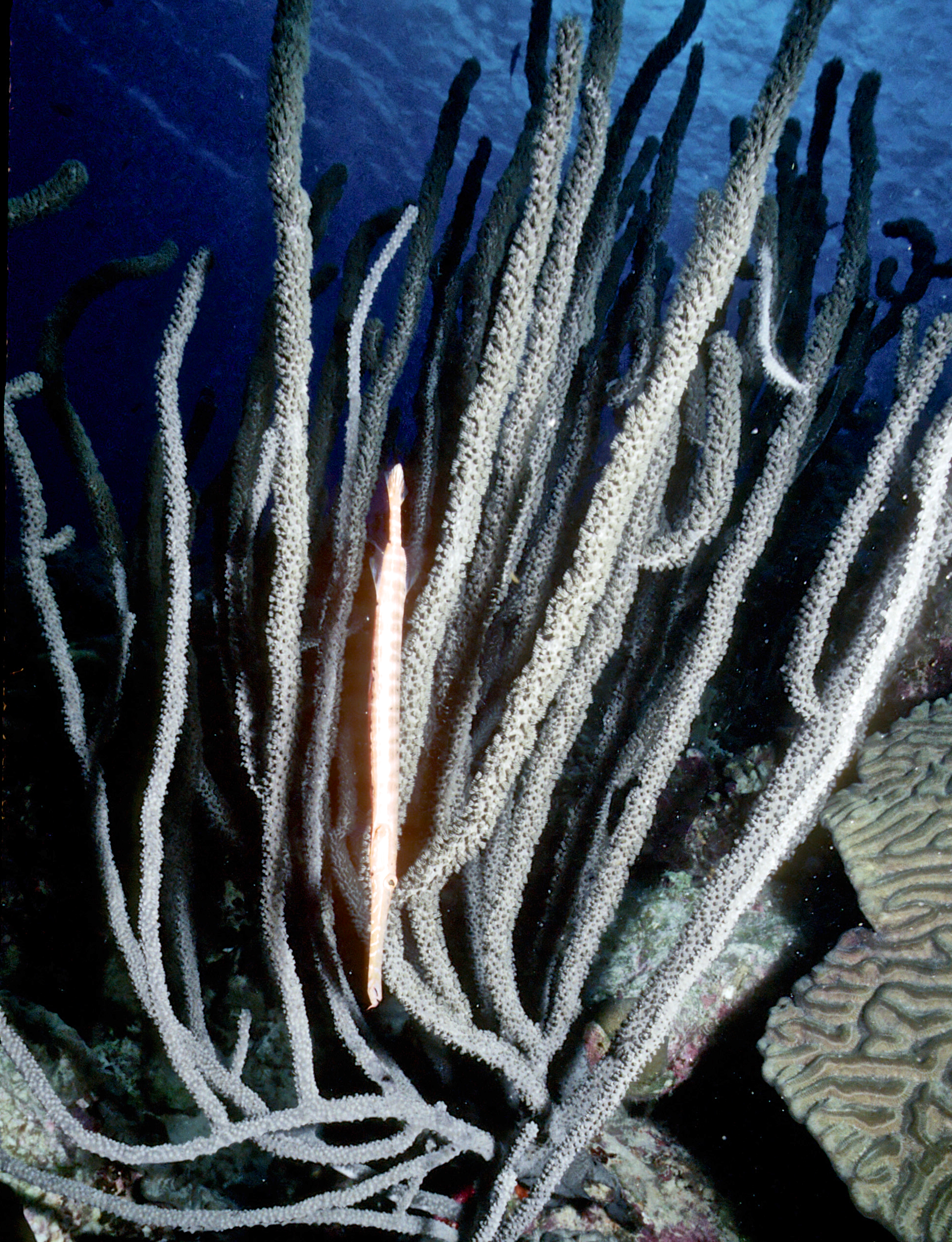 Dive # 144, Nikonos V camera, Nikonos 15mm lens, Ikelite Ai strobe, Fujichrome Sensia 100 slide film, closeup settings, dive buddies Trey & Lori. We love diving in Klein Bonaire. Here we saw bryazoa, black coral, and a trumpet fish. 57ft, 53min. /hughClick a photo to view or click first photo to see a slide show.