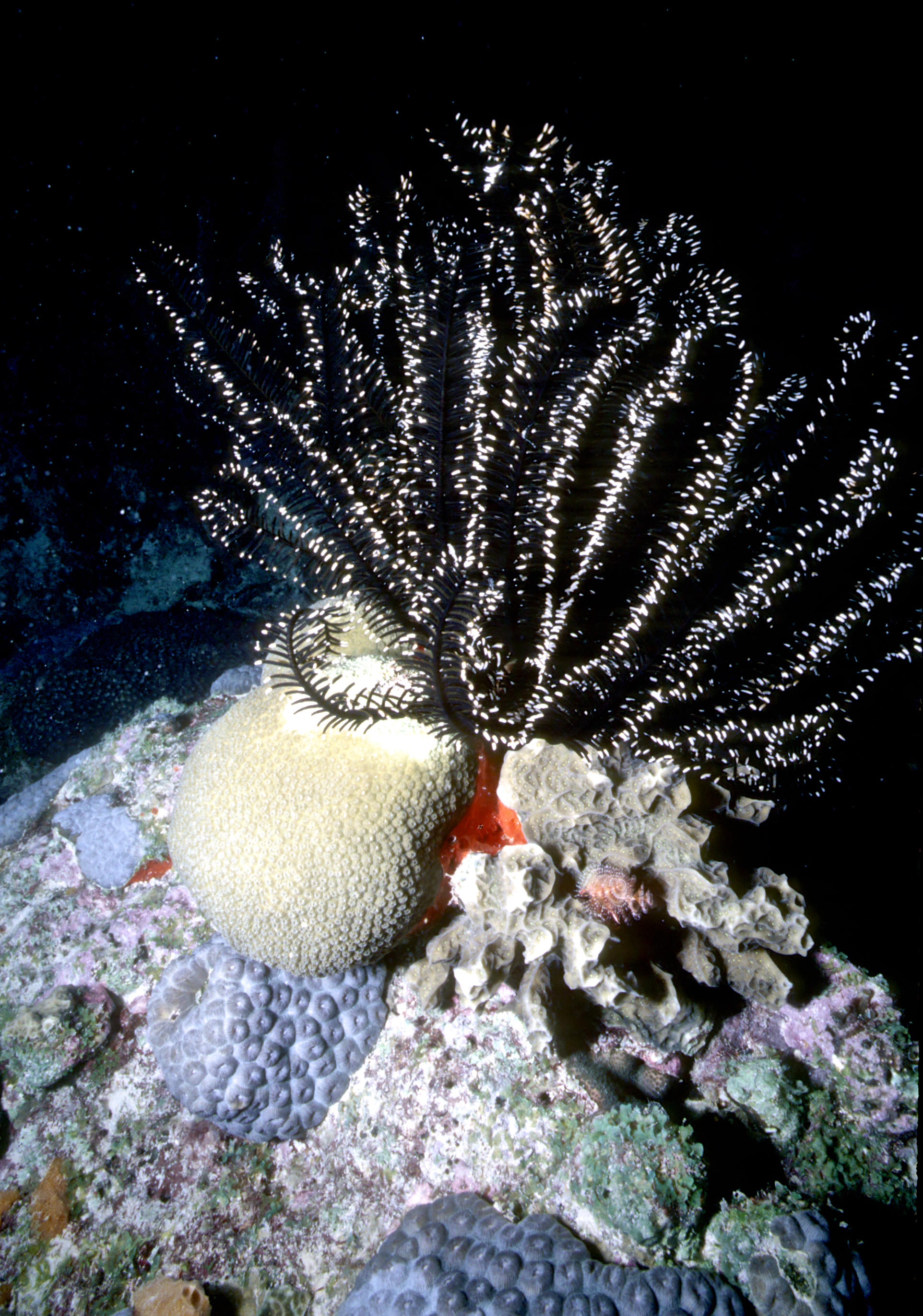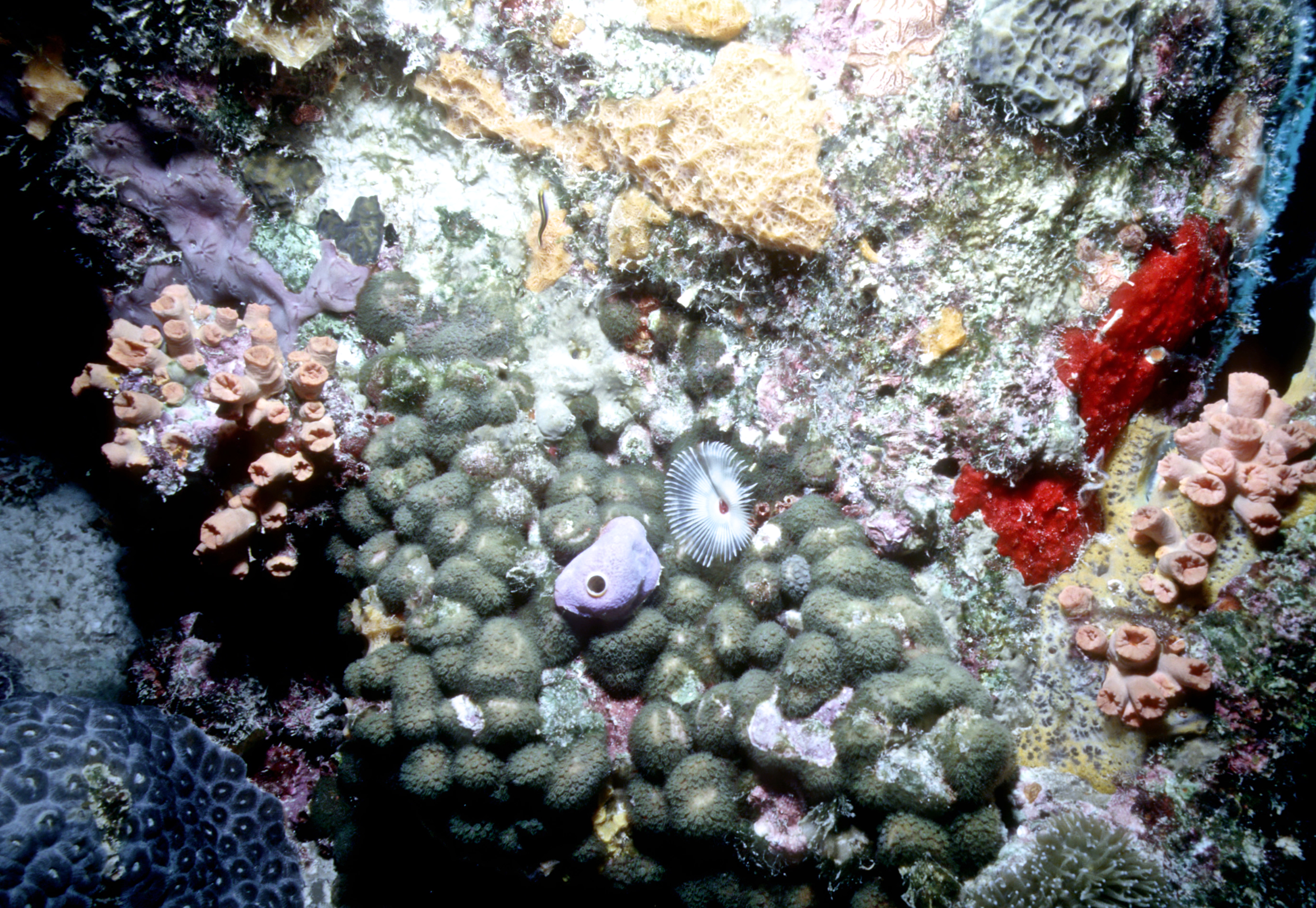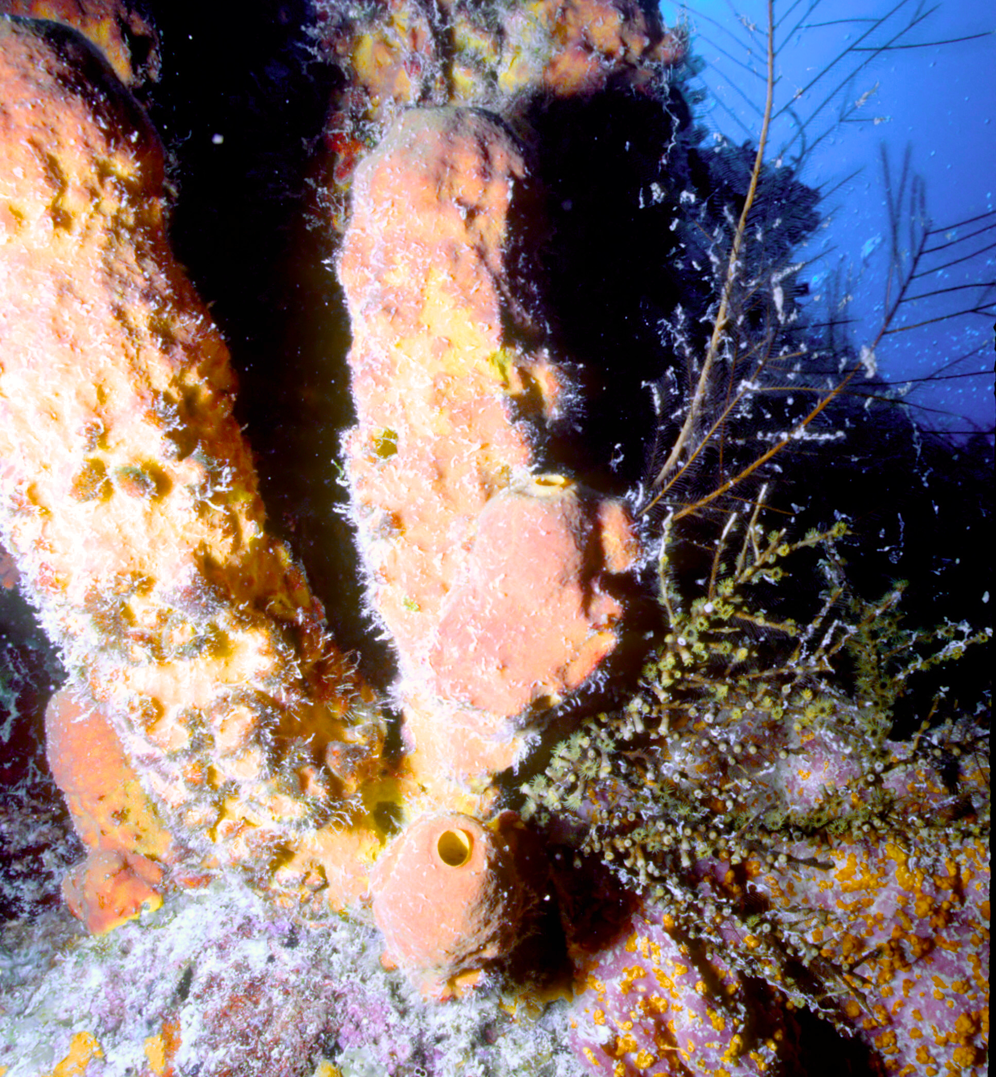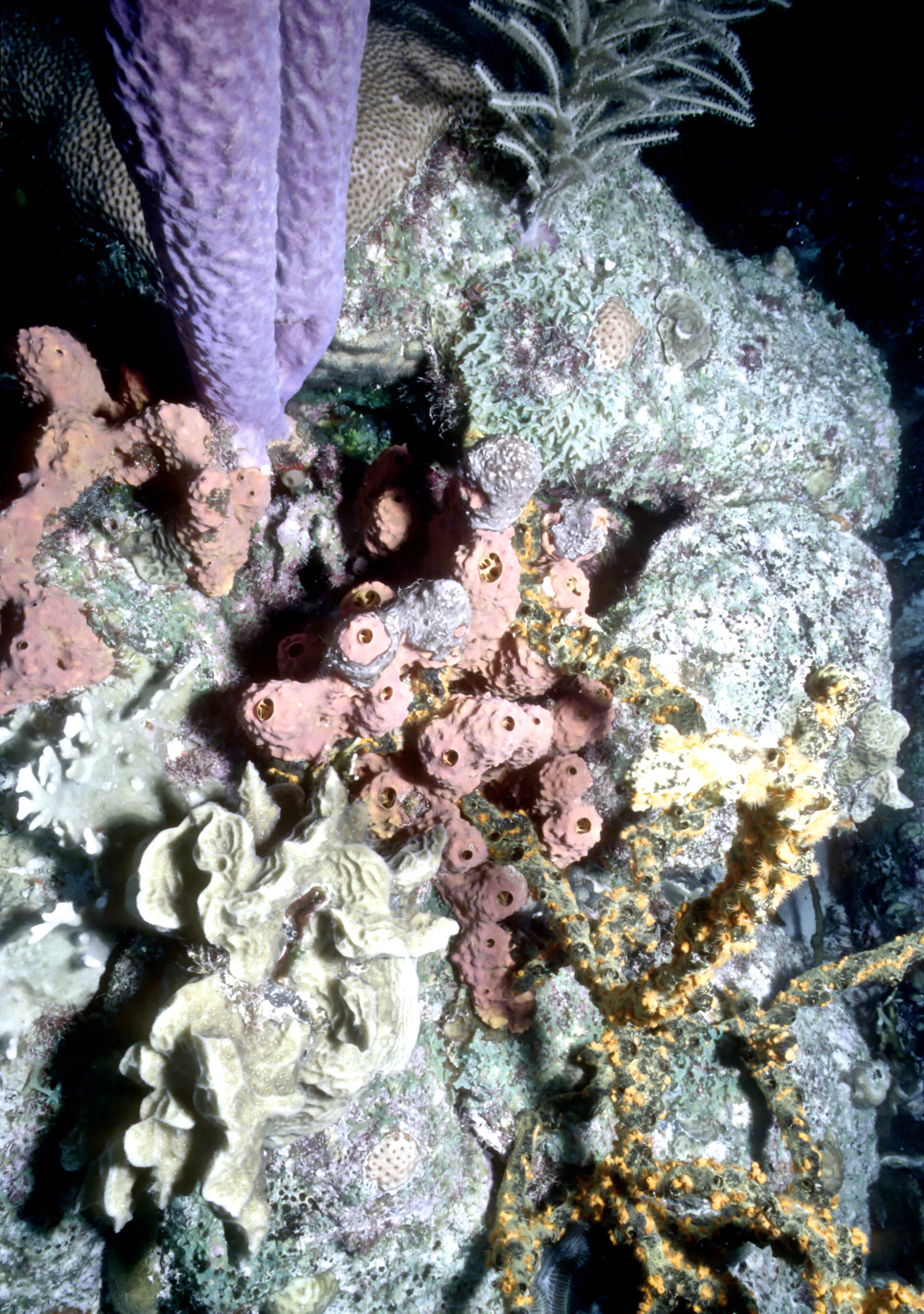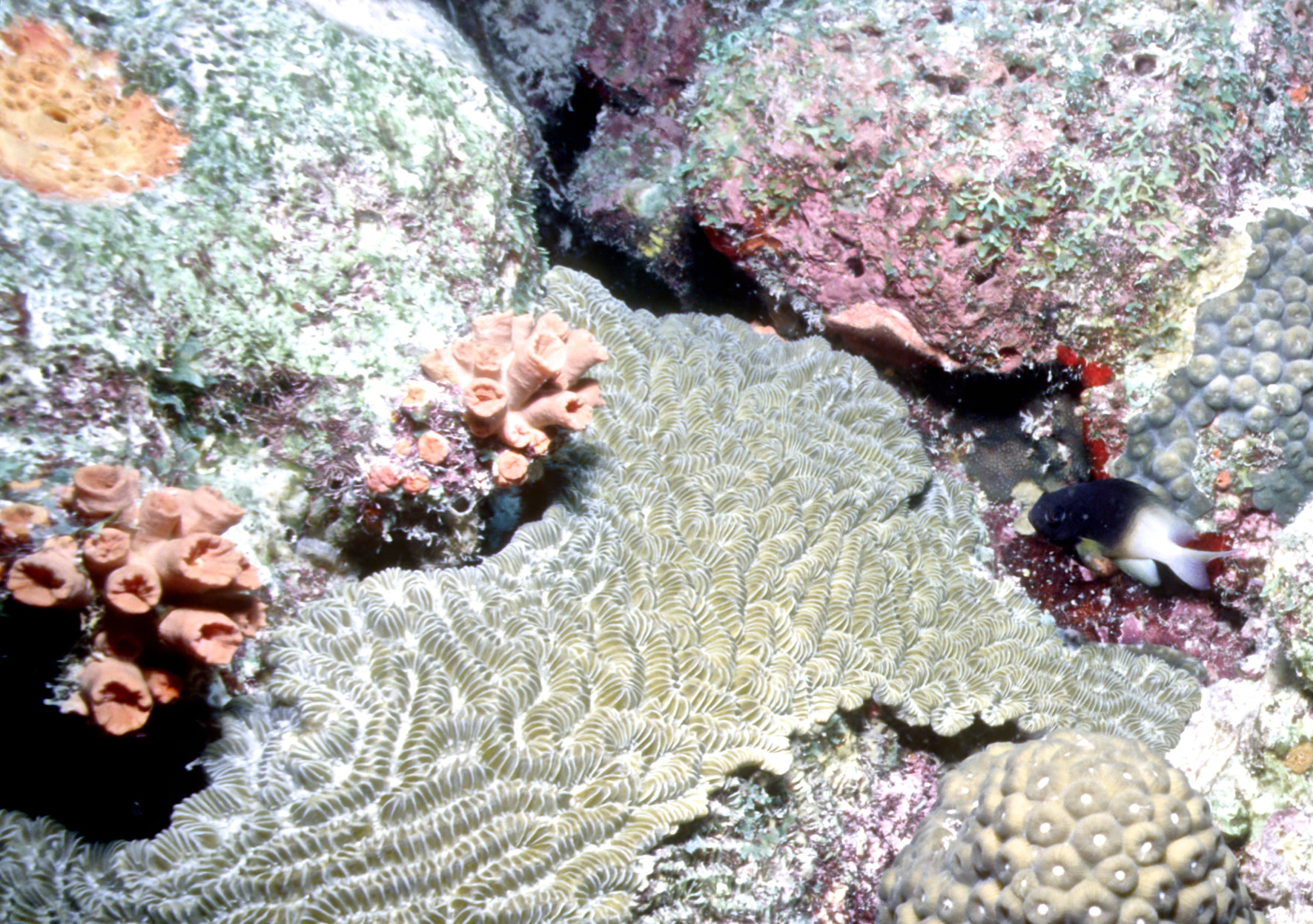 Dive # 144, Nikonos V camera, Nikonos 15mm lens, Ikelite Ai strobe, Fujichrome Sensia 100 slide film, closeup settings, dive buddies Trey & Lori. We love diving in Klein Bonaire. Here we saw bryazoa, black coral, and a trumpet fish. 57ft, 53min. /hughClick a photo to view or click first photo to see a slide show.