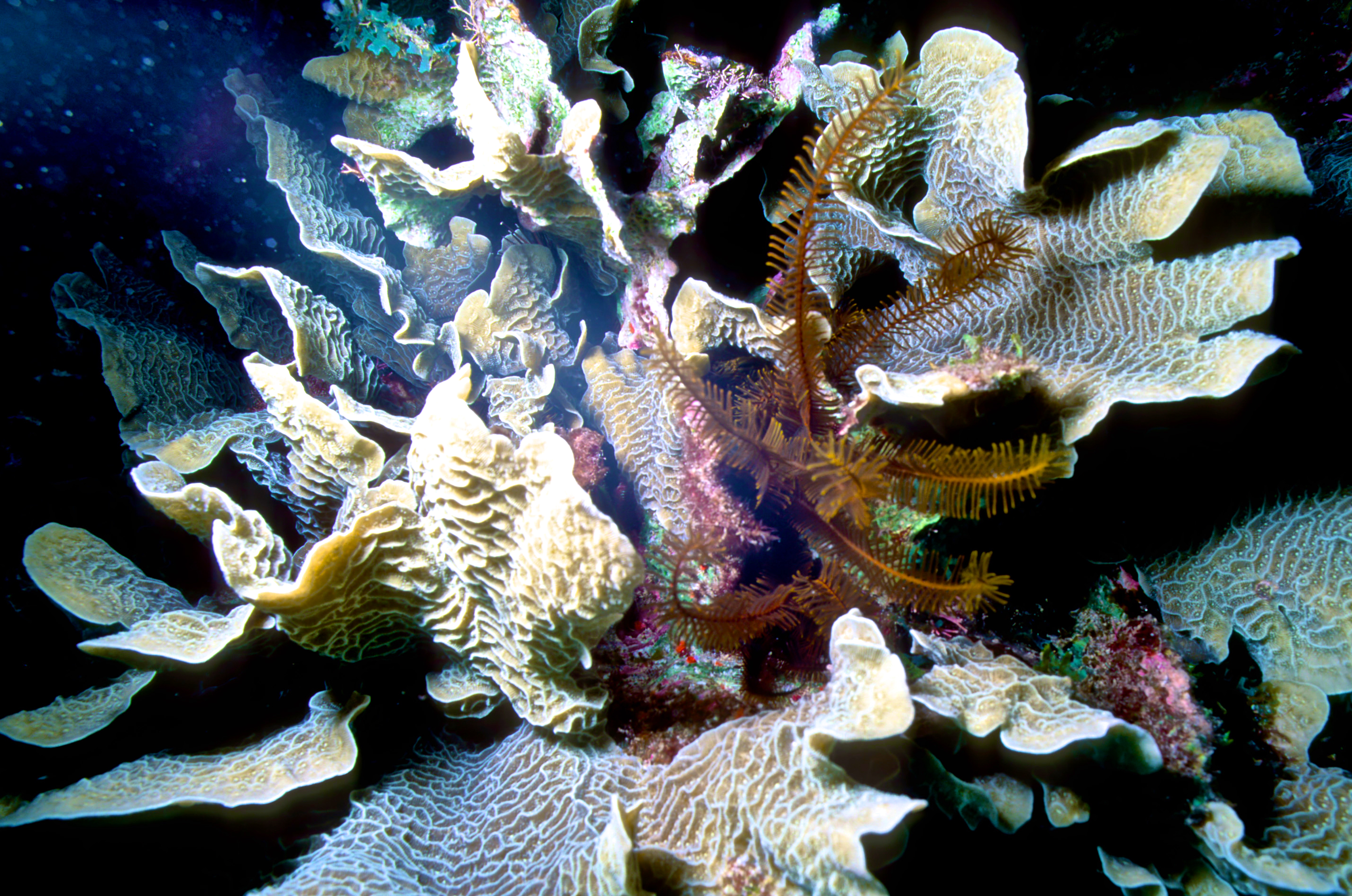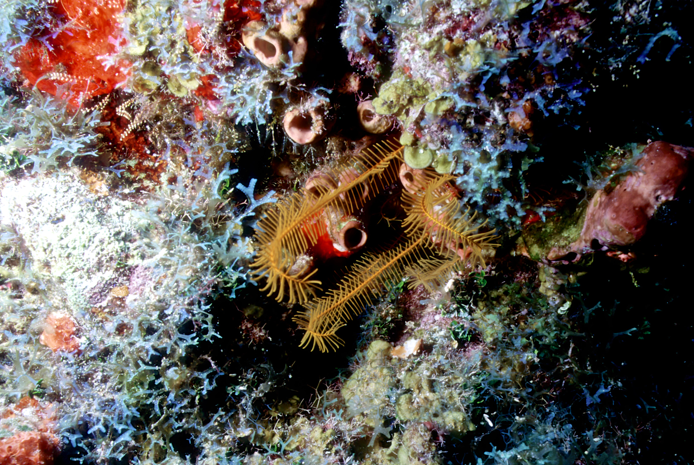 Crinoids are not common. I love to find beautiful colorful feather stars and take photos of them. /hughClick a photo to view or click first photo to see a slide show.