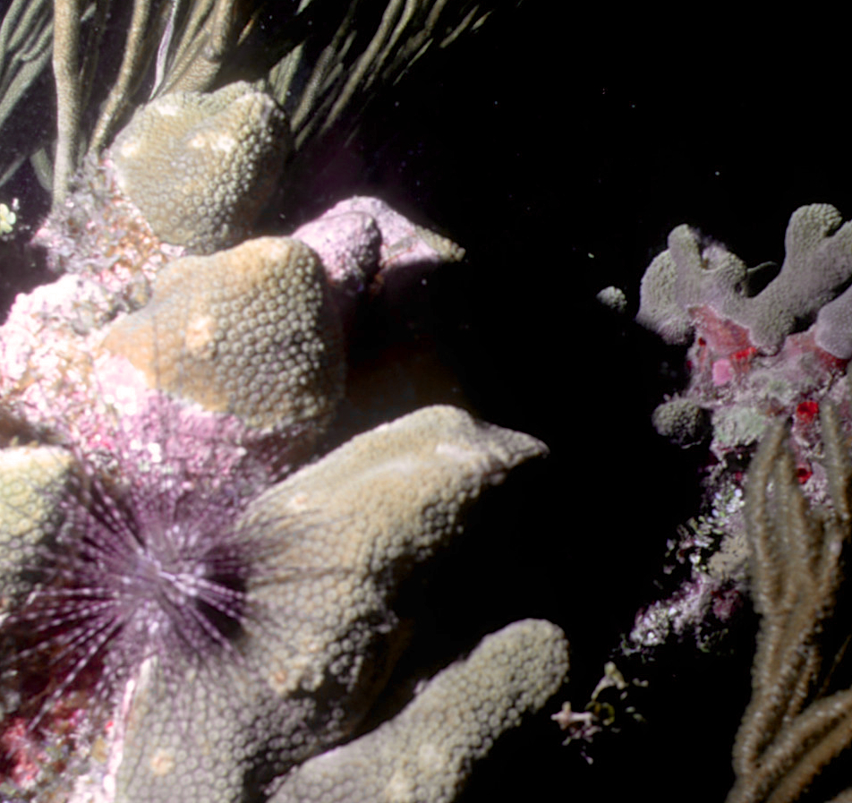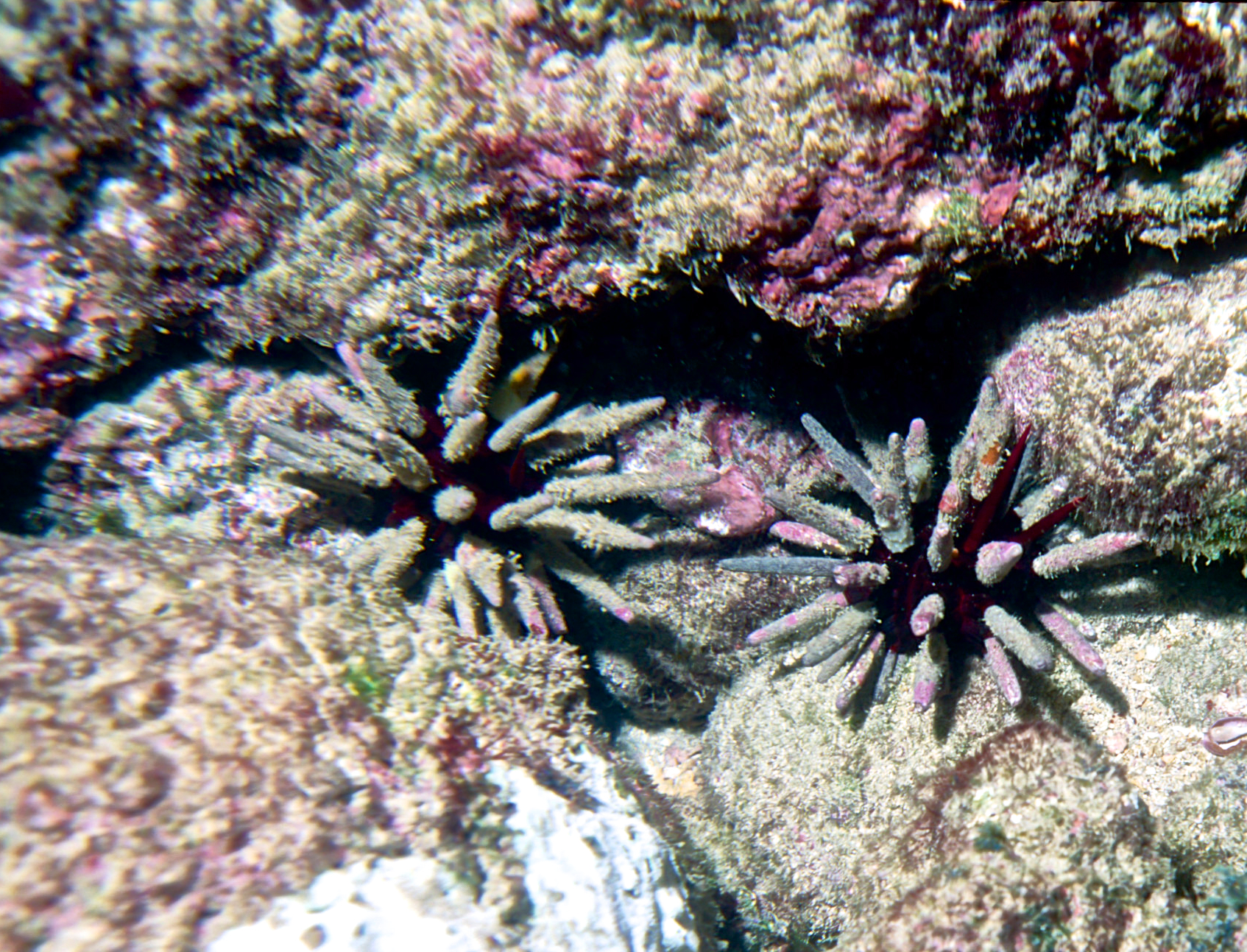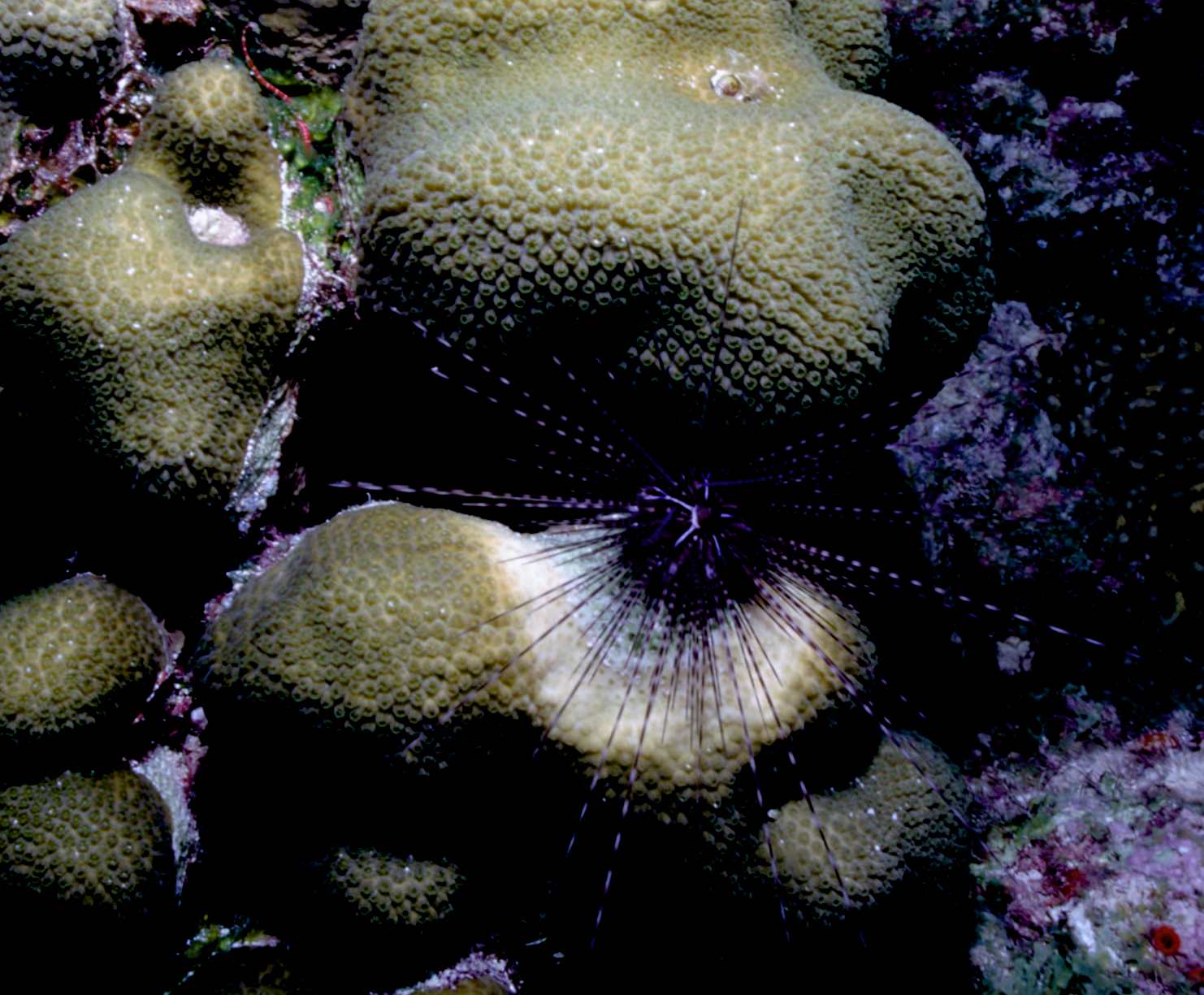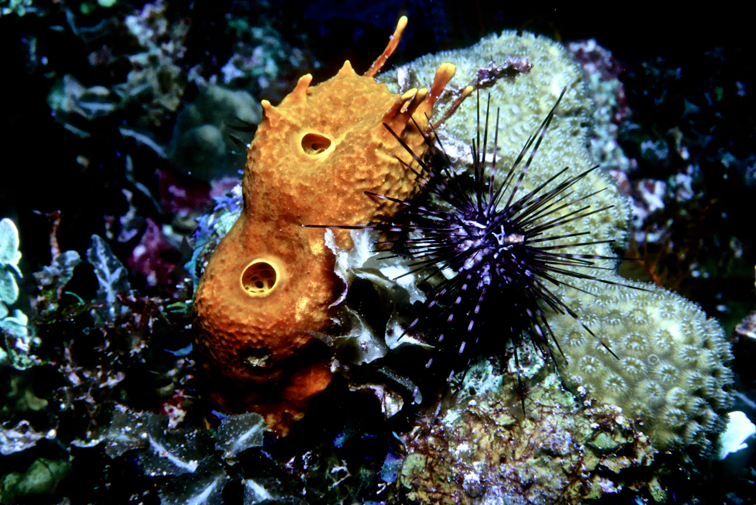 Urchins come in many sizes and colors. We see them best at night. These photos were taken on my dives in the 1990's. /hughClick a photo to view or click first photo to see a slide show.