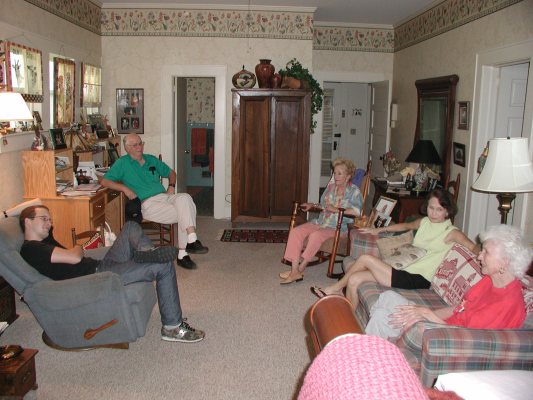 Here we are in front of their house. From left Bill, Bonnie, Trey, Susan, and Hugh.