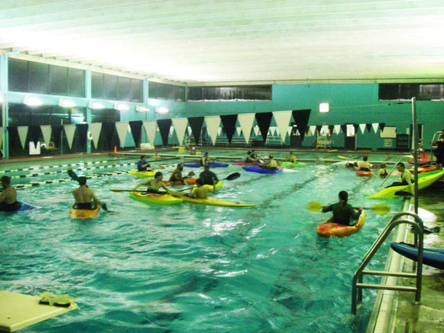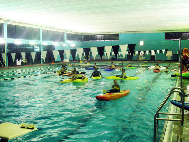 The local paddling community gets together on Wednesday nights at 6:30pm in the winter to practice our rolling and bracing. I usually don't get to go as Dan & I paddle on Wednesday afternoons. /hugh