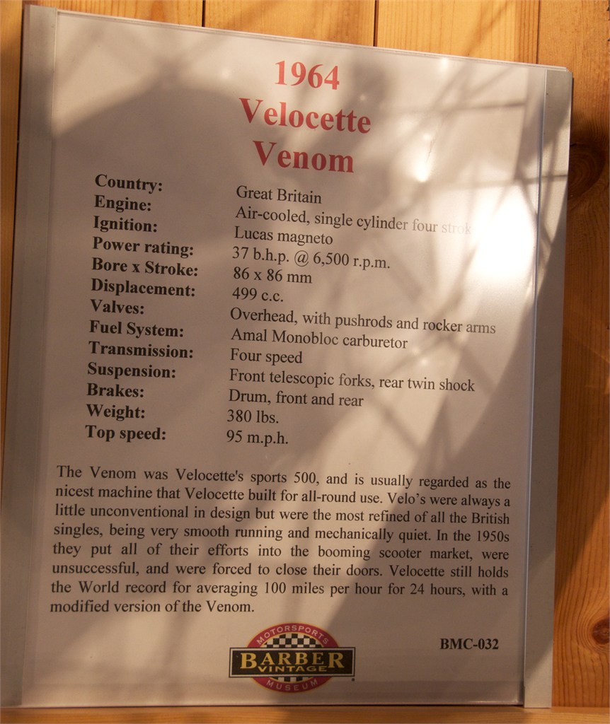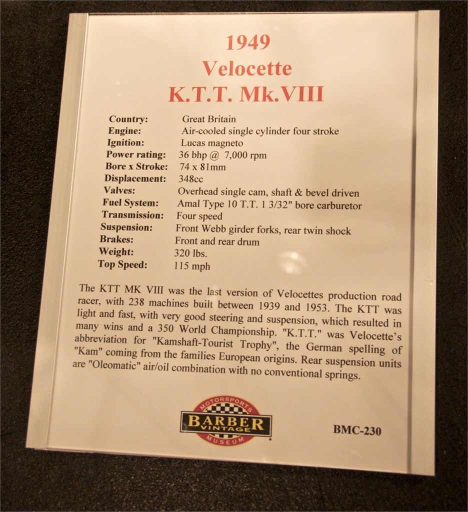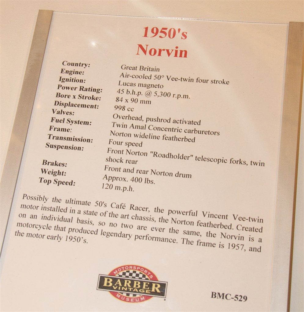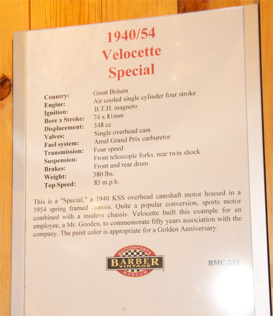 I love to visit the Barber Vintage Motorsports Museum in Leeds Alabama. You can't imagine how well the collection is displayed. I was especially interested in vintage British bikes but toured much of the museum. /hugh