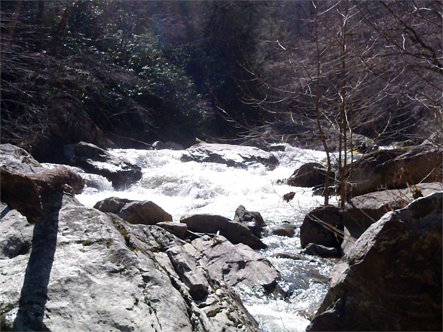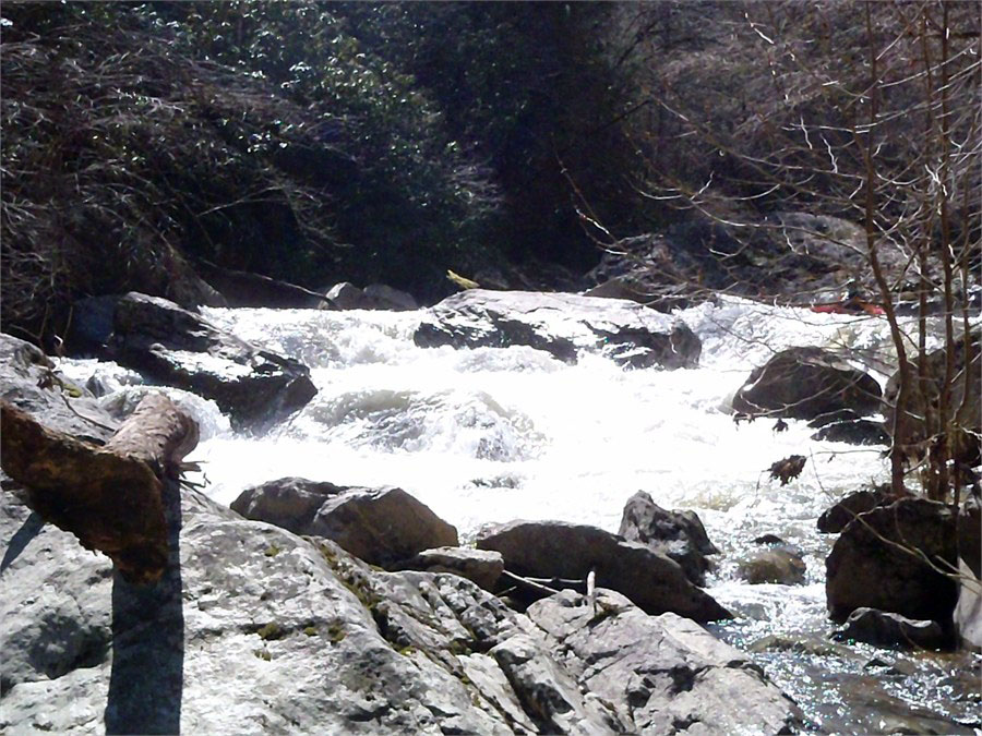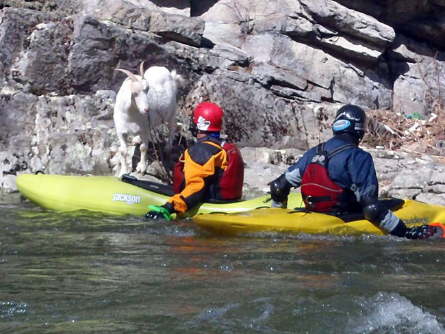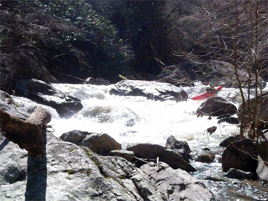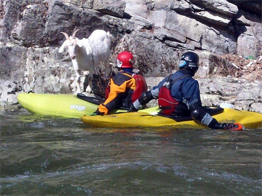 I had been wanting to paddle the Doe Gorge near Elizebethton, TN for a number of years. We went there after a big rain and ran 2 laps. It has perhaps the easiest shuttle of any creek we run. I joined Mike Simpson, Tim Gill, and Dan Thomas for a great afternoon. We scouted Body snatcher and I volunteered to try out the line we choose. We found a white goat along the river that Dan had seen years earlier. The level was 750to 800cfs and was a great level. Can't wait to come back guys!
