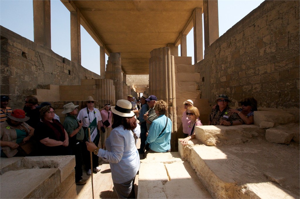 The Prinsendam docked in Alexandria and we boarded a bus for our 2-day Egyptian adventure. It was an interesting two hour drive to Giza and we saw plenty of desert. Our first stop was to the very first pyramid known as the Step Pyramid. Excavation continues here. After lunch we visit the 3 big pyramids located where the desert meets Giza. Here also is located the Sphinx. The entire city currently has no garbage pickup and the situation is severe. At night a light show here was beautiful & informative. We stayed at the Four Seasons Hotel on the Giza side of the Nile. /susan