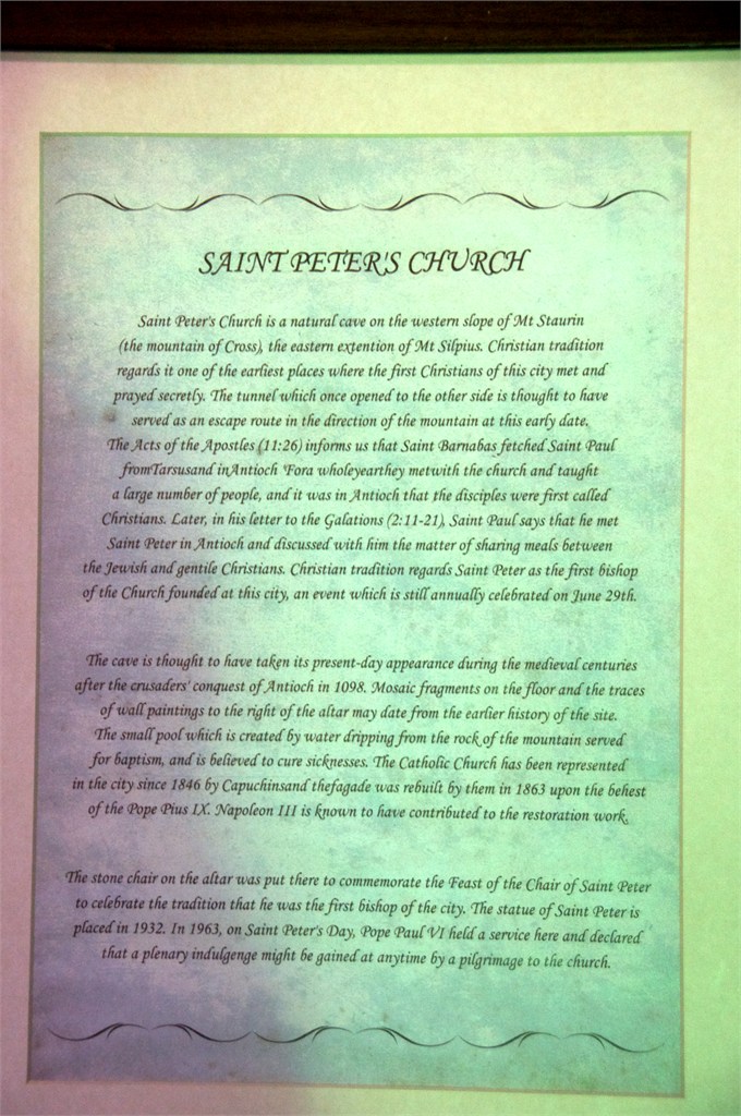 I can’t tell you how much we love & appreciate Turkey and we were glad to be back. We arranged a taxi with another couple to travel & see the sights within 25 miles. Hugh enjoyed seeing the large modern secure military installations in this town just a few miles from the Syrian border. The Cave Church of St. Peter was awe inspiring and the mosaic museum in Antioch was amazing. This is actually a wonderful part of the world. /susan