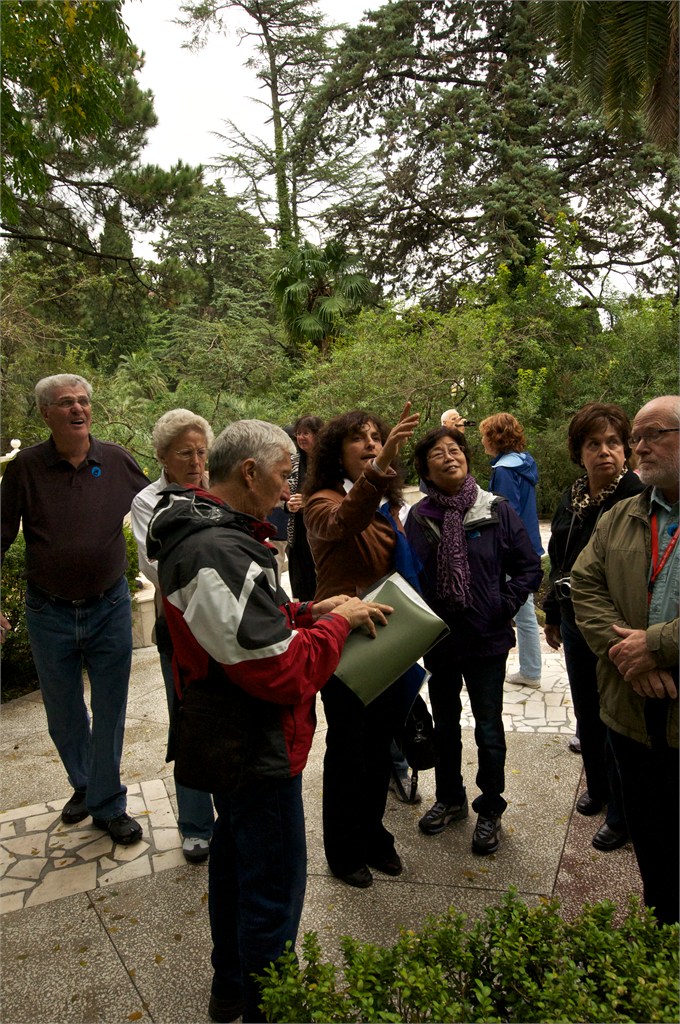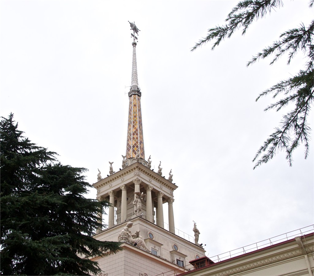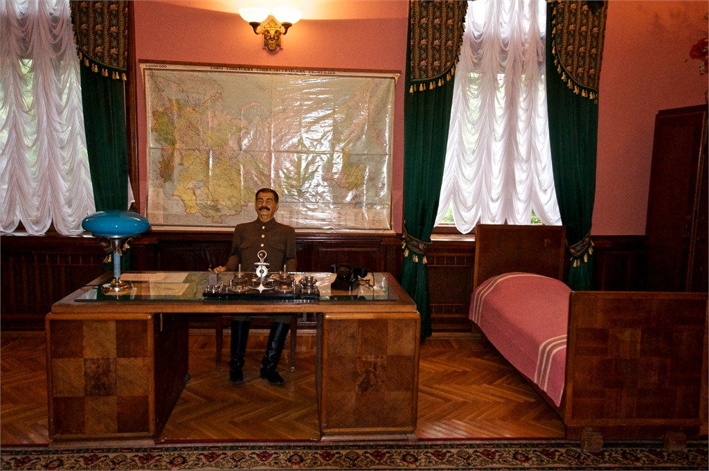 We were excited to get back to Russia again. Sochi will be the venue of the next Winter Olympic Games. In the period of the Tsars, the Russian gentry had their grand Black Sea palaces on the Crimea but Stalin had his main one here in Sochi. We first visited Stalin’s dacha with it’s odd green color and within it his study with it’s pink color. The desk & most of the furniture were gifts of Chairman Mao. Then we went to an observation point to look over the palm lined beaches on the sea coast and the snow covered mountains inland. This is clearly a big tourist destination and construction is evident everywhere. /susan