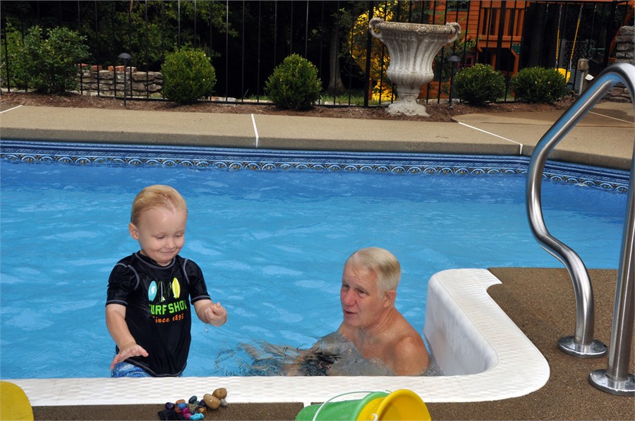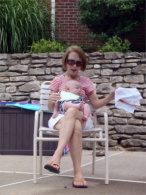 We had a very enjoyable 4 days in Louisville. We arrived Thursday pm in time to pick up Hudson & take him to the airport to pick up Lori. We spent a lot of time in the pool as a family. On Saturday Gran, Adam, & Steve arrived from Alabama. Sunday we were all joined by more family & friends for Cooper's christening. What a wonderful weekend.