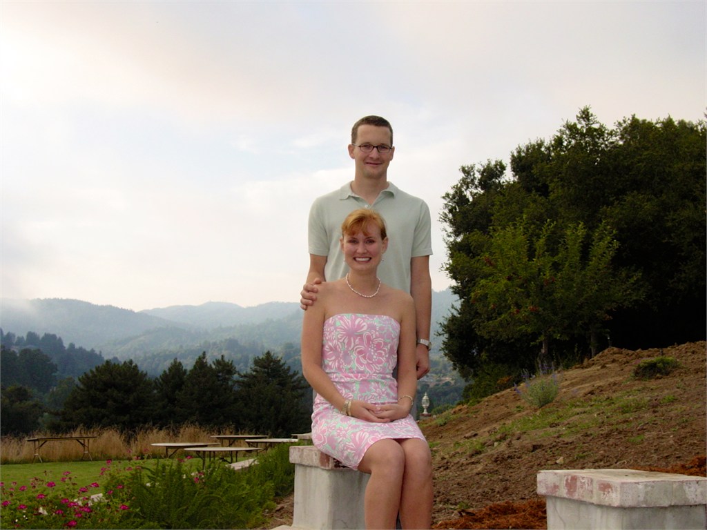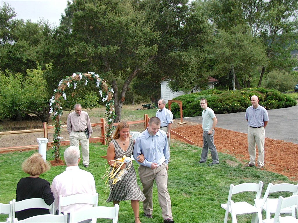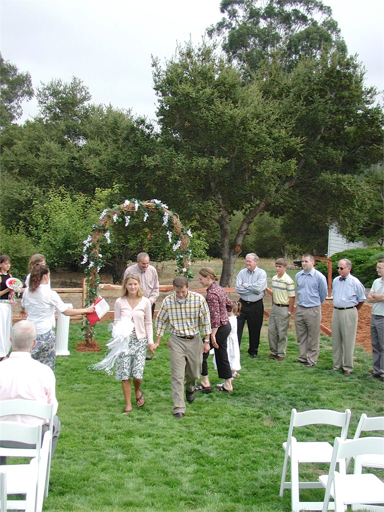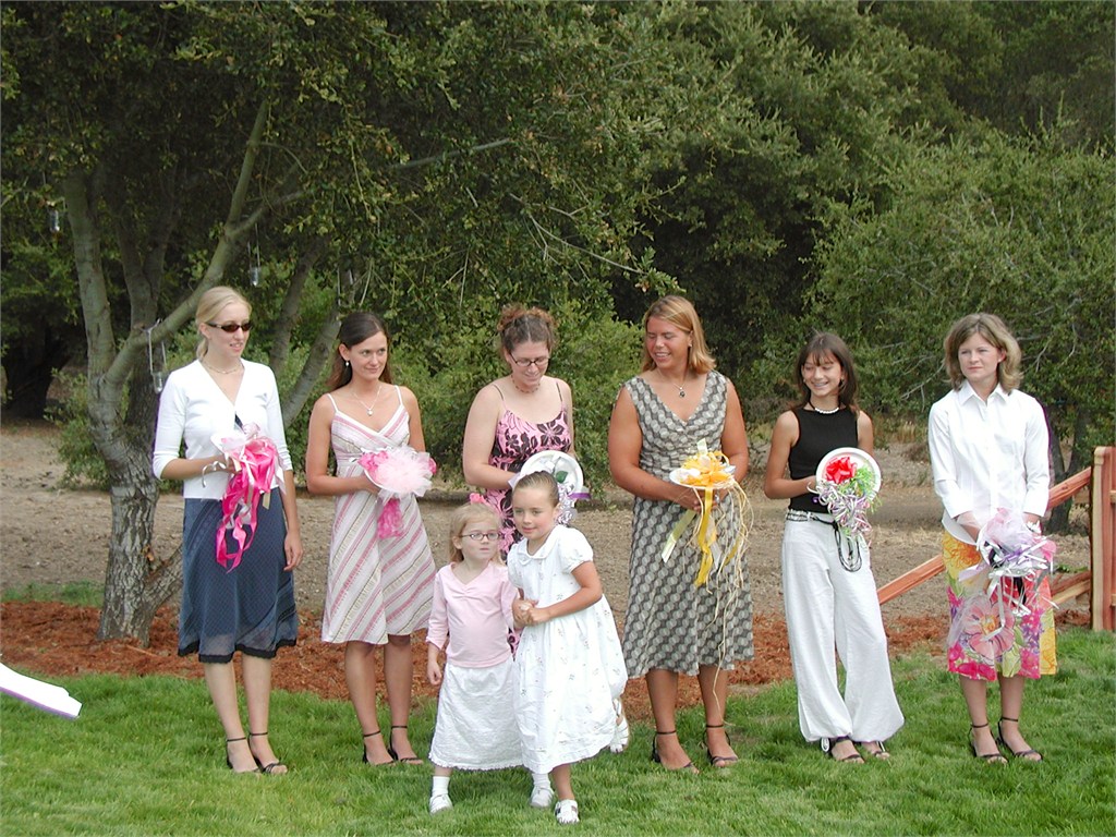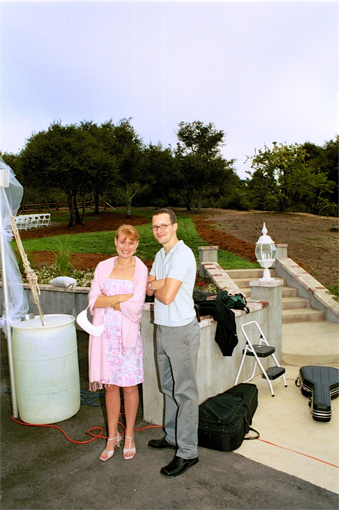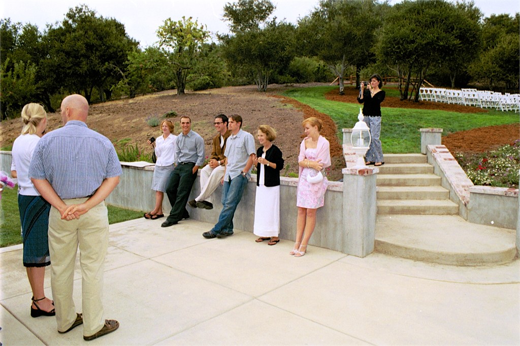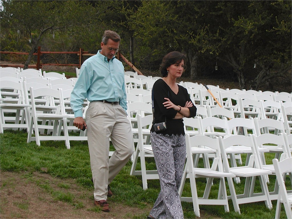 Engagement, showers, picking a dress, site preparation, family breakfast, and greeting family. Getting ready for the big day of August 2, 2003.