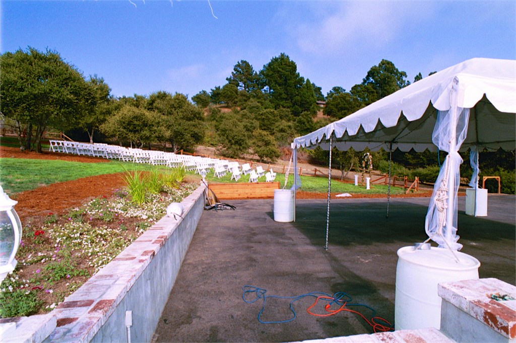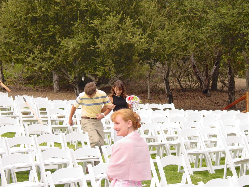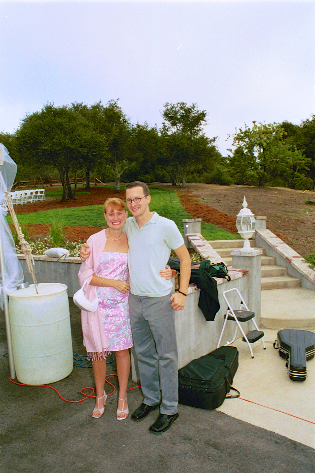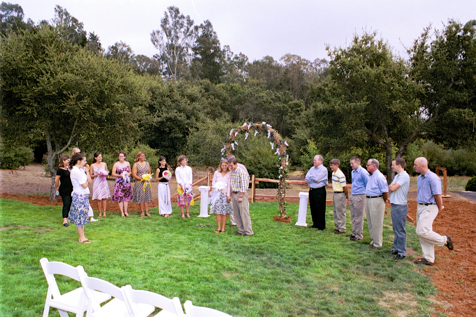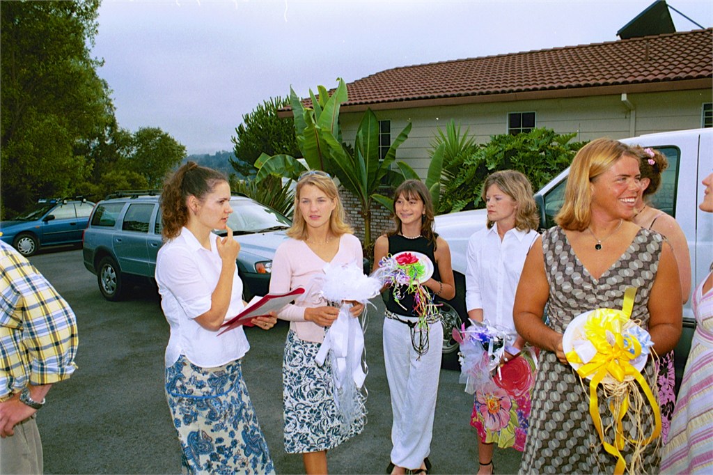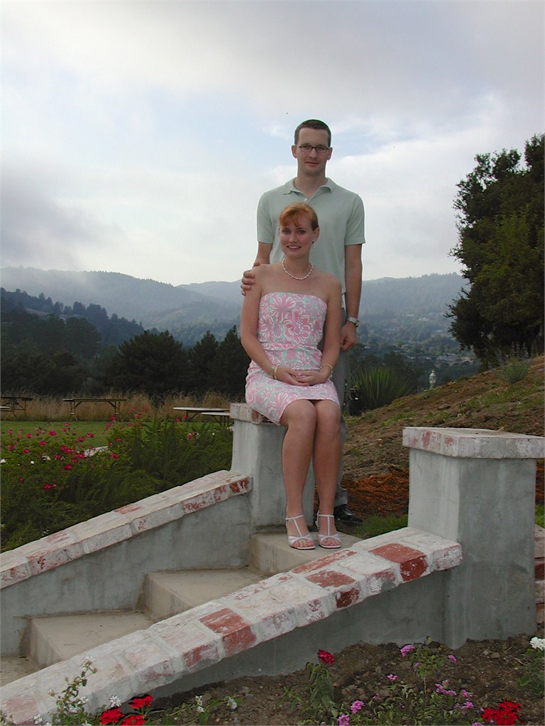 Engagement, showers, picking a dress, site preparation, family breakfast, and greeting family. Getting ready for the big day of August 2, 2003.