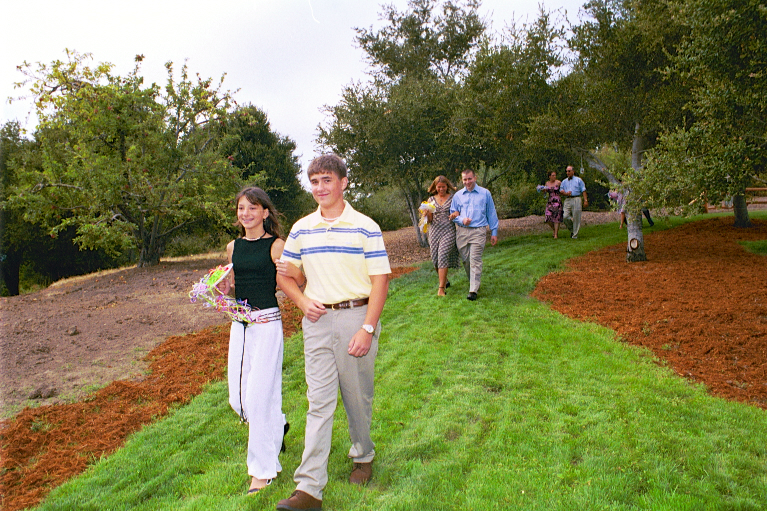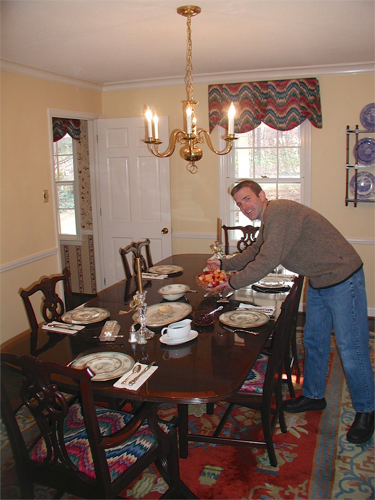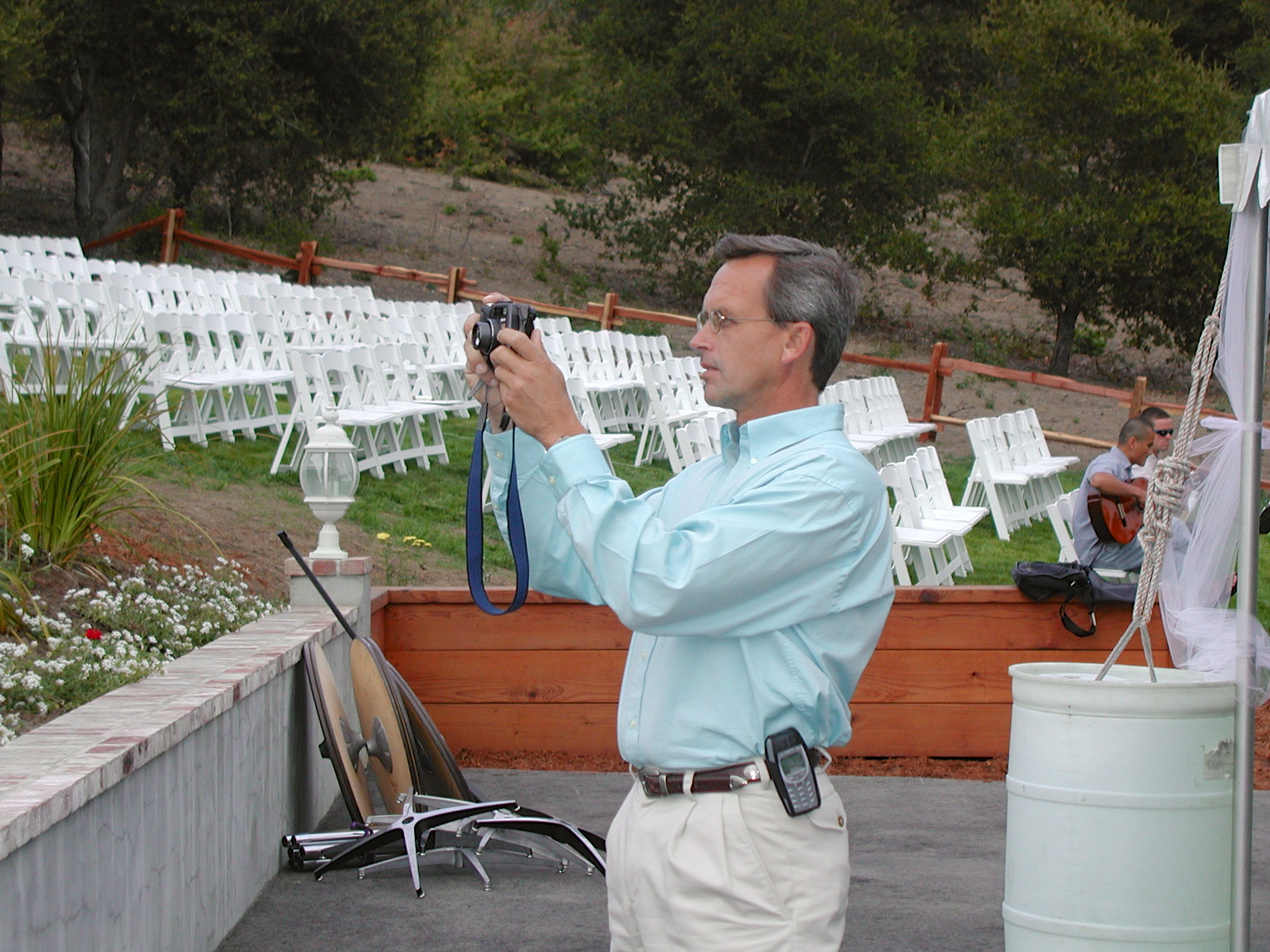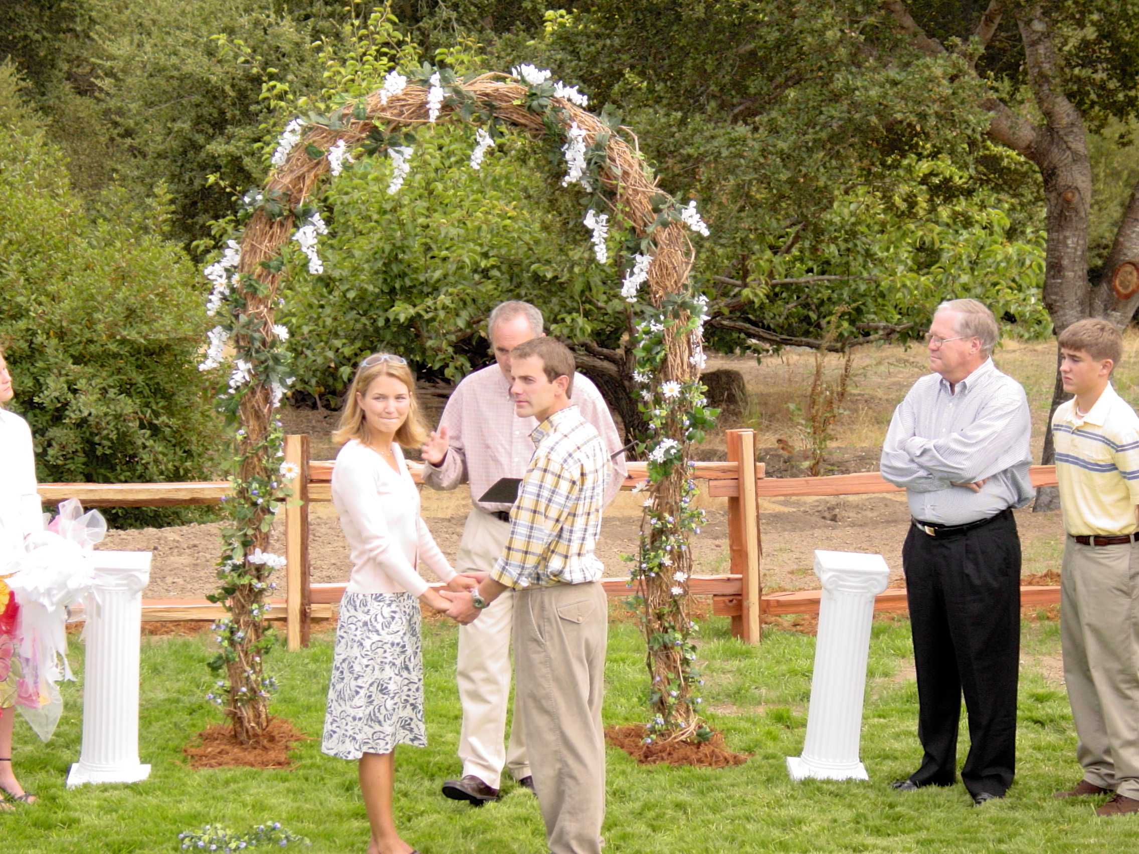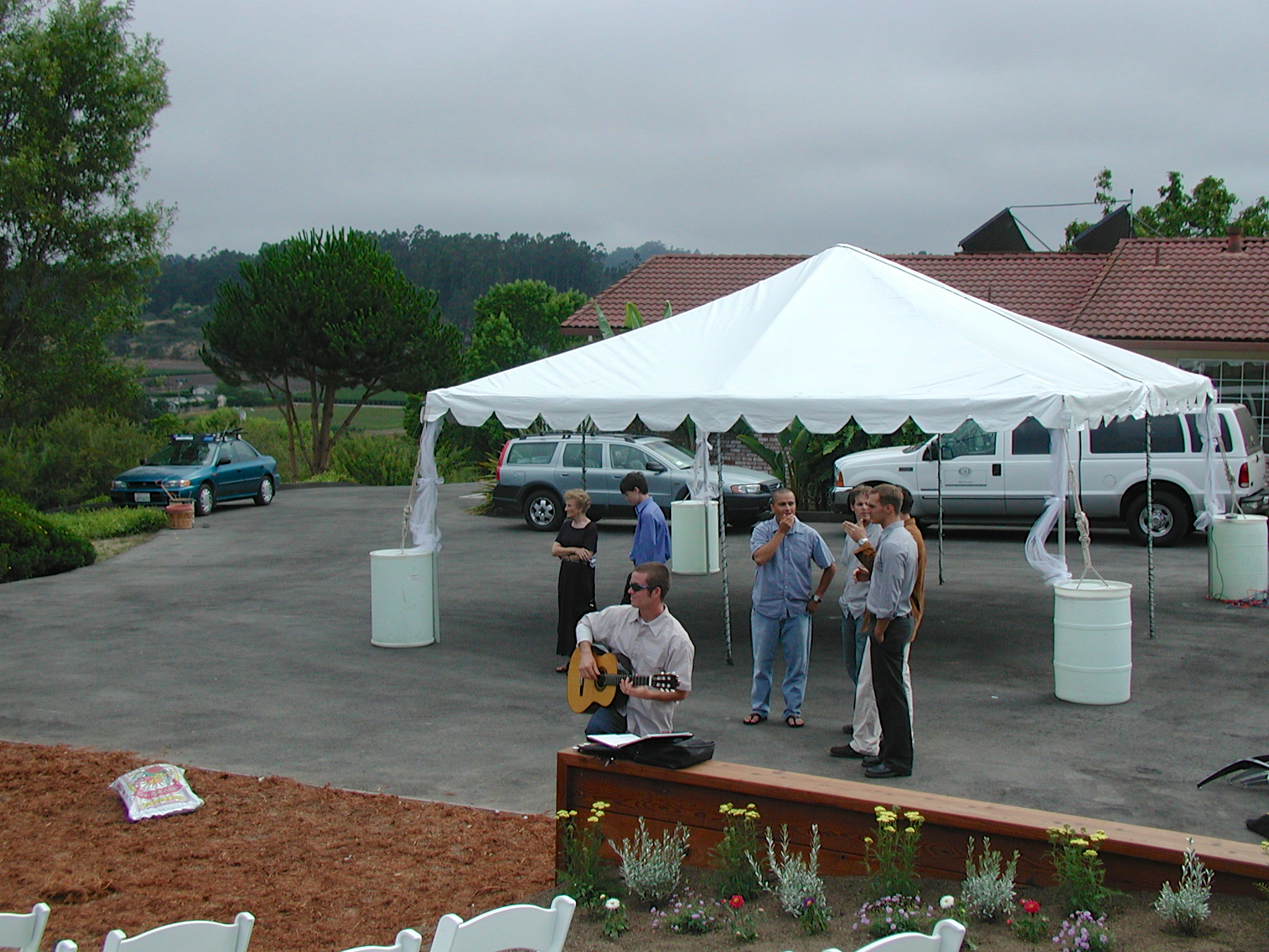 Engagement, showers, picking a dress, site preparation, family breakfast, and greeting family. Getting ready for the big day of August 2, 2003.