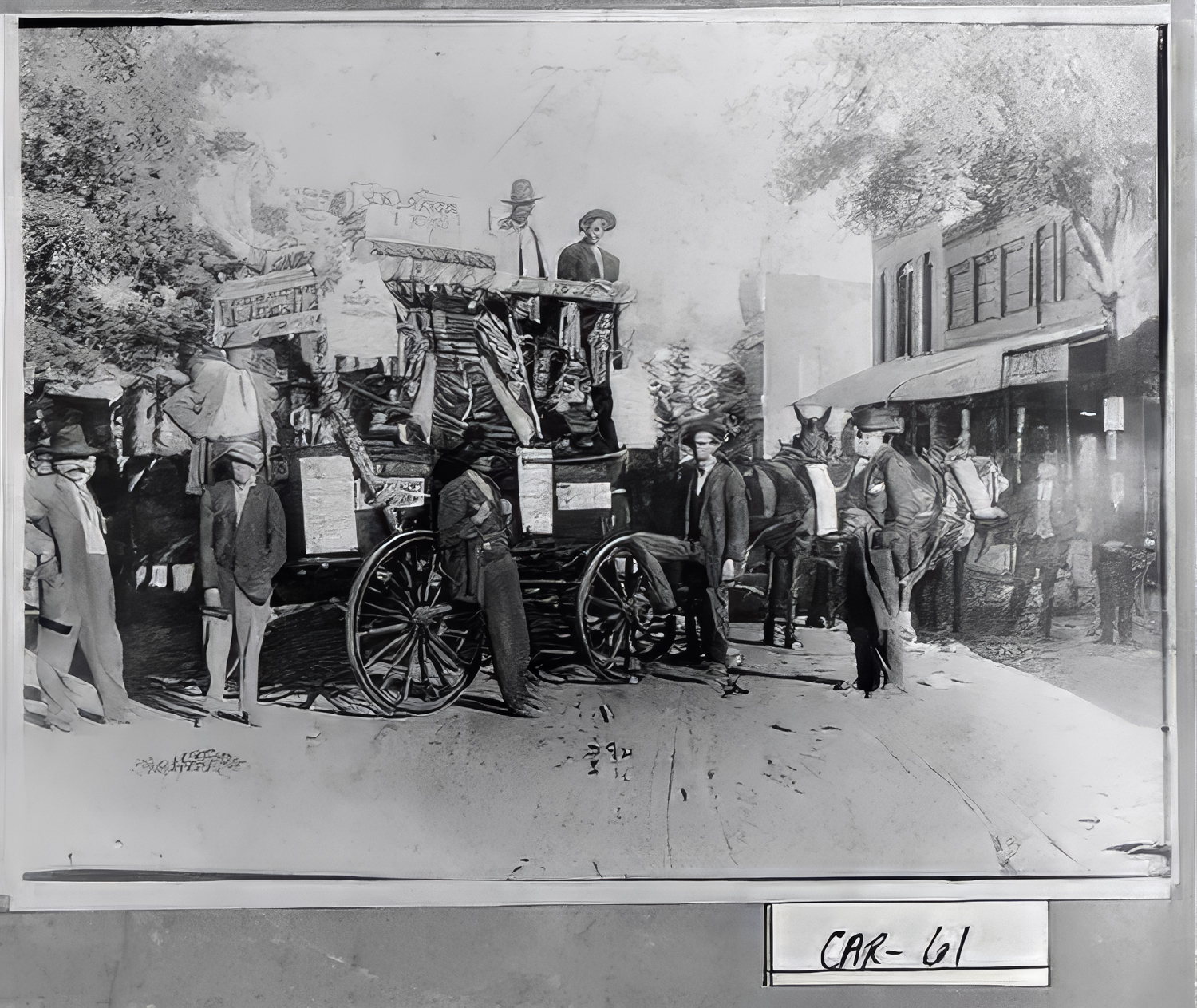 Hugh found these pictures somehow. I have them or have had them but these are much better than the ones I have. CAR-39 is the Barrow Mercantile store. The two story Barrow Hardware building would later be built on the right hand side where a man is standing and a hole cut int the wall of this building into the new hardware store. CAR 61 is the Barrowl Hardware wagon going to Carrollton to the fair. Grandpa (John William Barrow) is the man with his right leg proped up on the wagon hub. Note that it is a 4 mule team hitched to the wagon. The young fellow up in the drivers seat is my dad, Hugh Witt Barrow and the colored man beside him is Grandpa right hand man, Mose. CAR 60 is a front of the store showing the muddy street and the electric light pole. Some ladies standing out front, probably store clerks? Grandpa built 7 of the brick buildings along the main part of Bowdon. /hugh sr