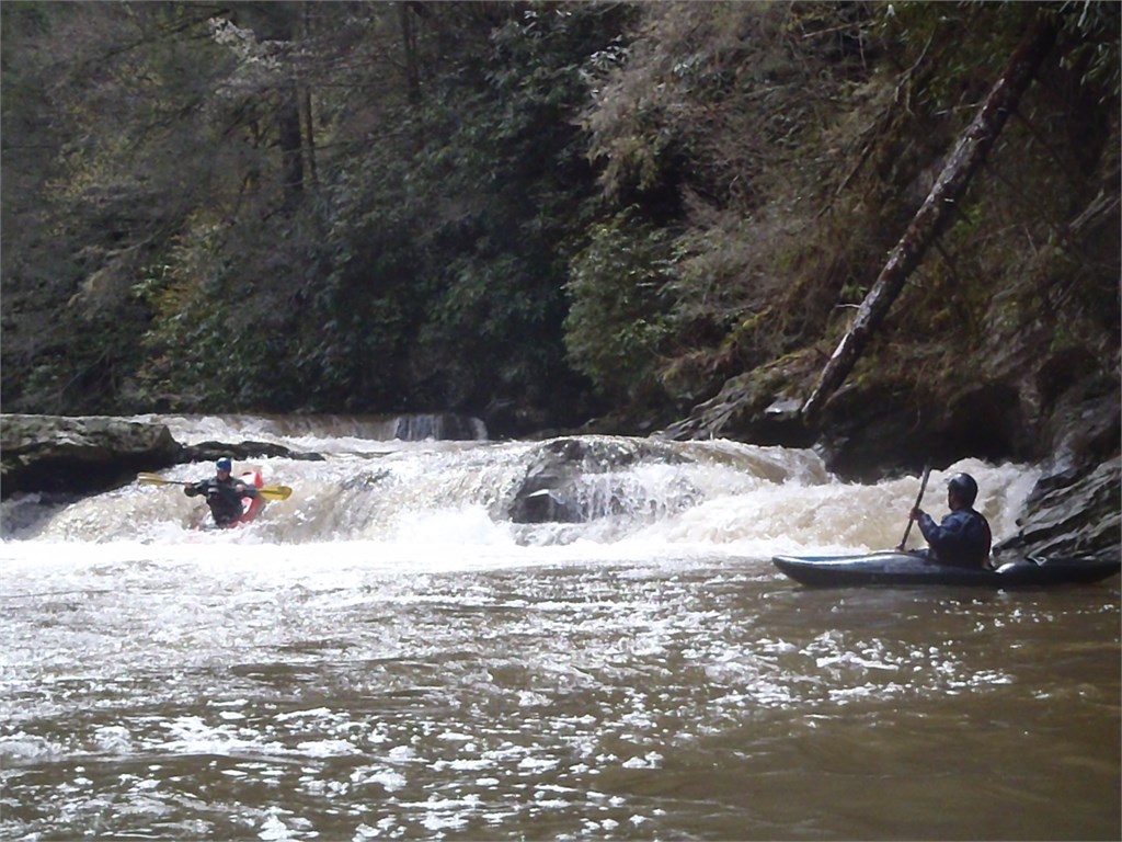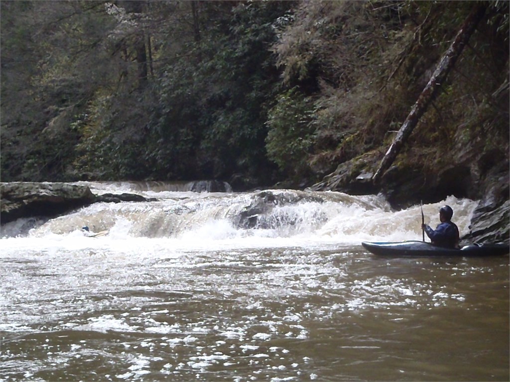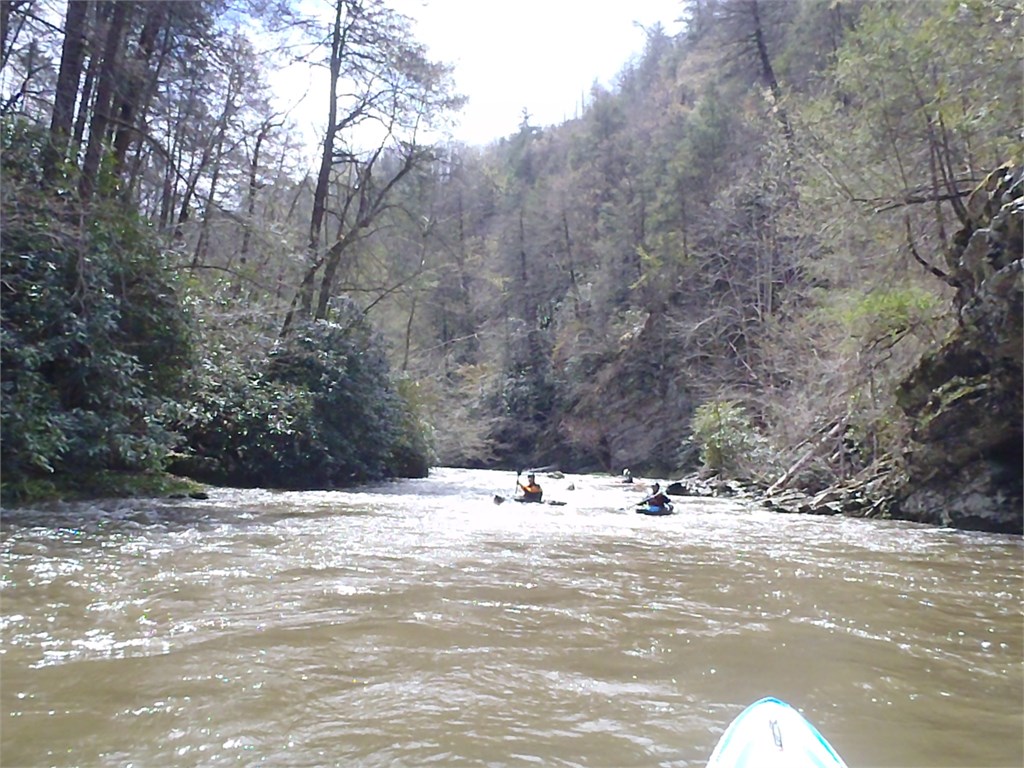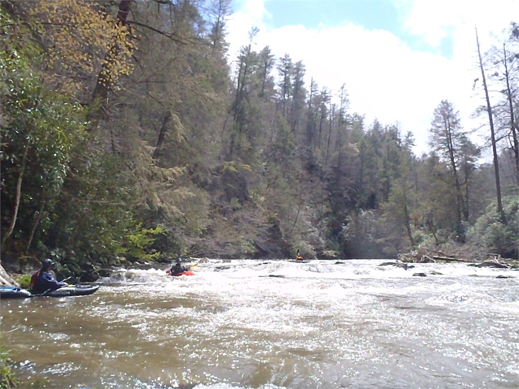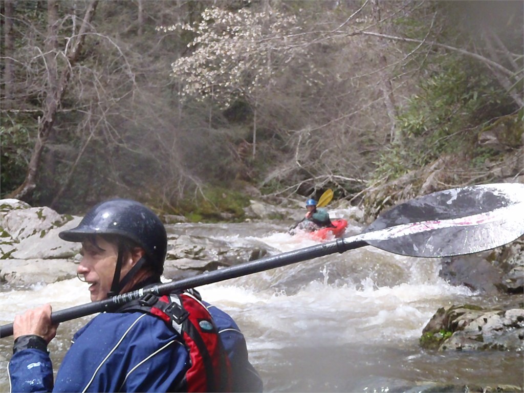 During the Keelhauler Canoe Club annual Southern Rivers Week I had the opportunity to meet up with Mike Duvall, Joe Marksz, and Jeff Cramer in Hot Springs, North Carolina following a night of heavy rain. The French Broad River was running 10,300 cfs and Big Laurel was +1.2ft so we knew we had a great run for the day but we were able to get in a run on the seldom-run Spring Creek at +1ft. No one had ever seen this river so we took turns running probe. What a great little creek. How beautiful. Great run guys!!! /hugh