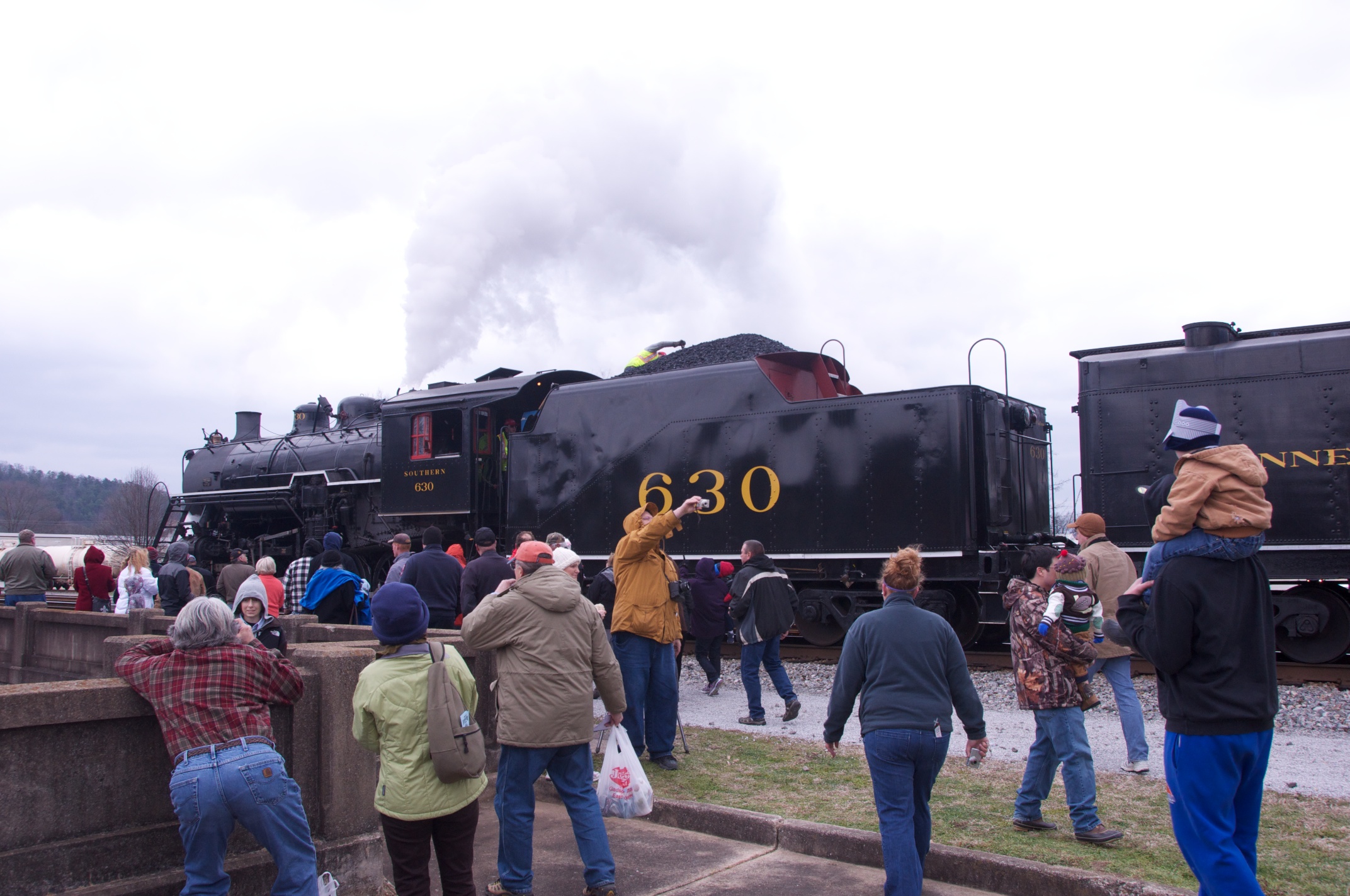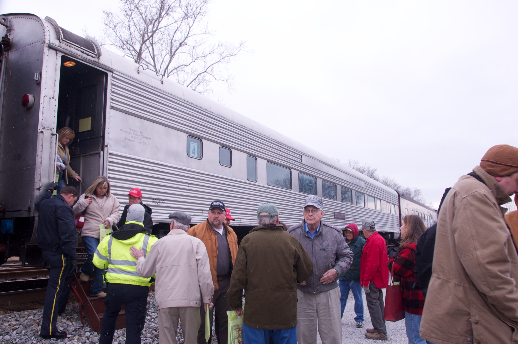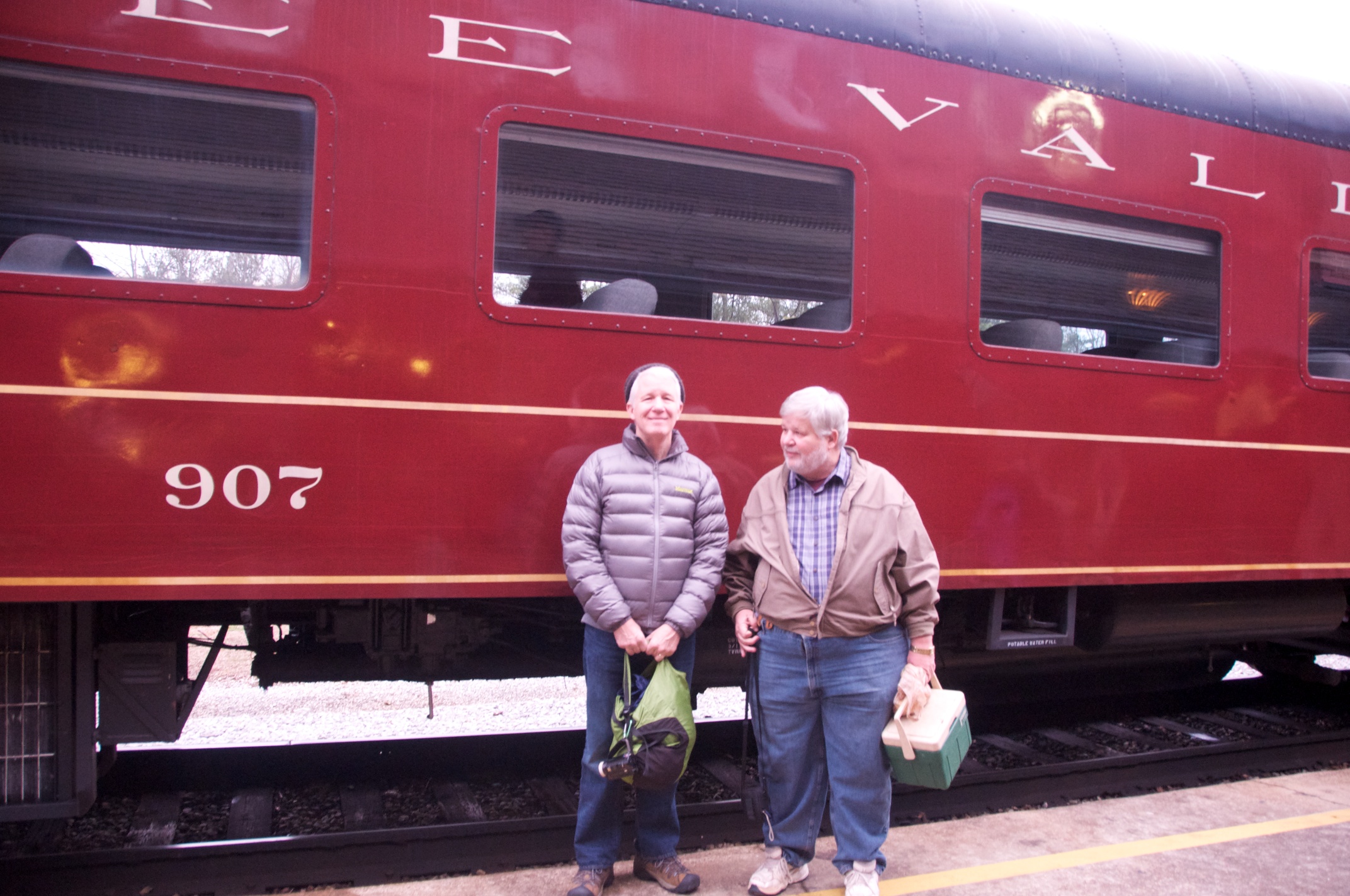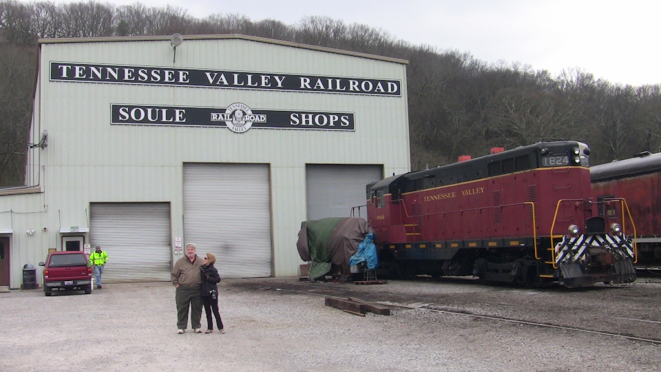 We joined Lew in Chattanooga for a ride behind a steam engine on an excursion to Attalla and back on the tracks of the Norfolk Southern Railroad hosted by the Tennessee Valley Rail Road. We were met by Bill in Attalla and had a great visit on this cold snowy day. /hugh