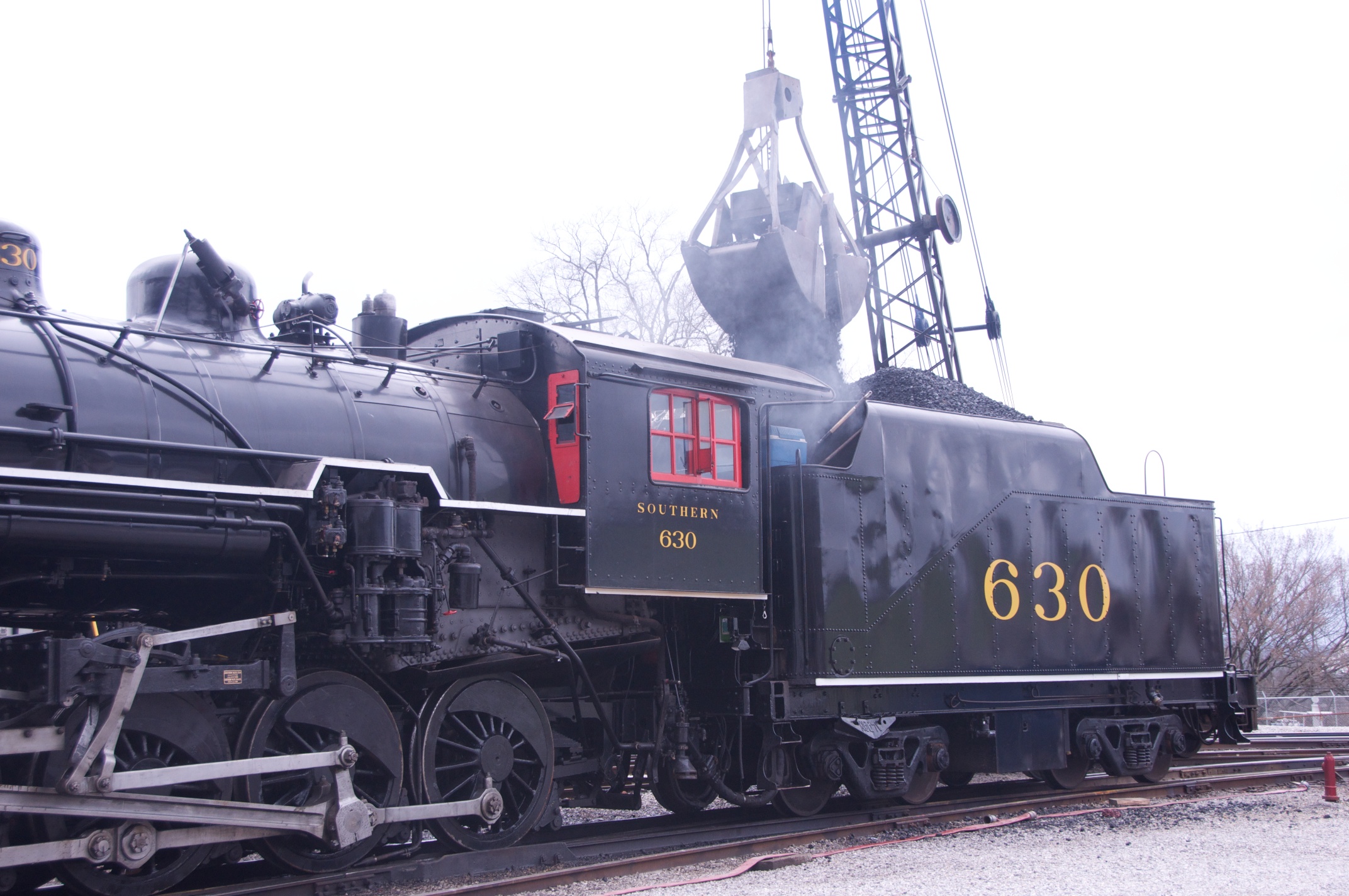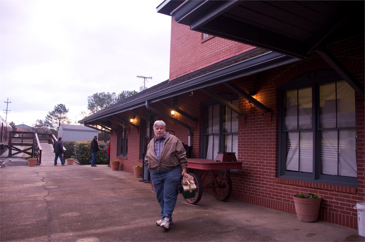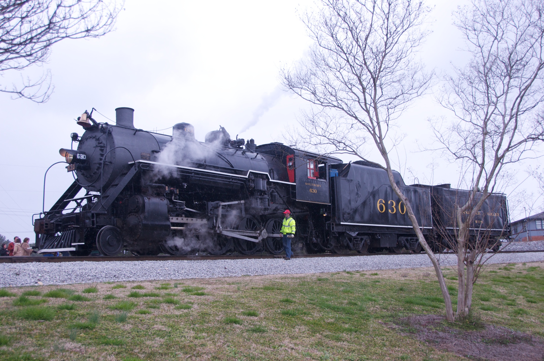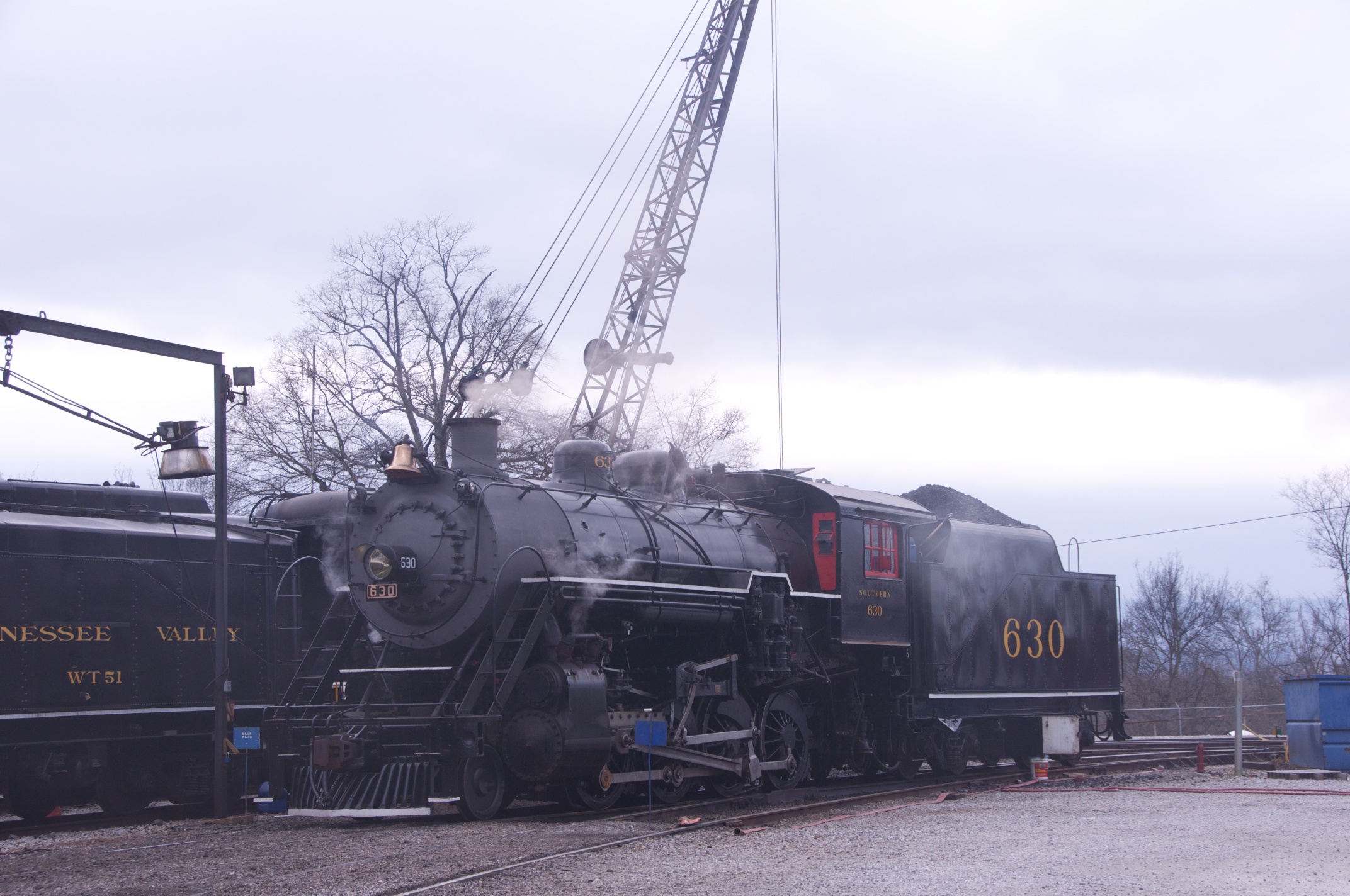 We joined Lew in Chattanooga for a ride behind a steam engine on an excursion to Attalla and back on the tracks of the Norfolk Southern Railroad hosted by the Tennessee Valley Rail Road. We were met by Bill in Attalla and had a great visit on this cold snowy day. /hugh