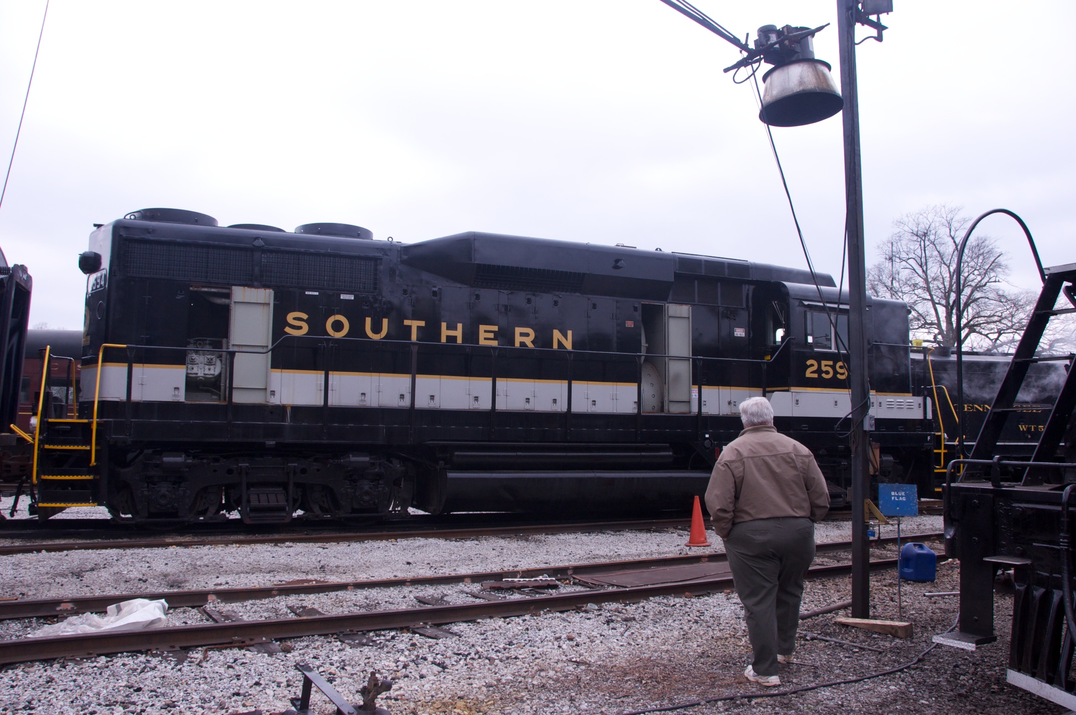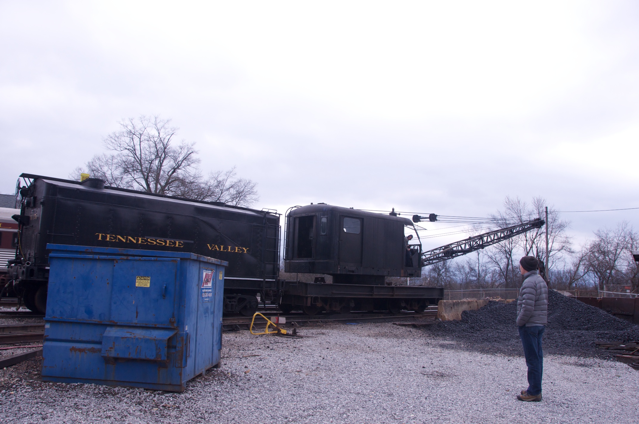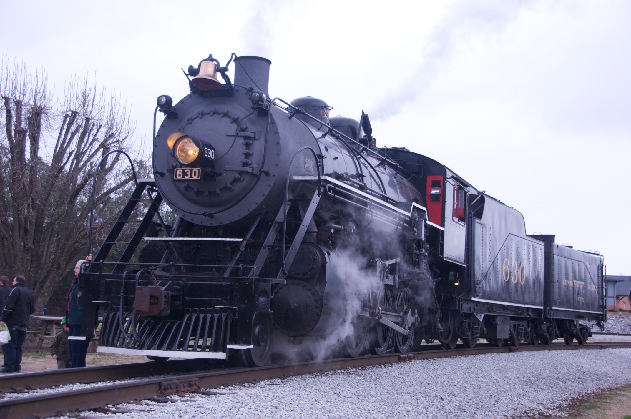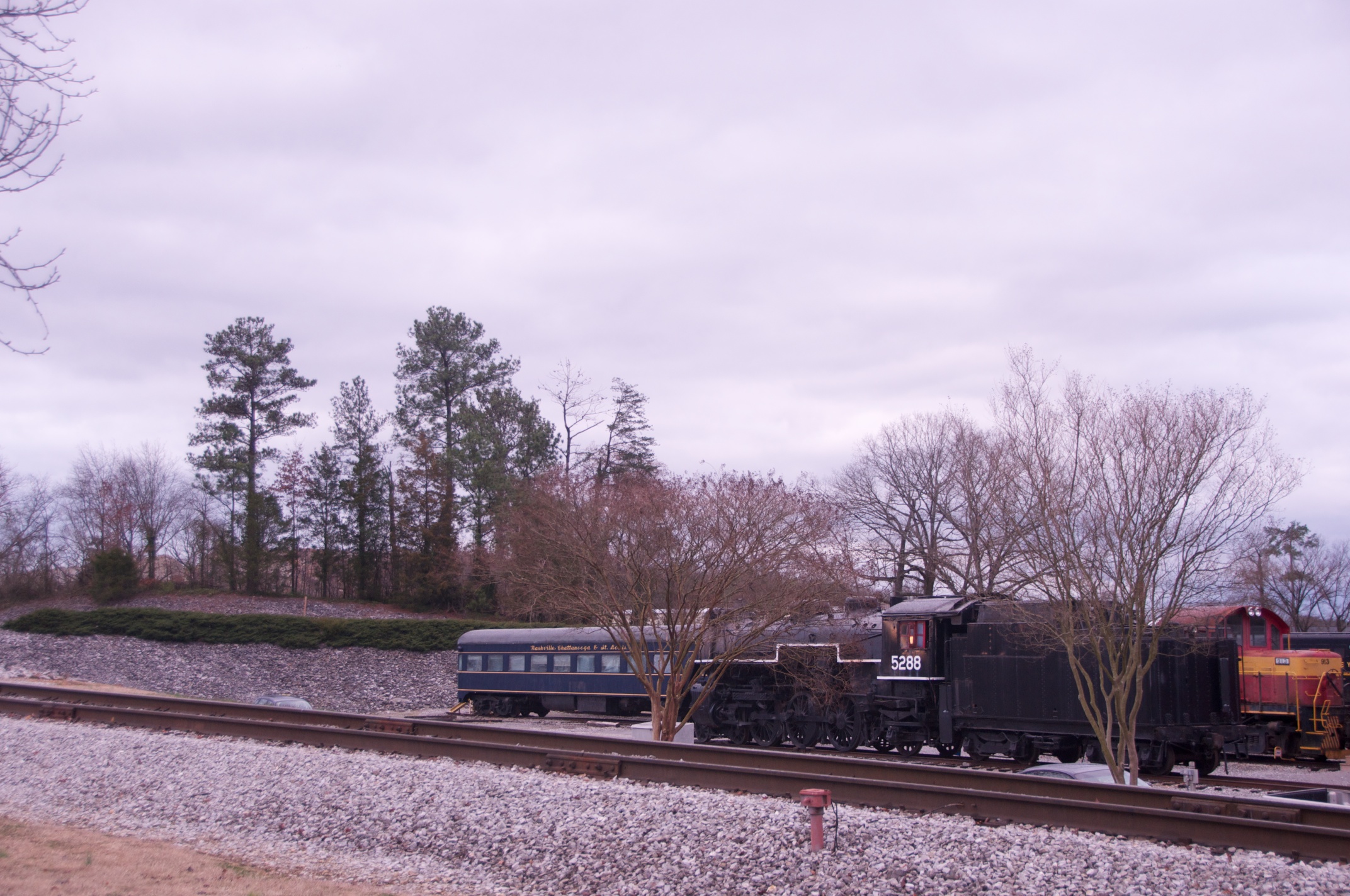 We joined Lew in Chattanooga for a ride behind a steam engine on an excursion to Attalla and back on the tracks of the Norfolk Southern Railroad hosted by the Tennessee Valley Rail Road. We were met by Bill in Attalla and had a great visit on this cold snowy day. /hugh