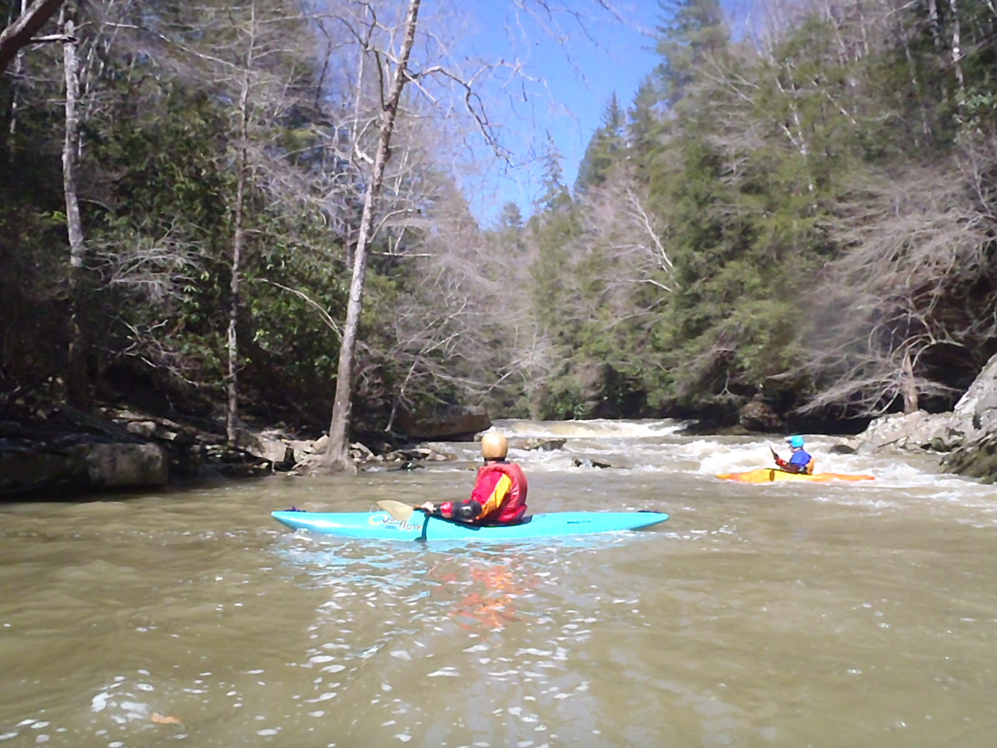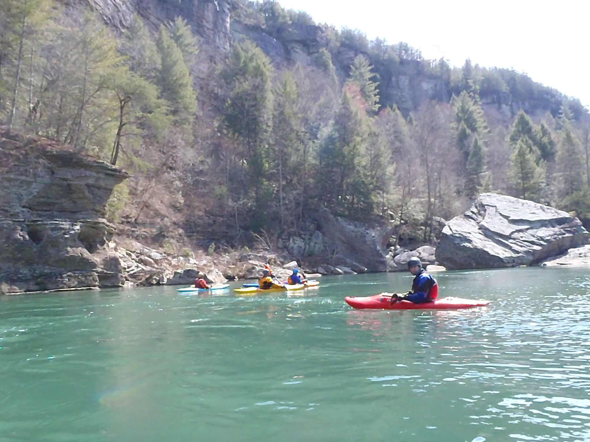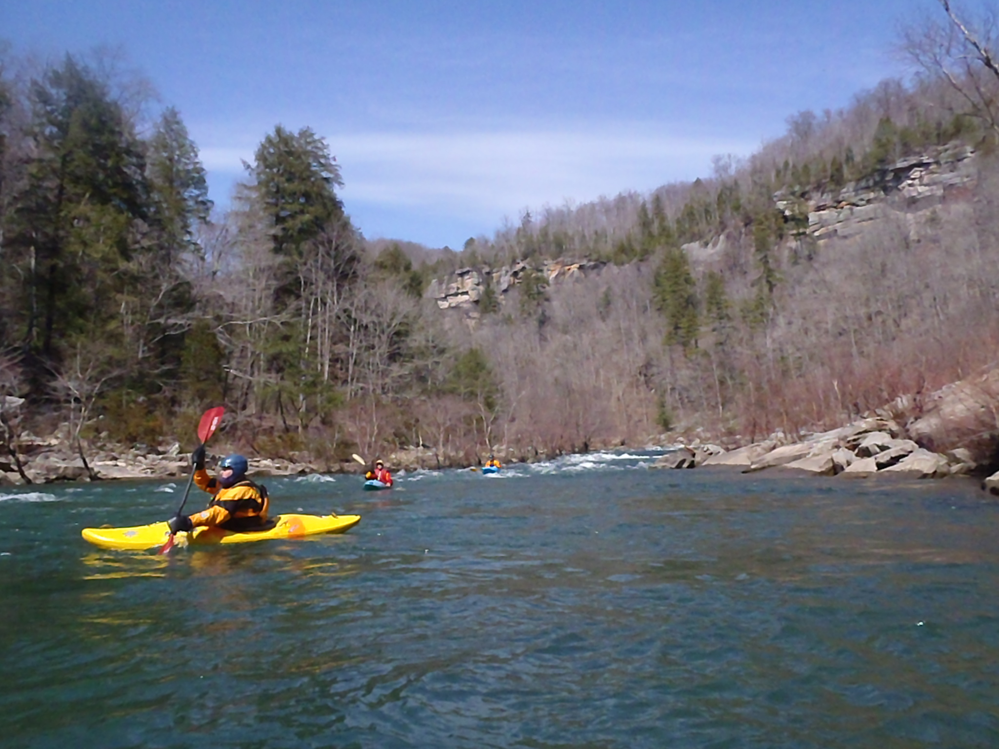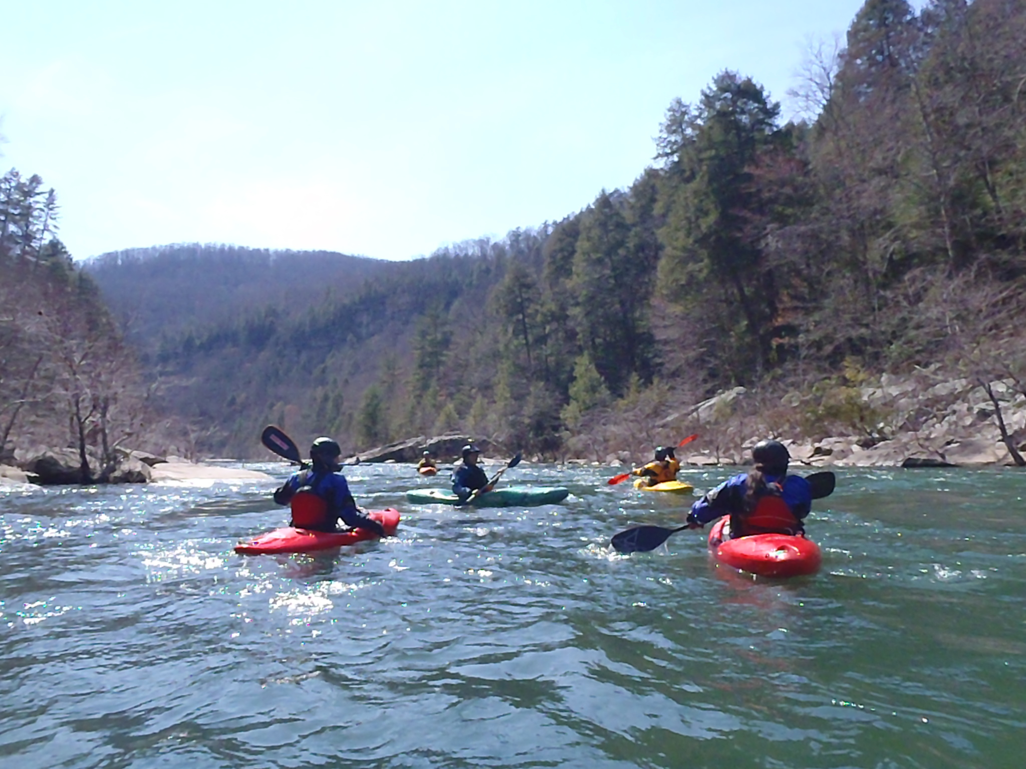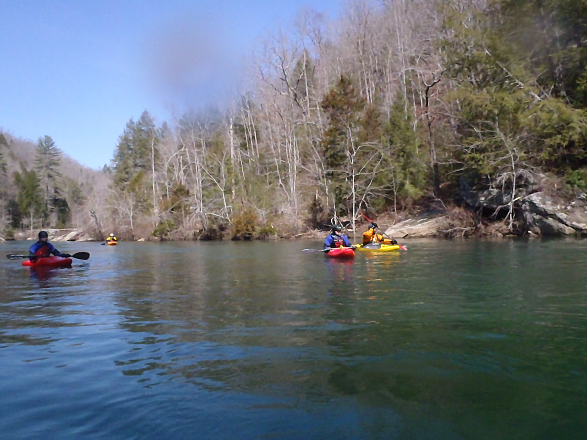 I was excited that Dr David Herron invited me on his spring holiday Cumberland Plateau paddling trip. Most of the paddlers were members of the Keelhauler Canoe Club. Bud arranged for us to stay at a hostel near Wartburg, TN. Our group was Dave, Bud, Paul, Woody, Doug, Tom, and John. We slept there March 15 and were joined by Trey and Jordan on Saturday for a trip down Clear Creek at 440cfs. On Sunday we paddled the Big South Fork at 1500cfs, Monday the Tellico at 320cfs, Tuesday Crooked Fork Creek at 5ft and Wednesday the Crooked Fork Creek at a lower level. Bud made a video of our run on Clear Creek. I was sorry my arms gave out and I couldn't paddle more days. What a wonderful trip. Can't wait till next year!!! /hugh